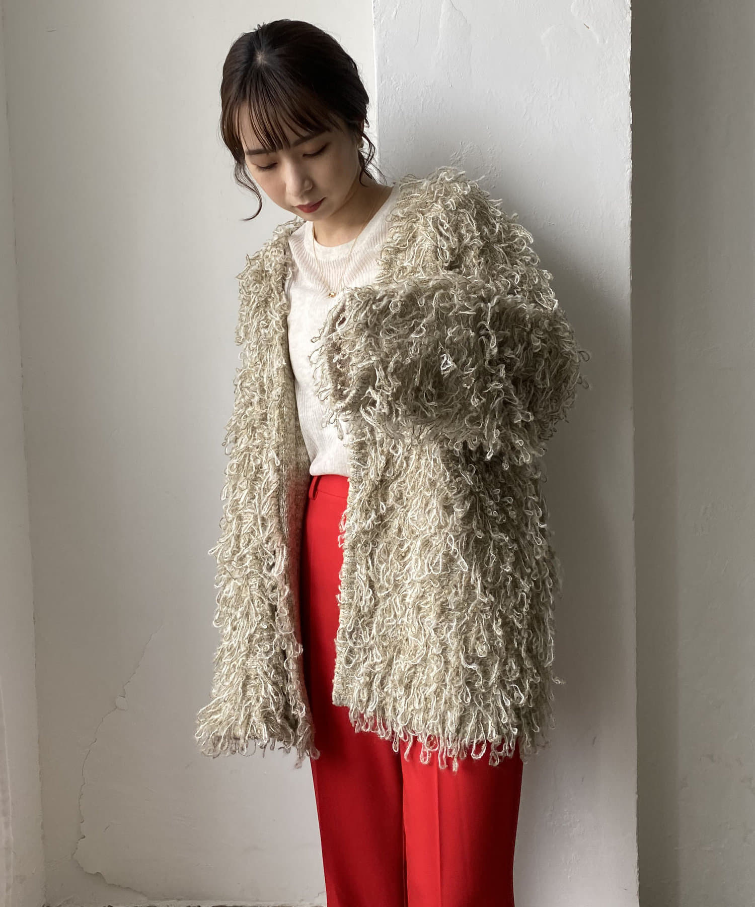 【CAPRICIEUX LE'MAGE】ループフリンジミドルカーディガン