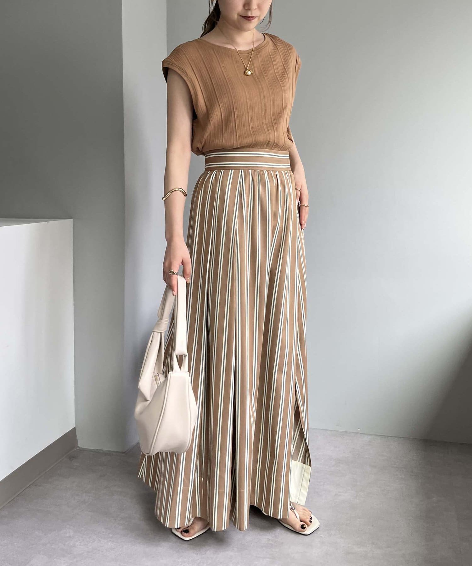 ・サイドの深めのスリットが抜け感をプラス