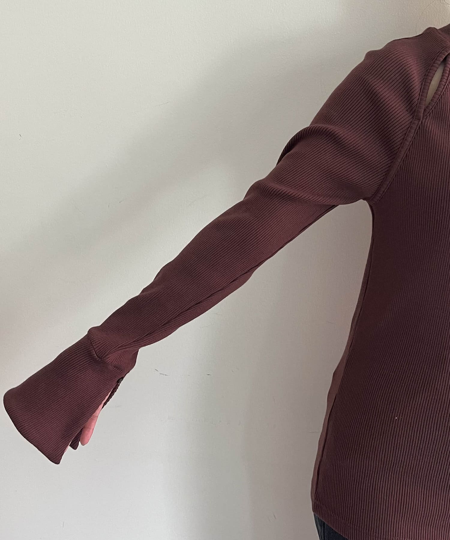 広がったそでが可愛くインナー代わりに着ることが多いです。肌見せの範囲もそこまで広くないので、暖かくなったら1枚で着るのに挑戦したいです。
