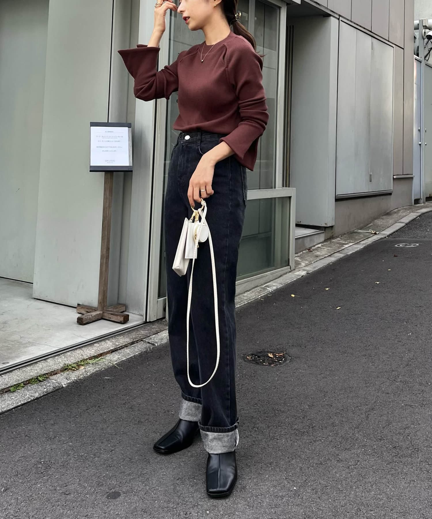 ・すっきりめのシルエットなので、どんなボトムにも相性◎