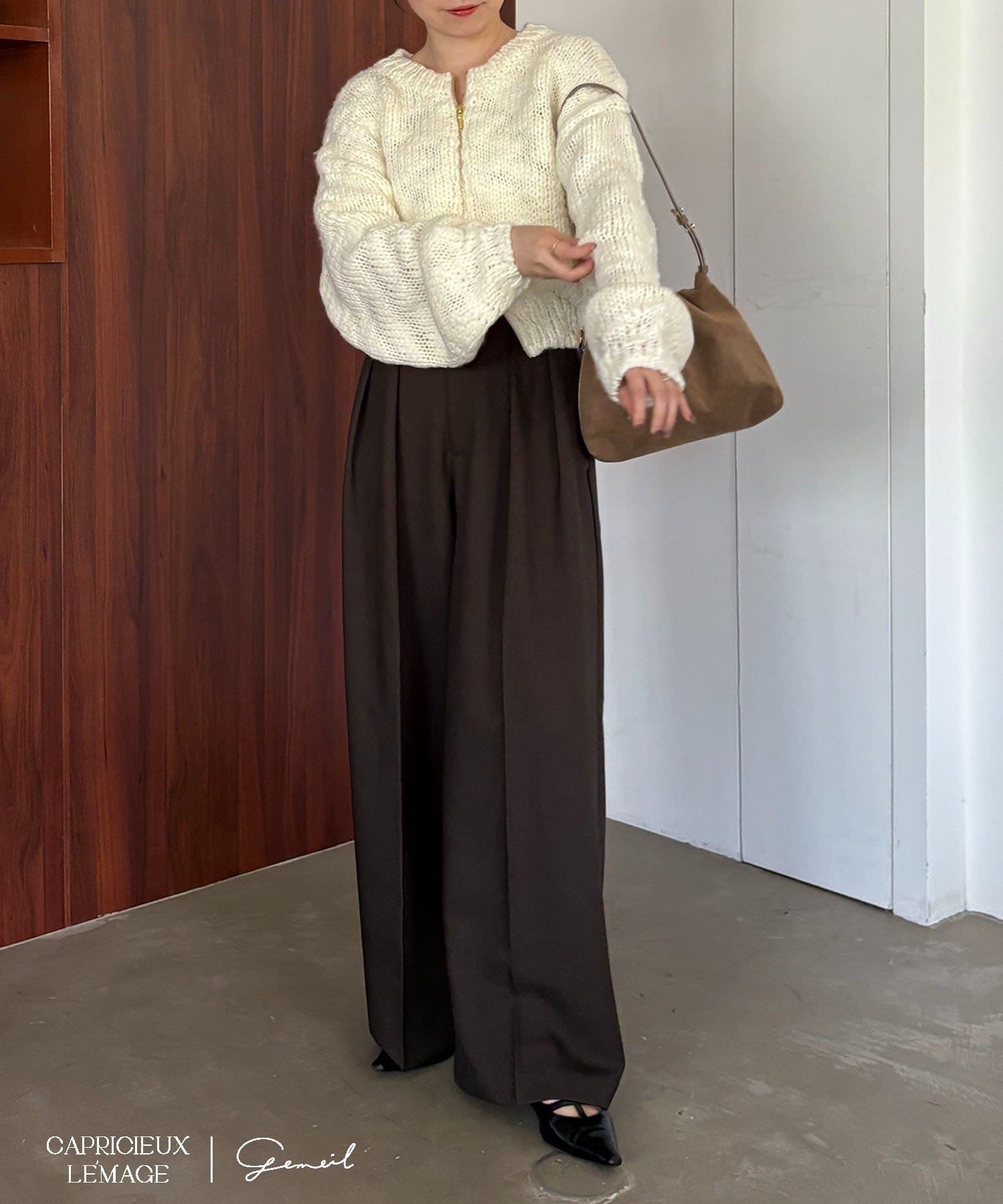 【ブラウンその他2着用アイテム】【LE'MAGE×gemeilコラボ】スラブジップカーディガン