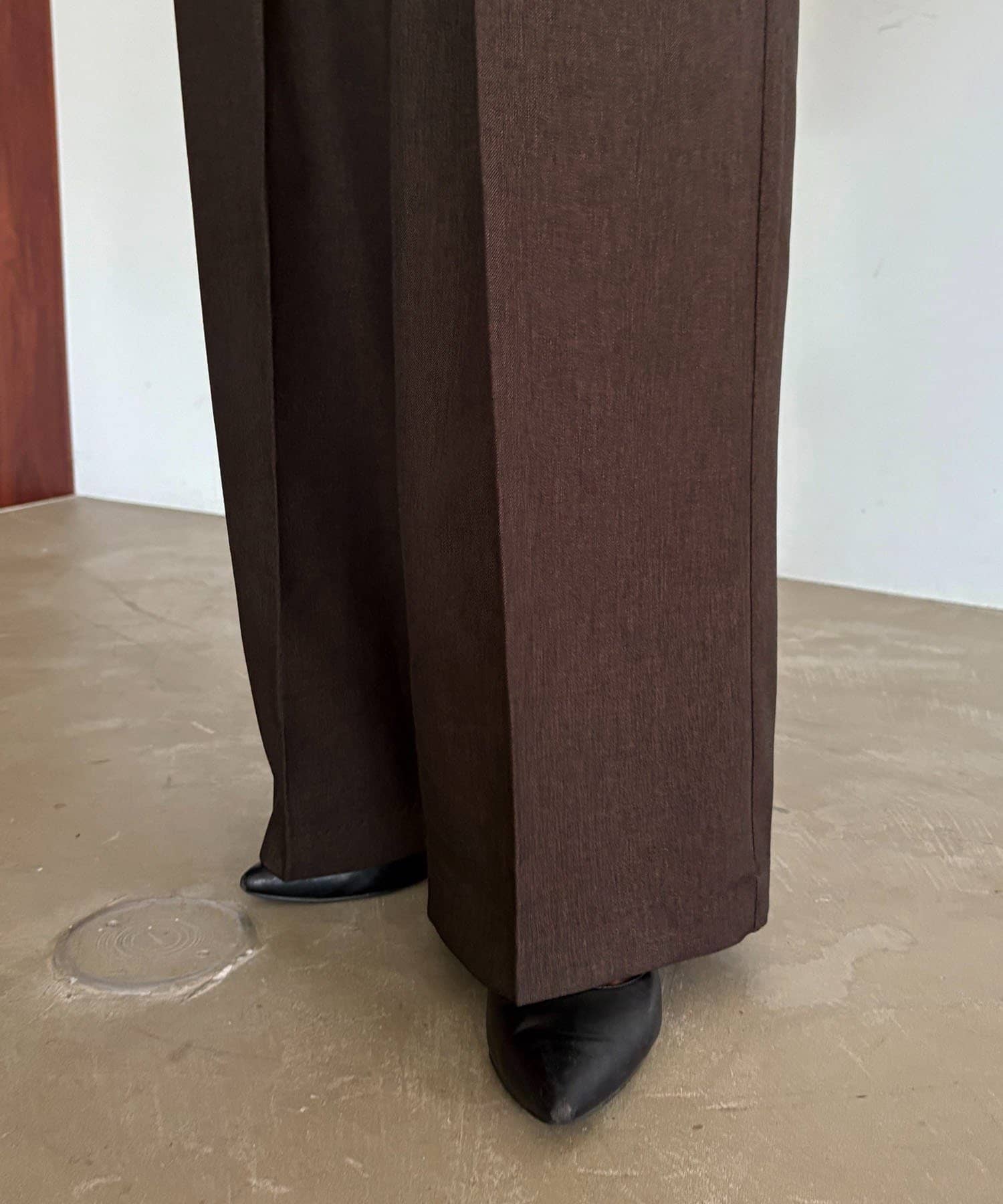 タックが入って正面からはそれほど太く見えないものの、横から見るとしっかりワイド感。