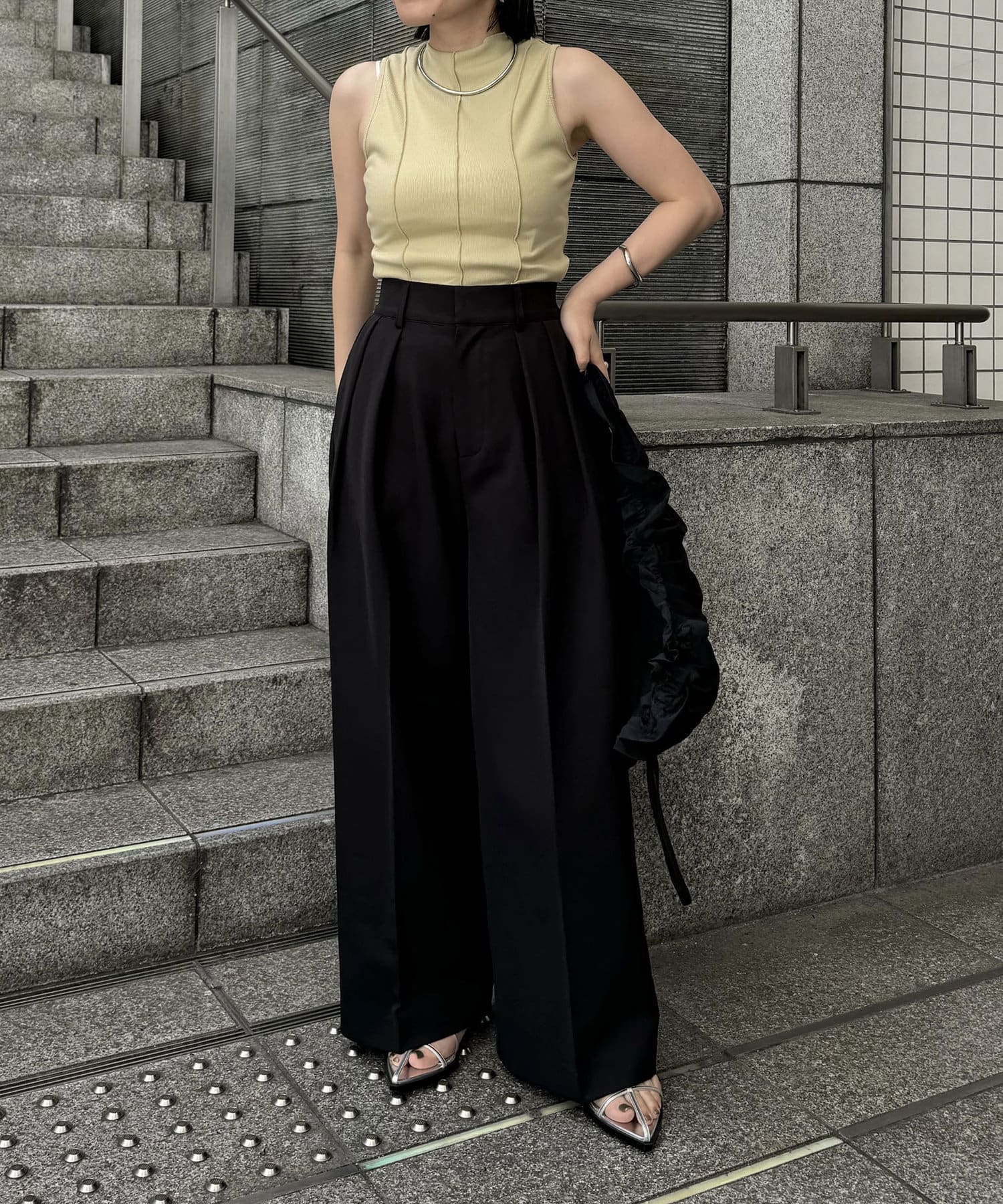 【ベージュ着用アイテム】ラインシアーニットタンク