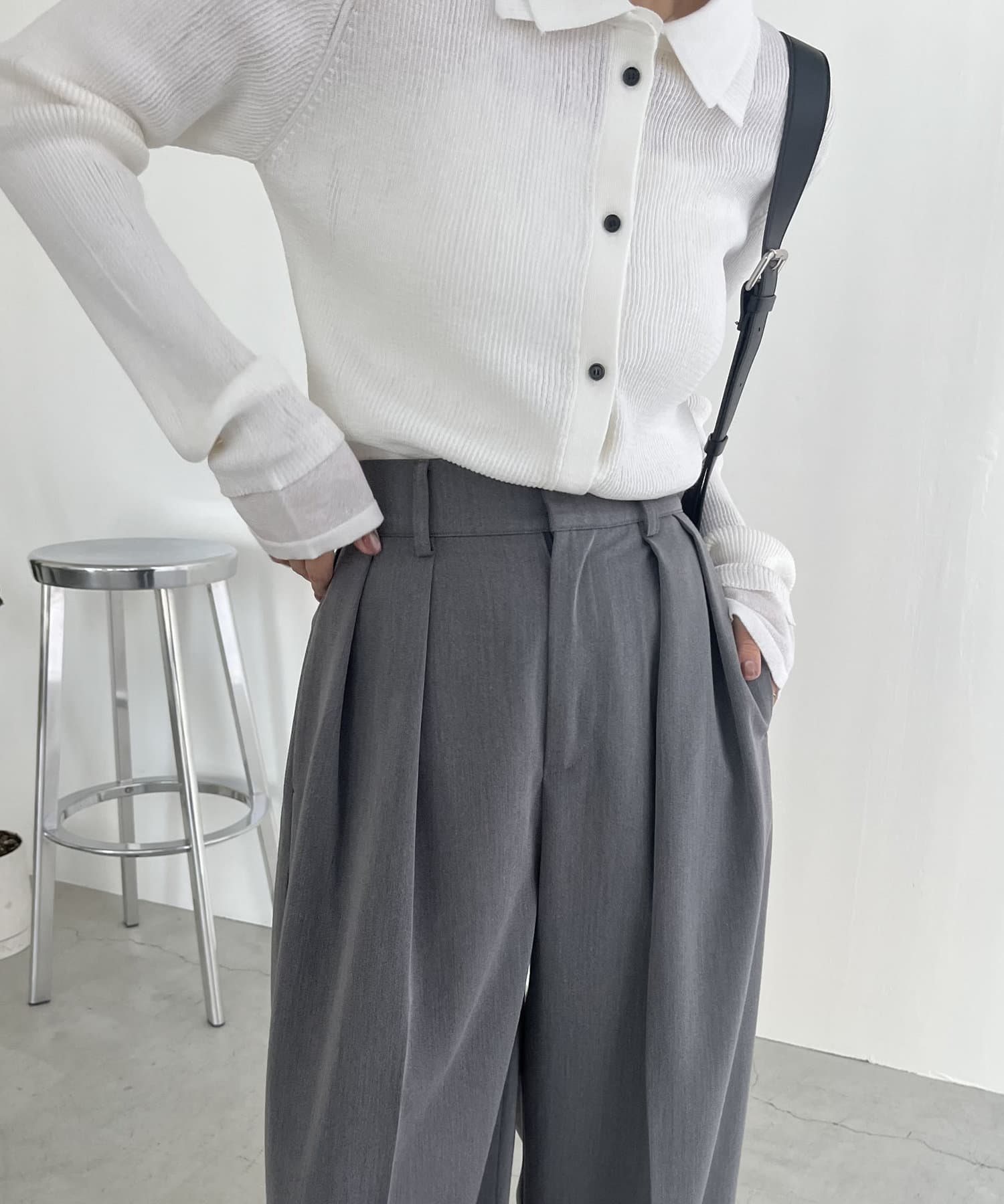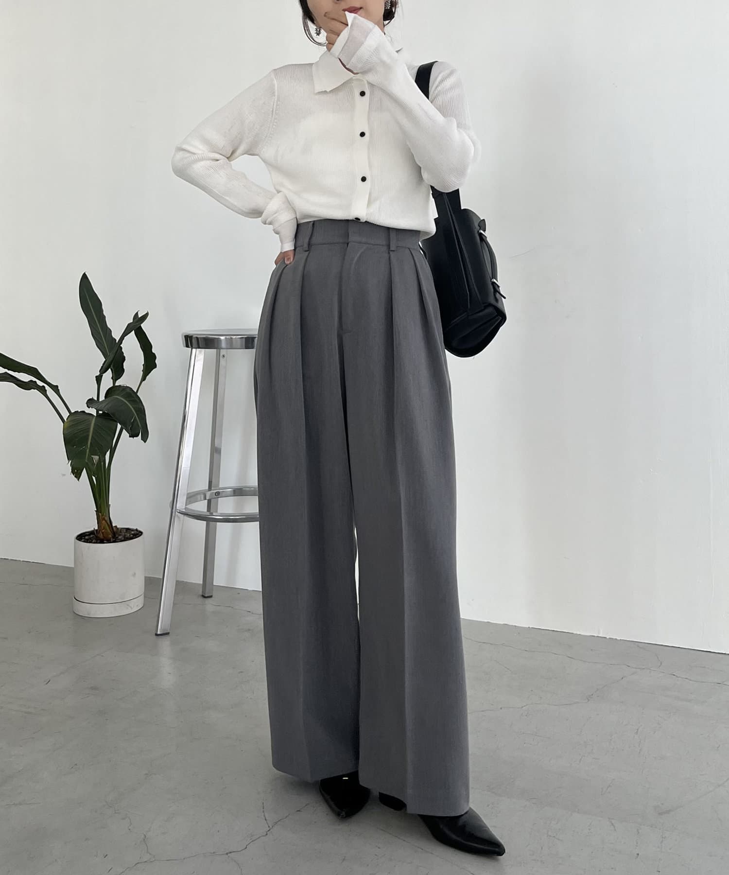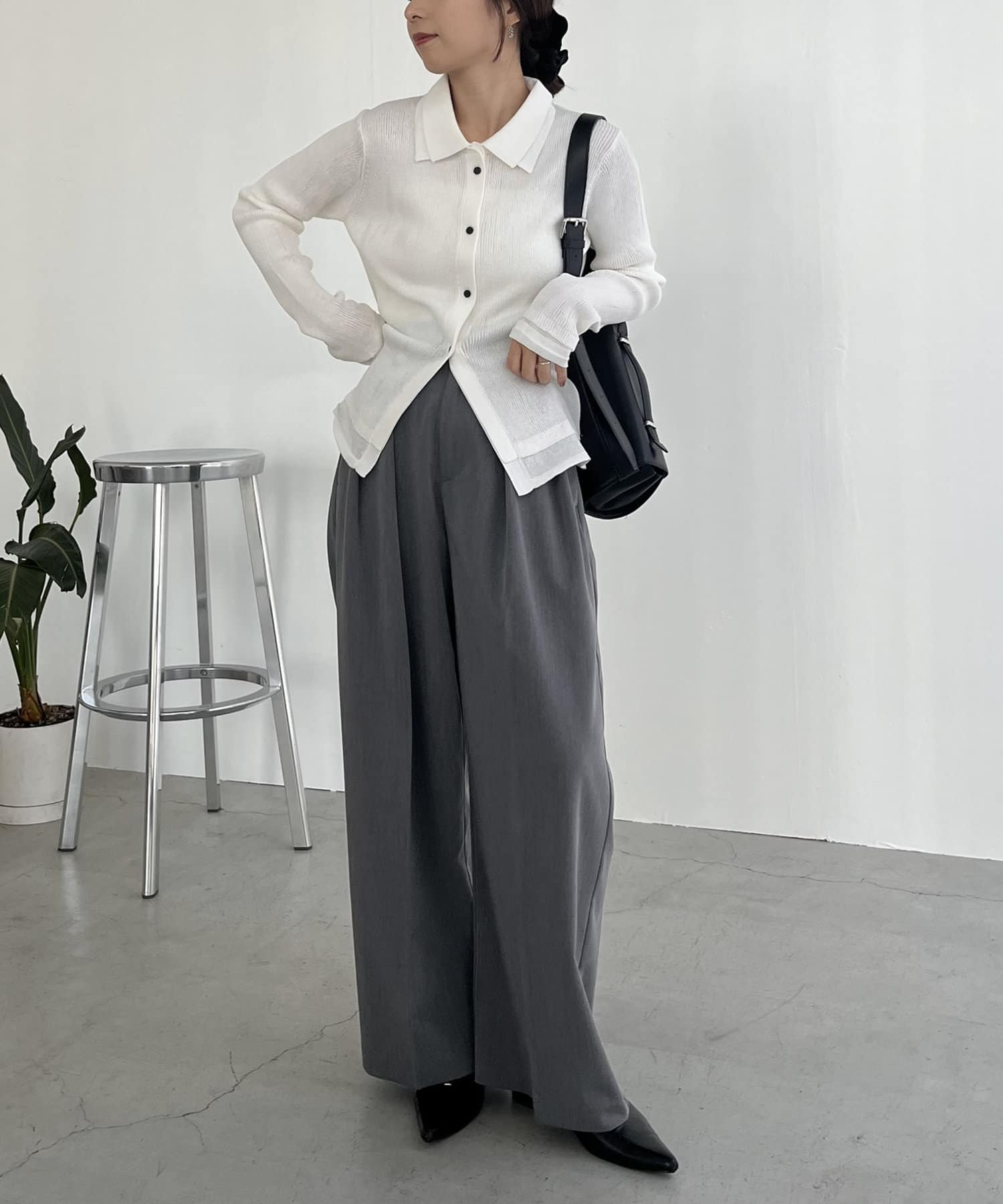 【グレーその他①着用アイテム】2重襟リブカーディガン
