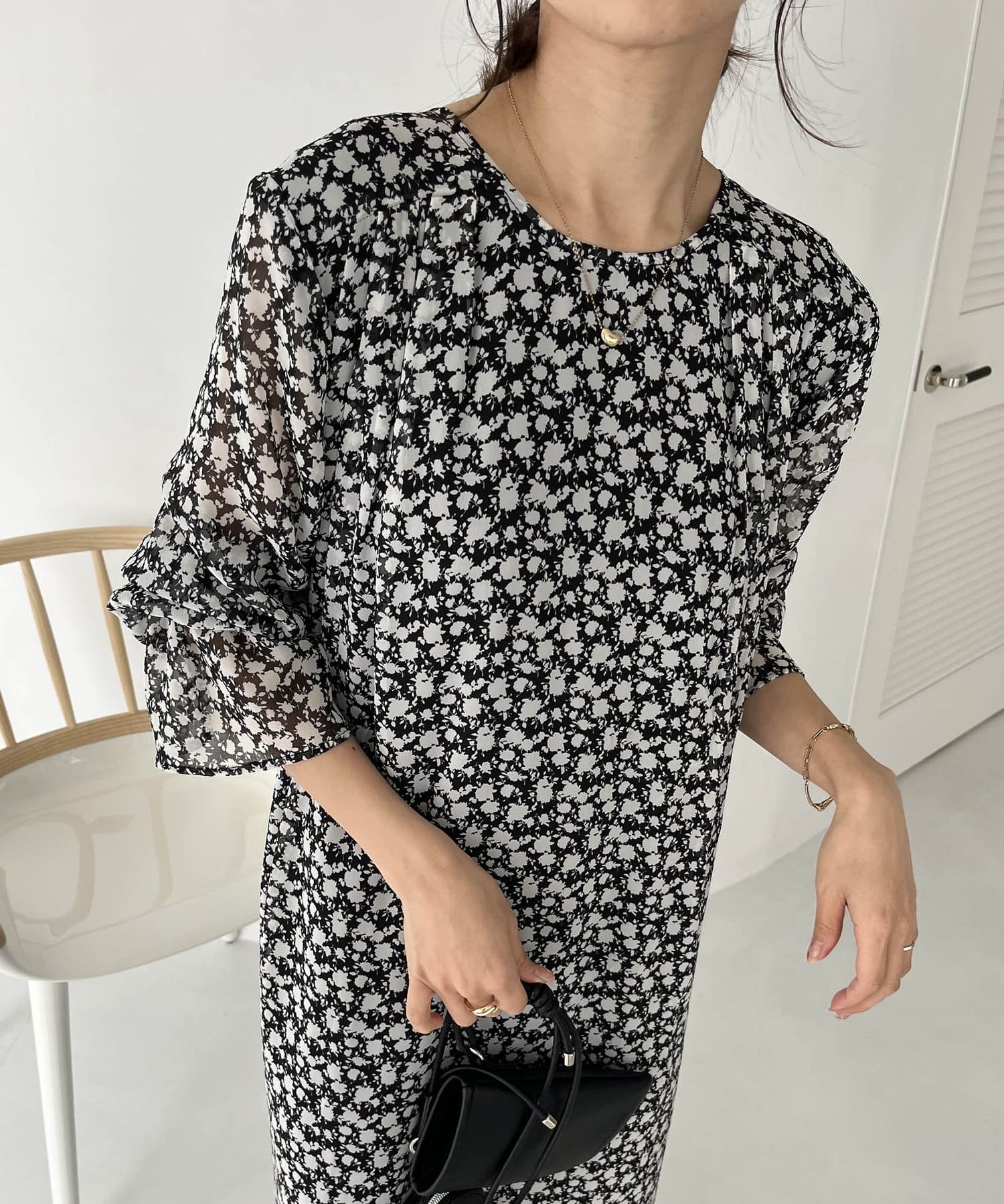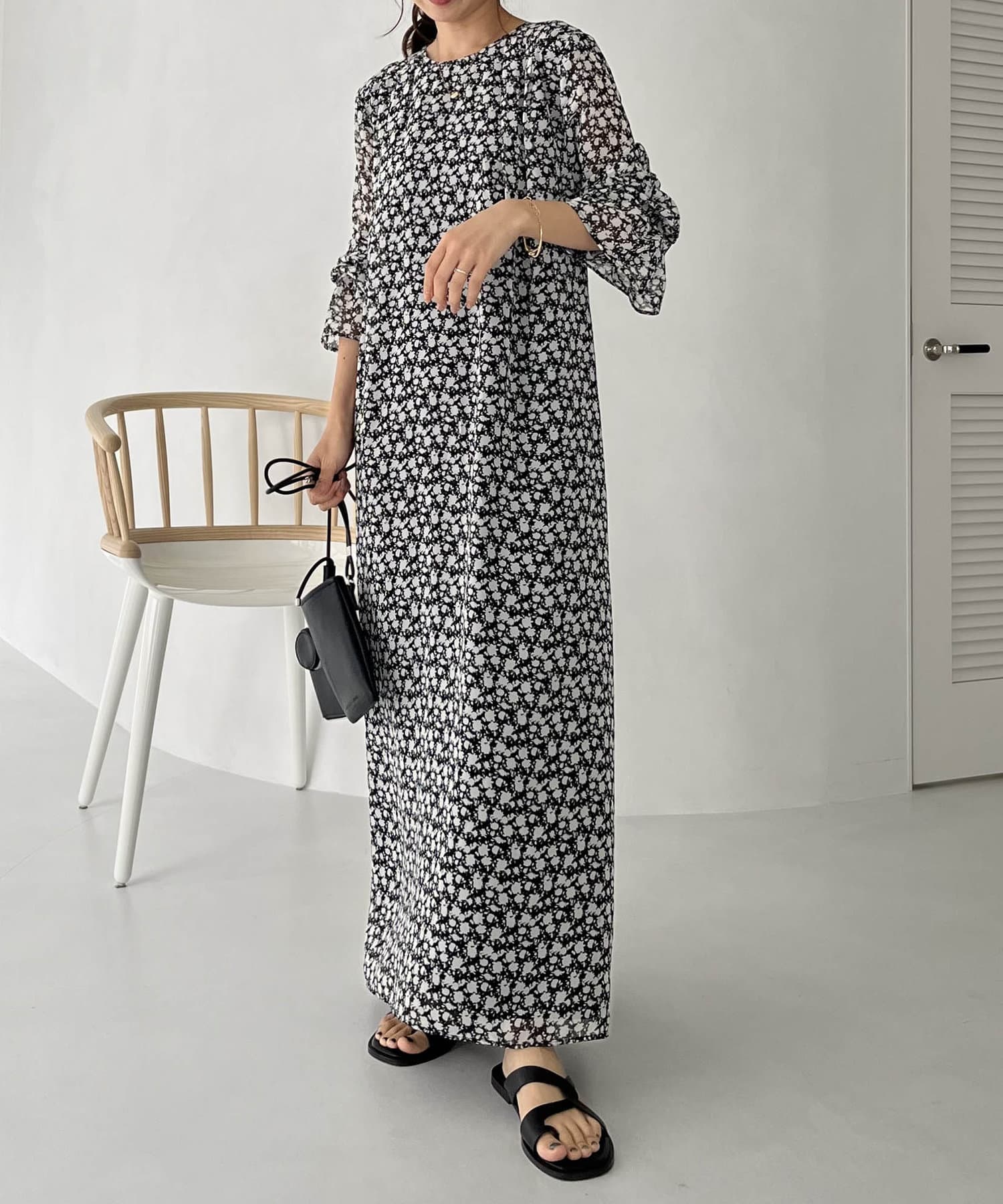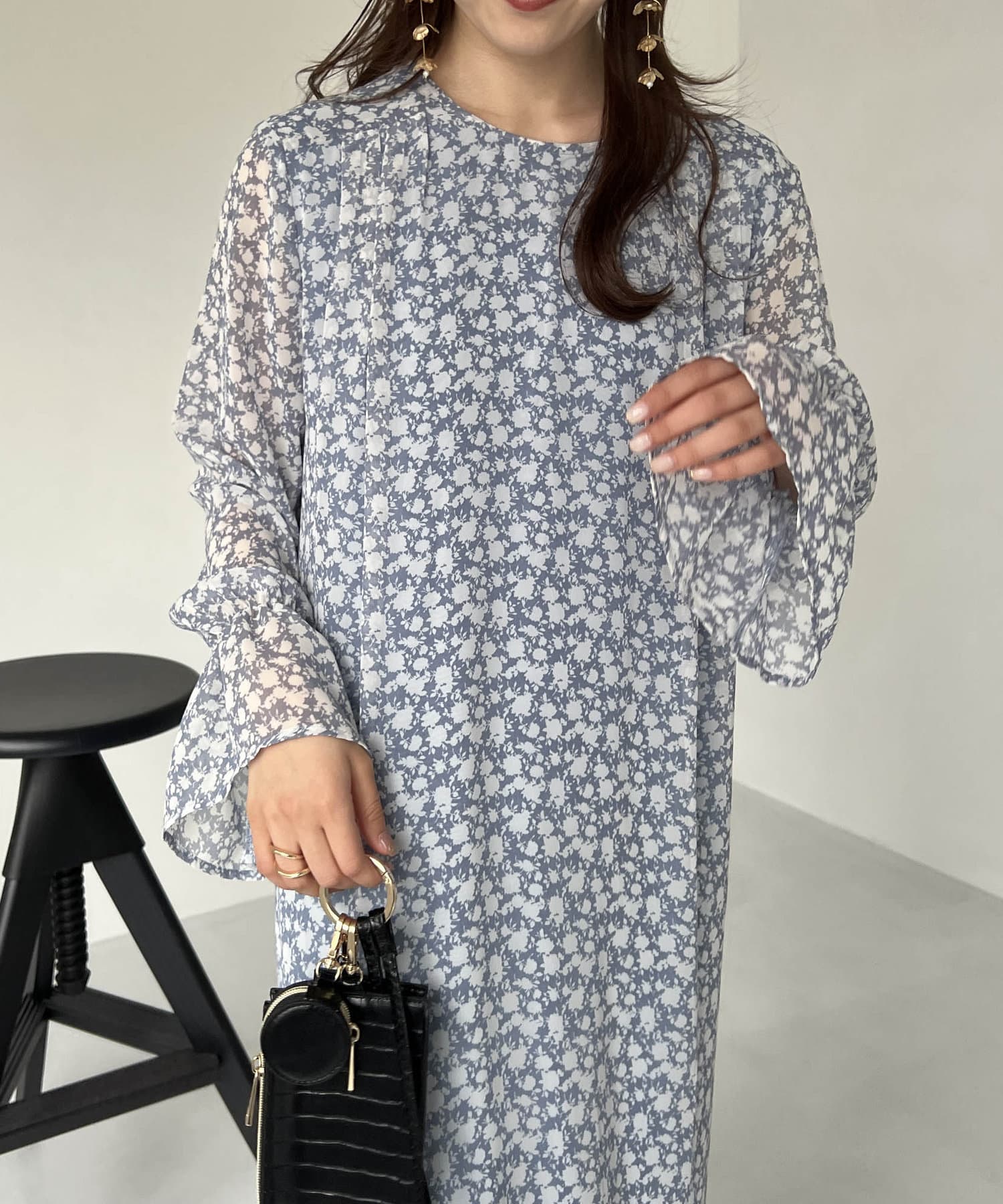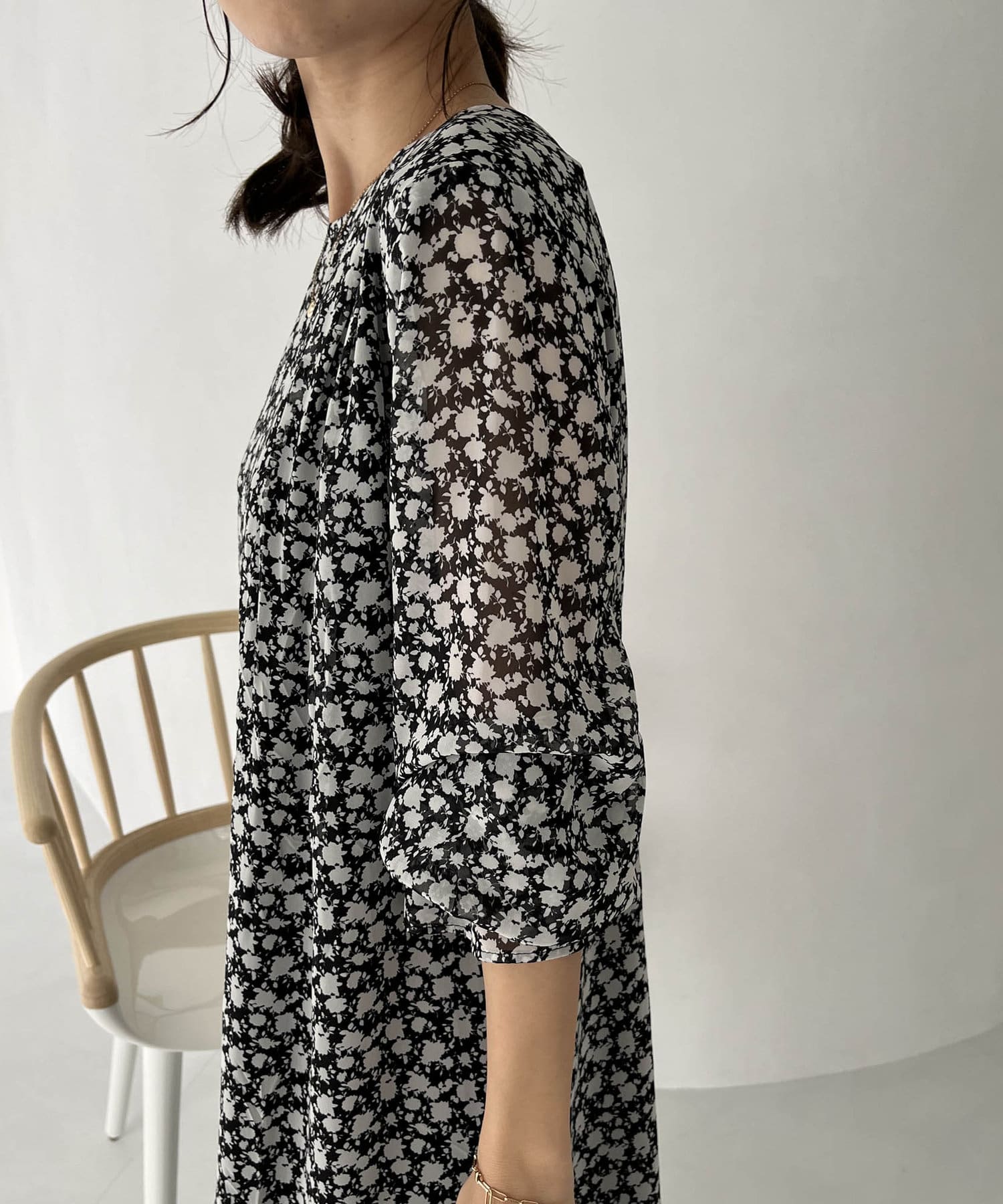ふわっと軽い生地感の花柄ワンピース