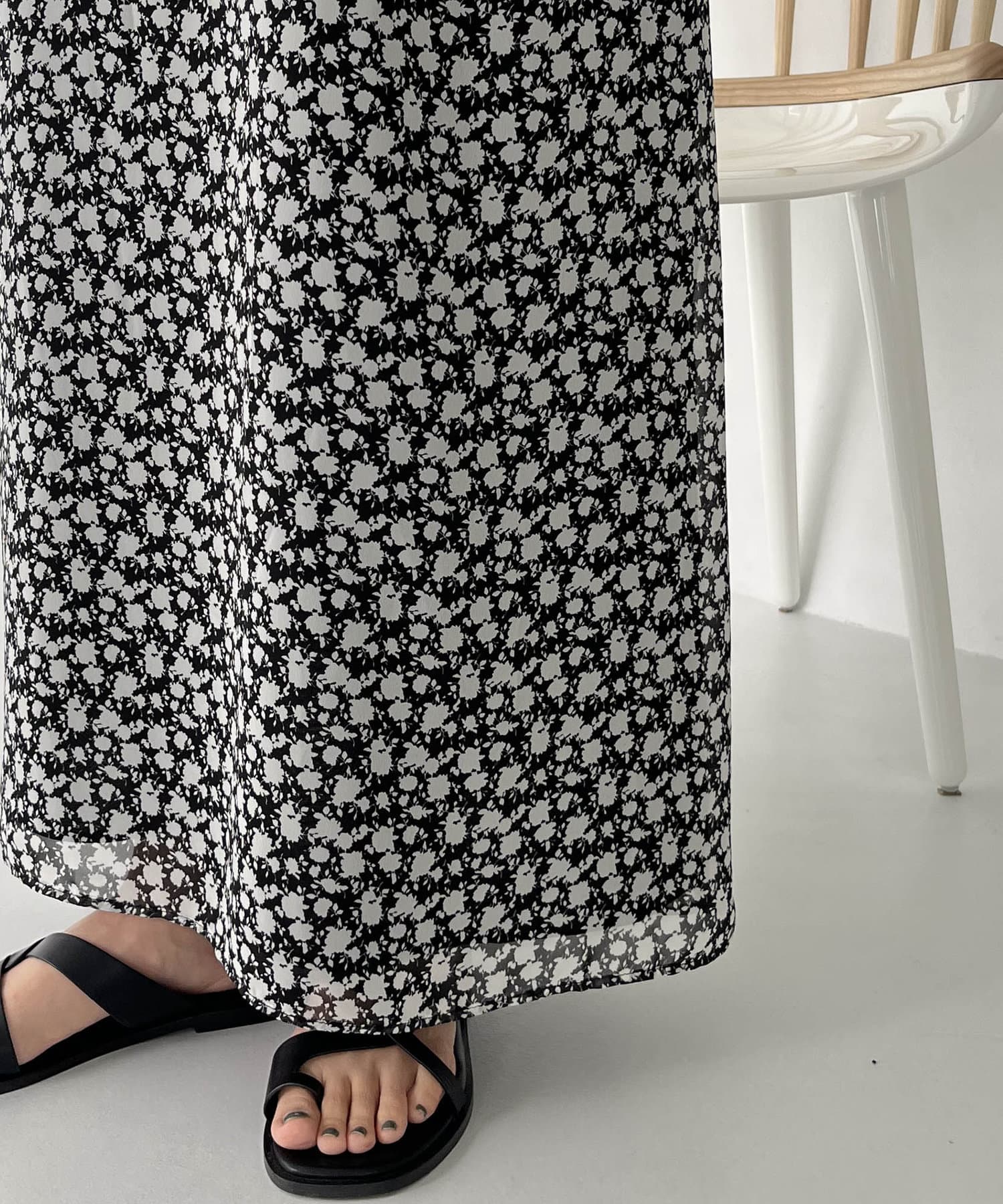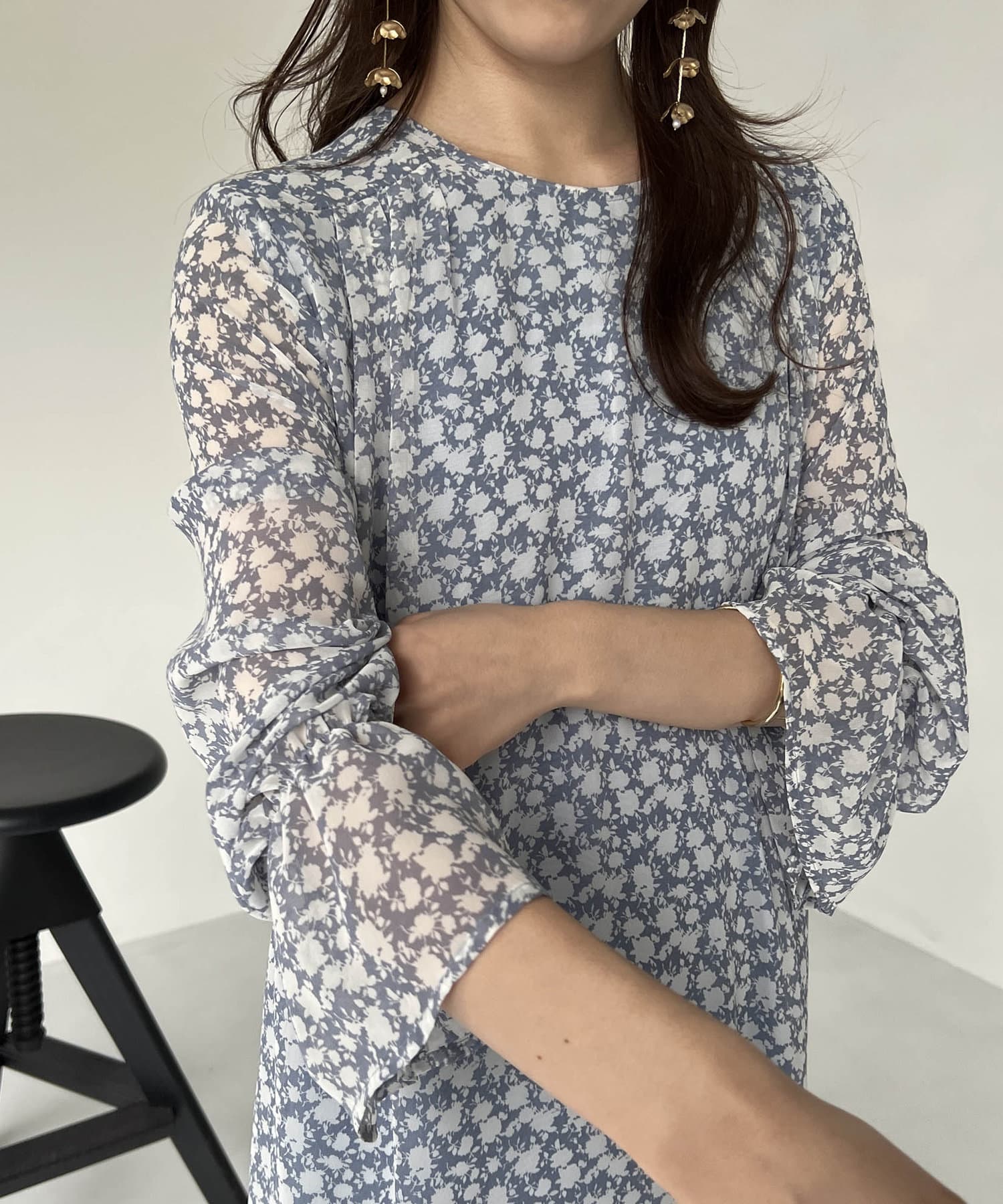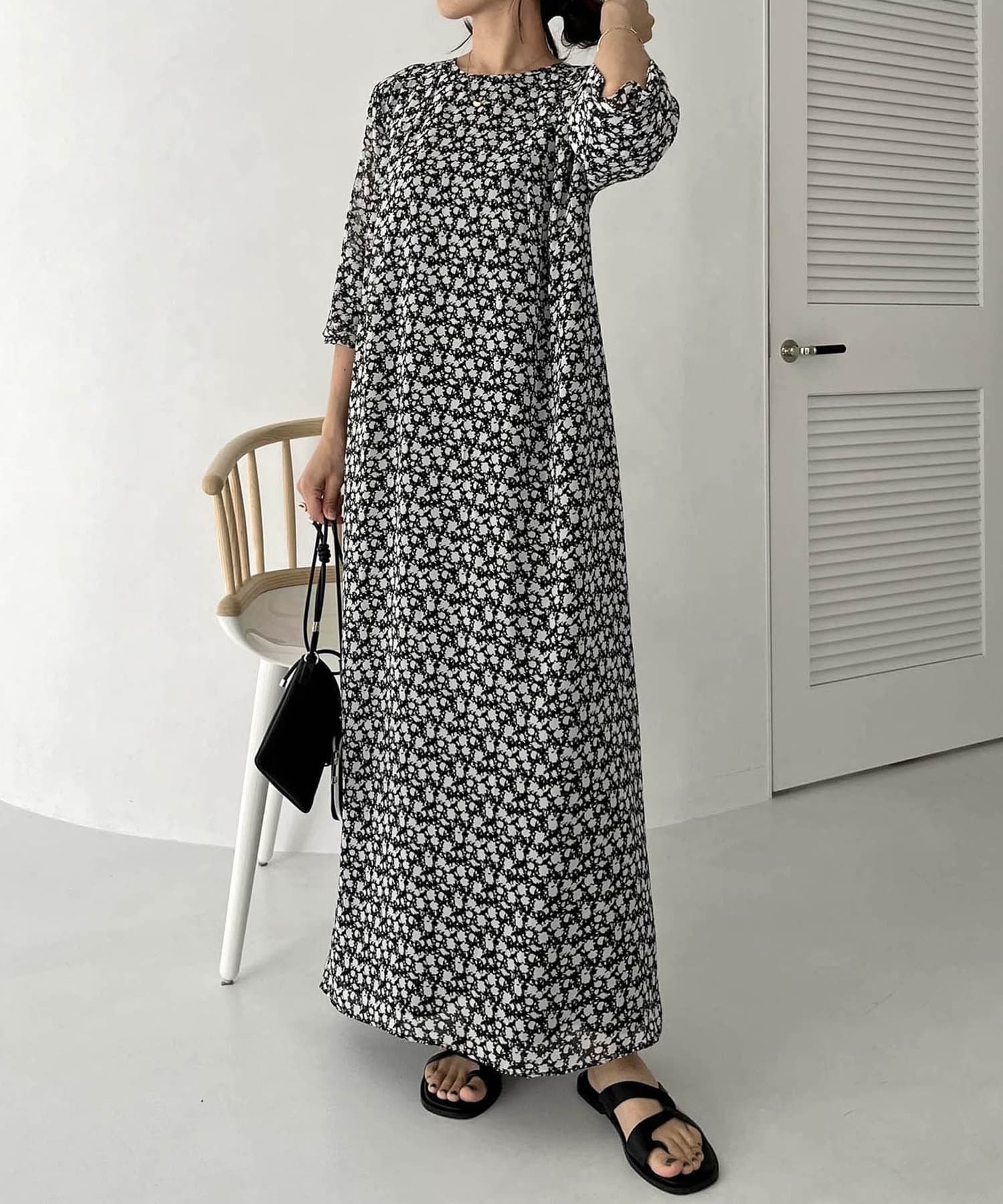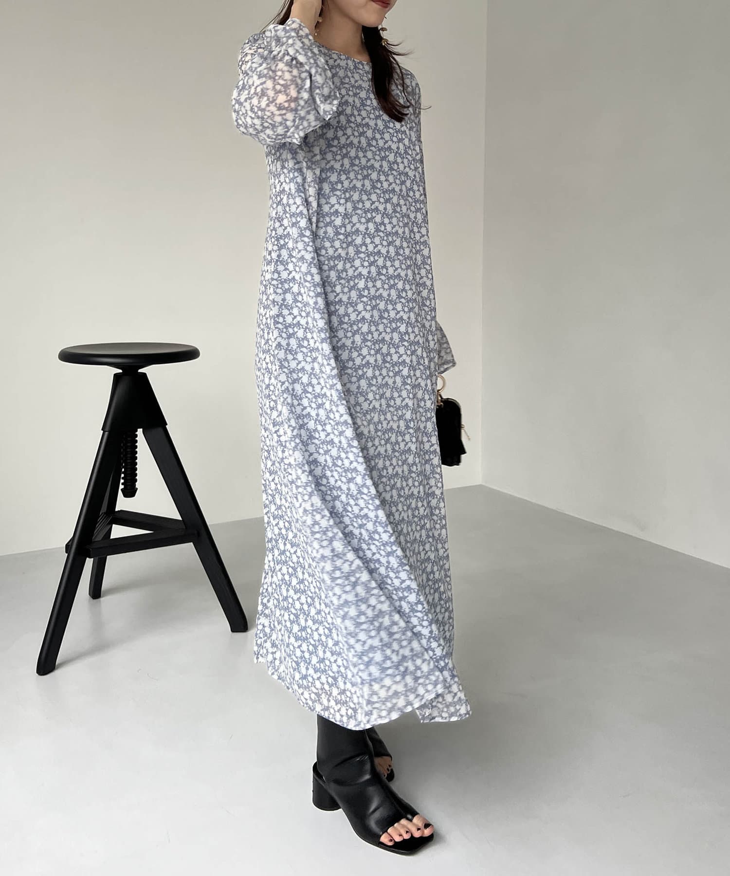 ふわっと軽い生地感の花柄ワンピース