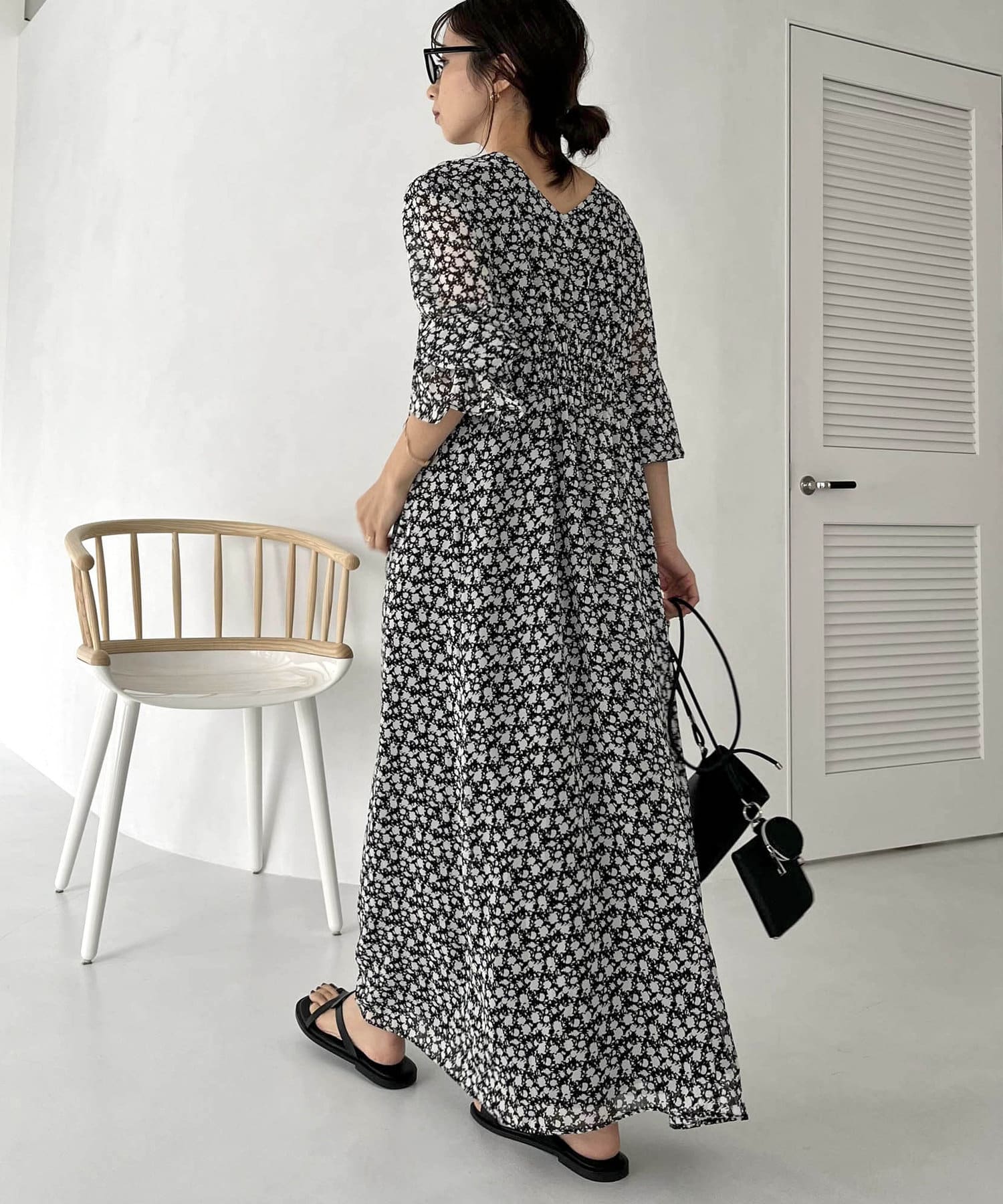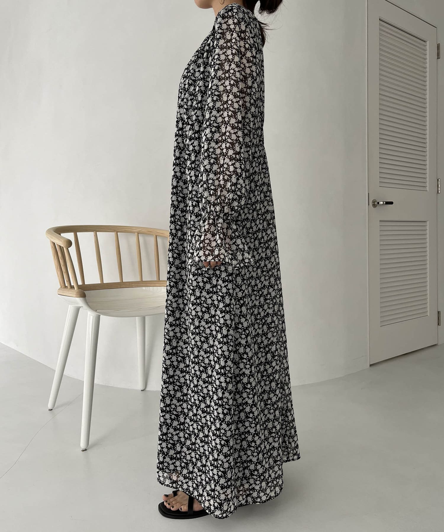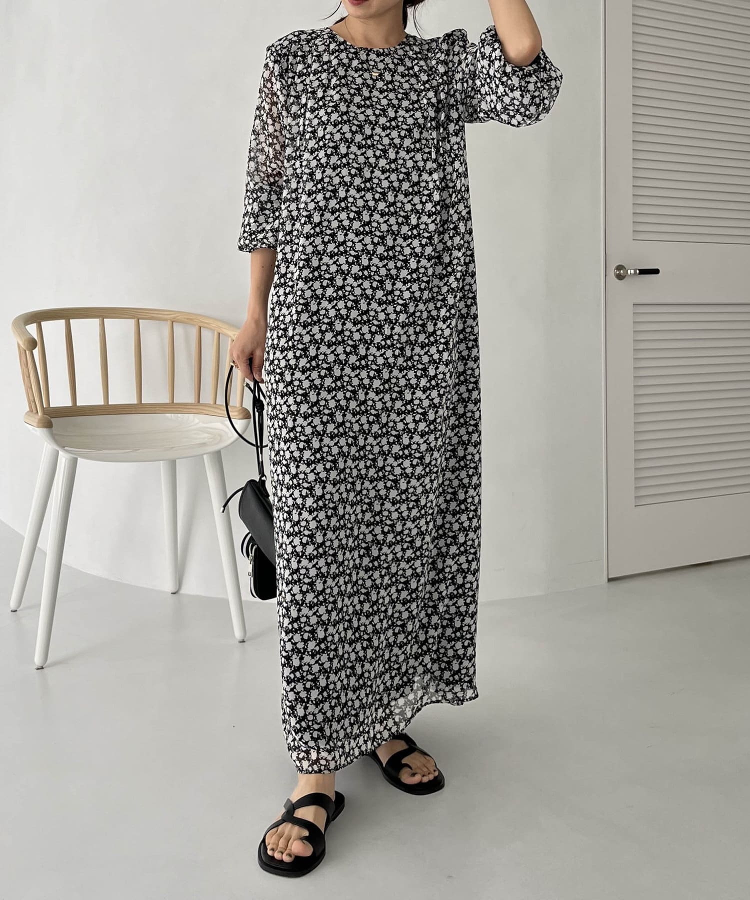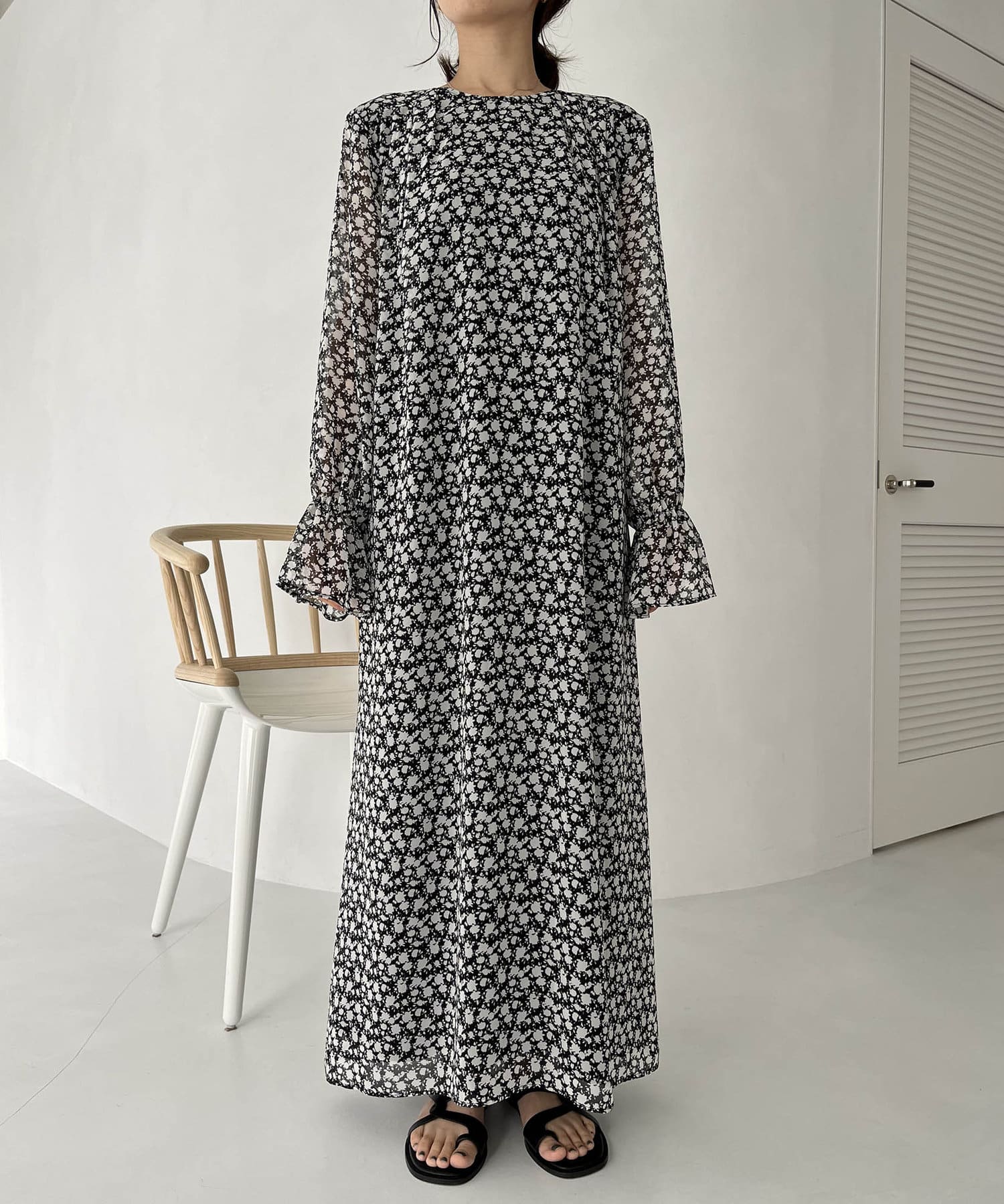 ふわっと軽い生地感の花柄ワンピース