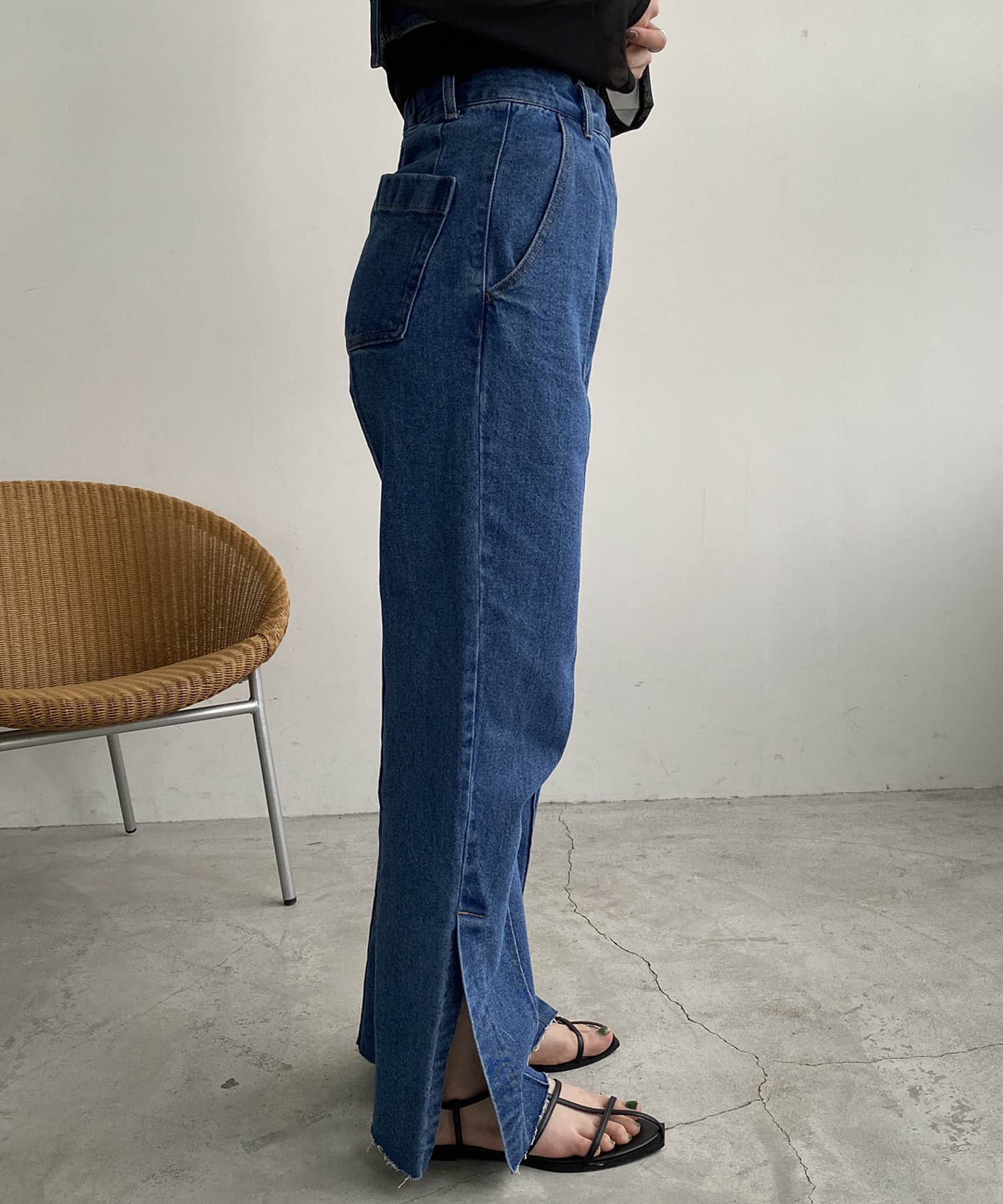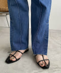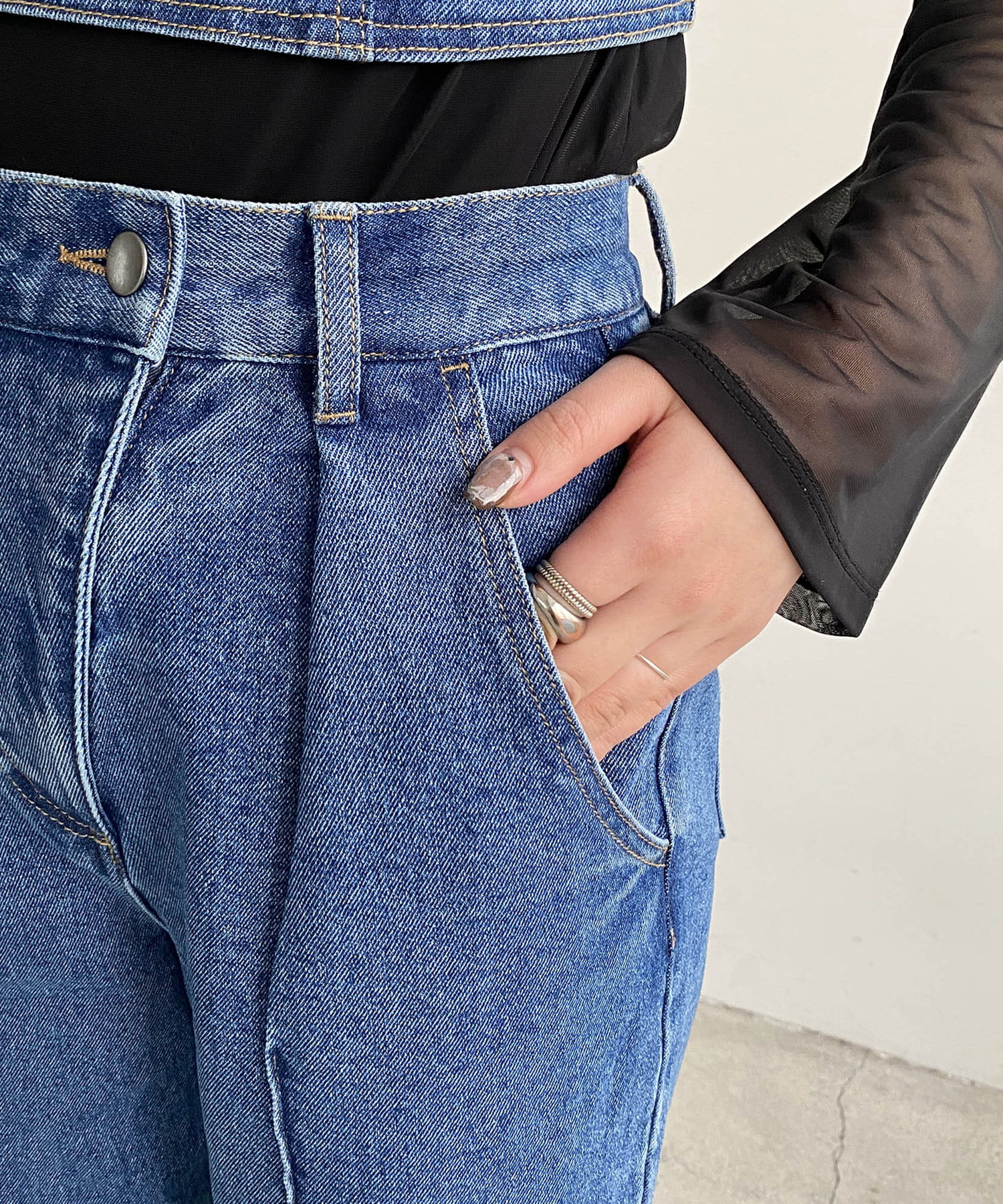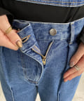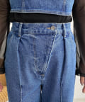 ウエストのアシメデザインが目を惹くデニム
