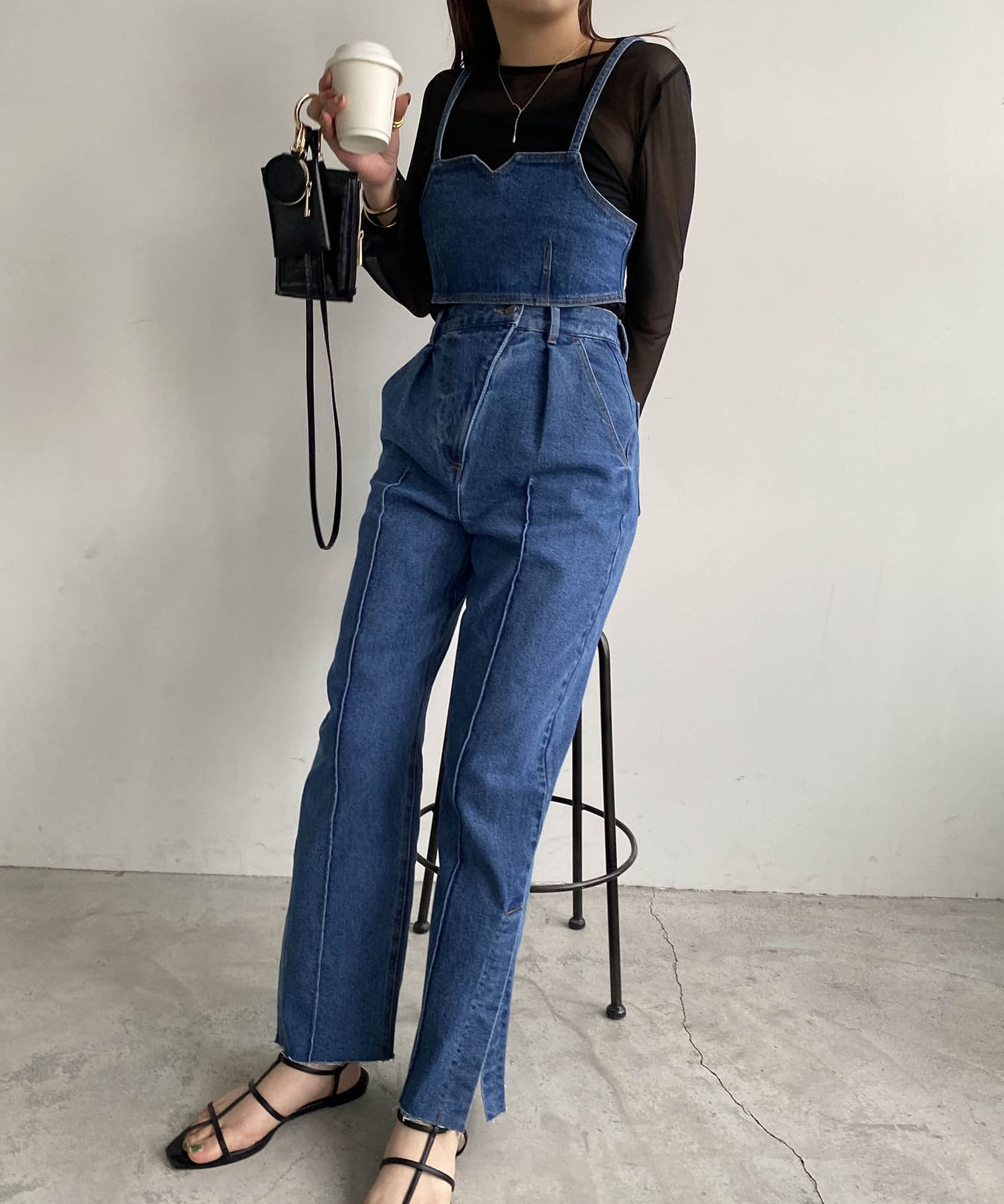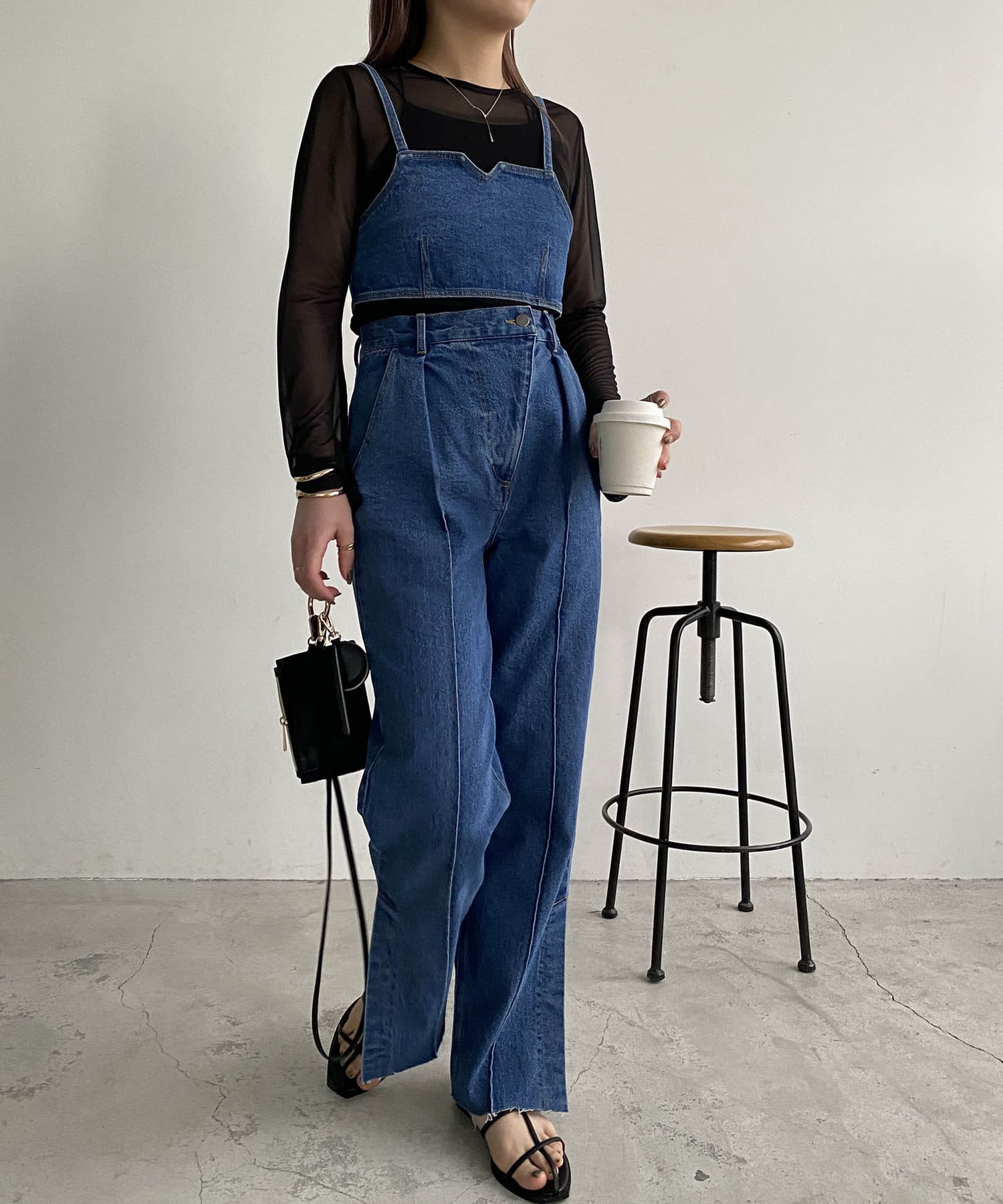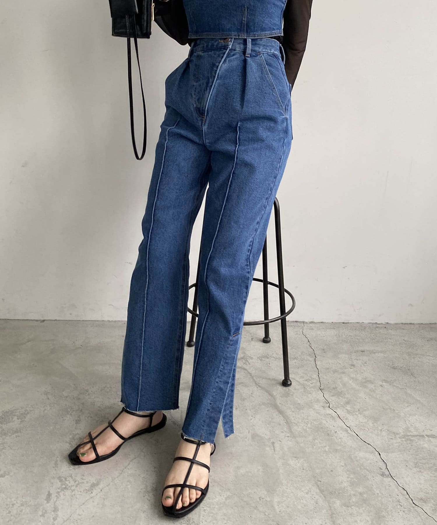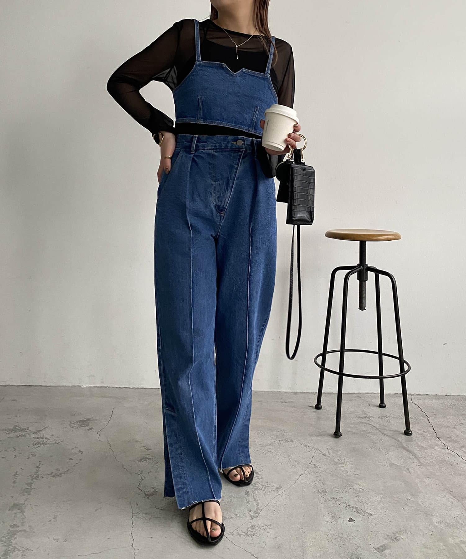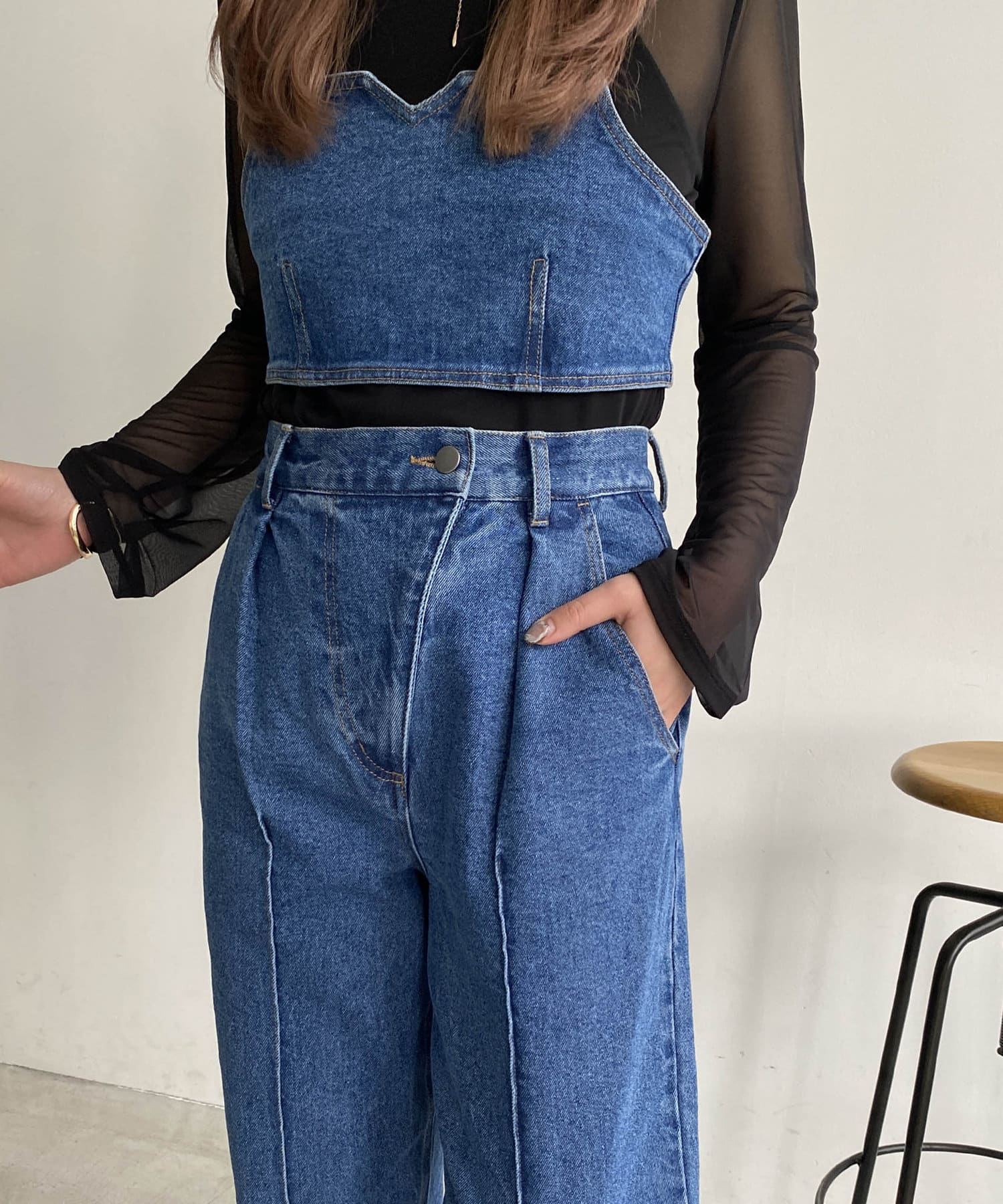 ・同素材のデニムビスチェとセットアップで着用可能