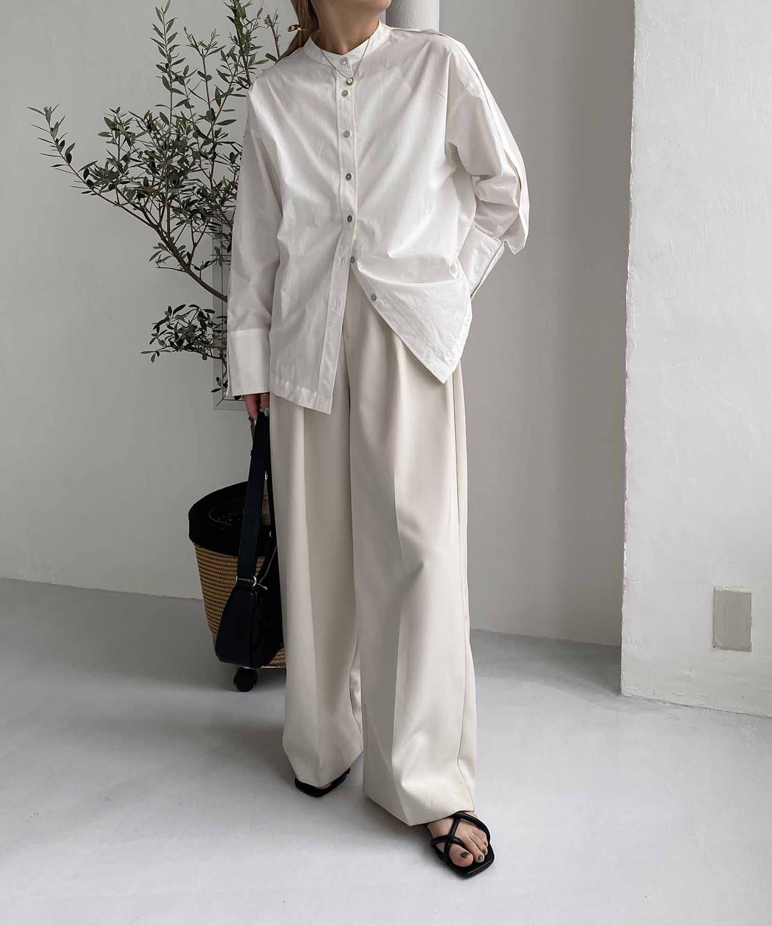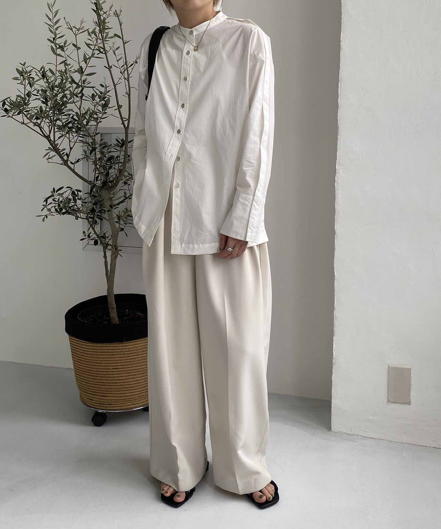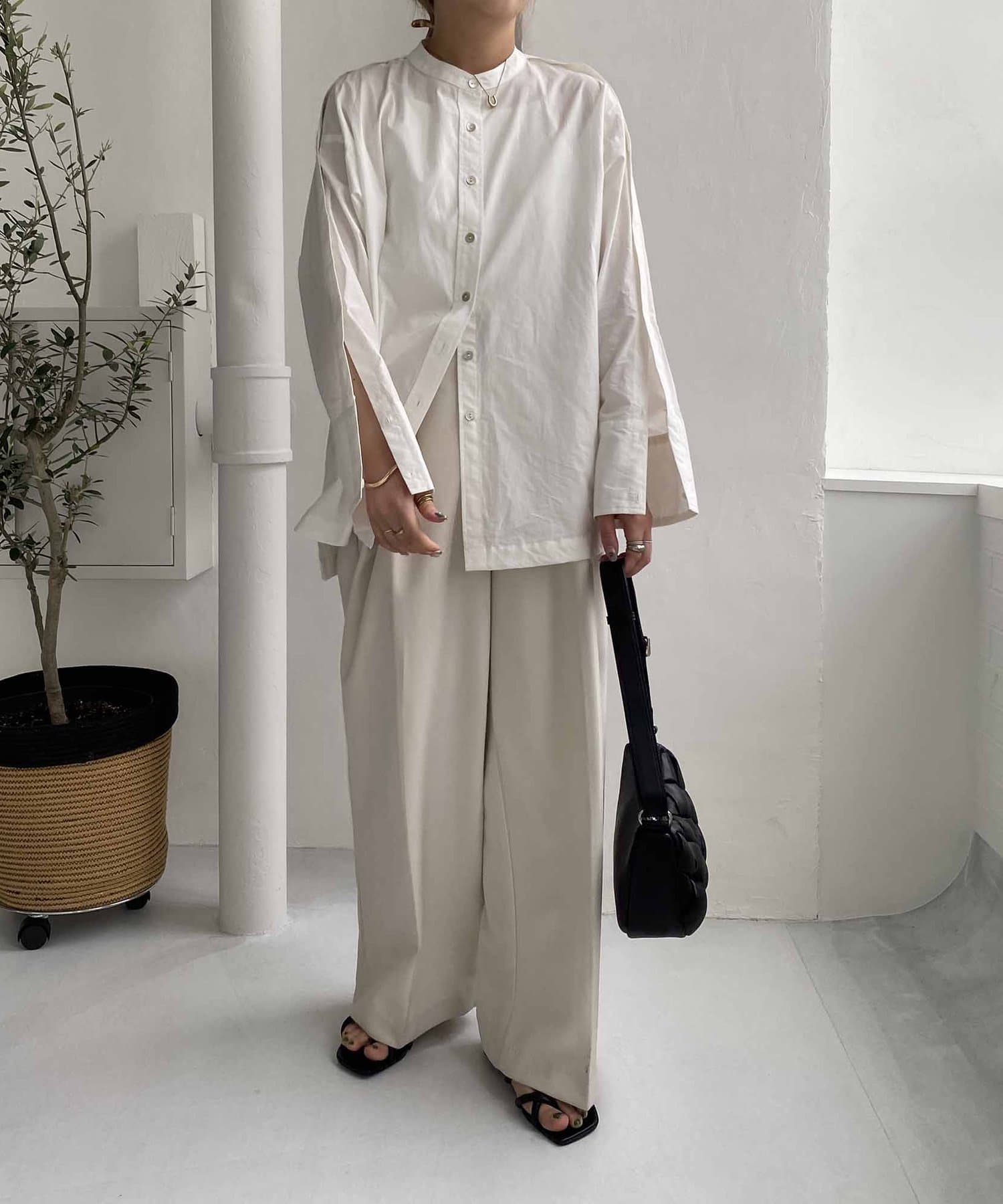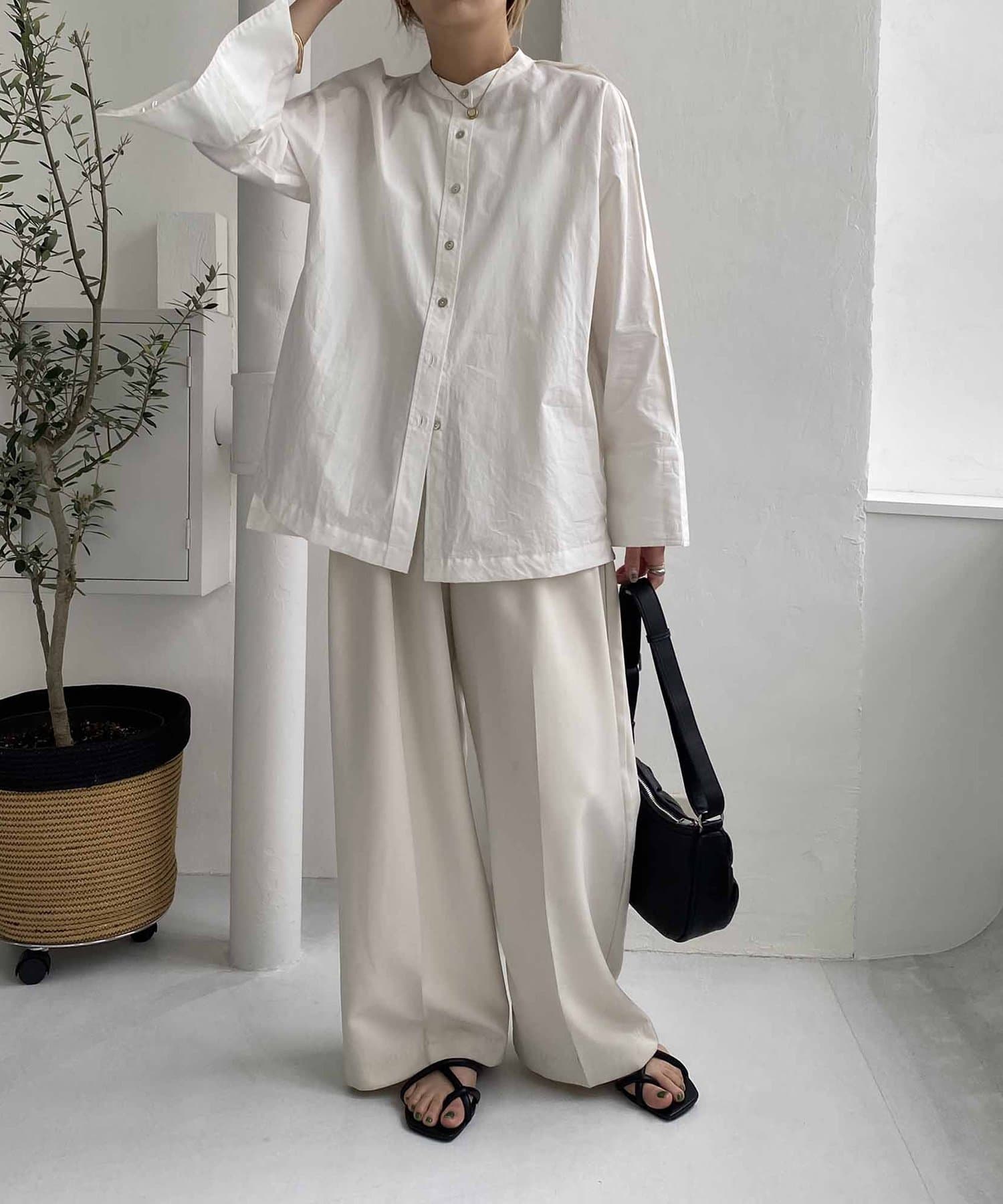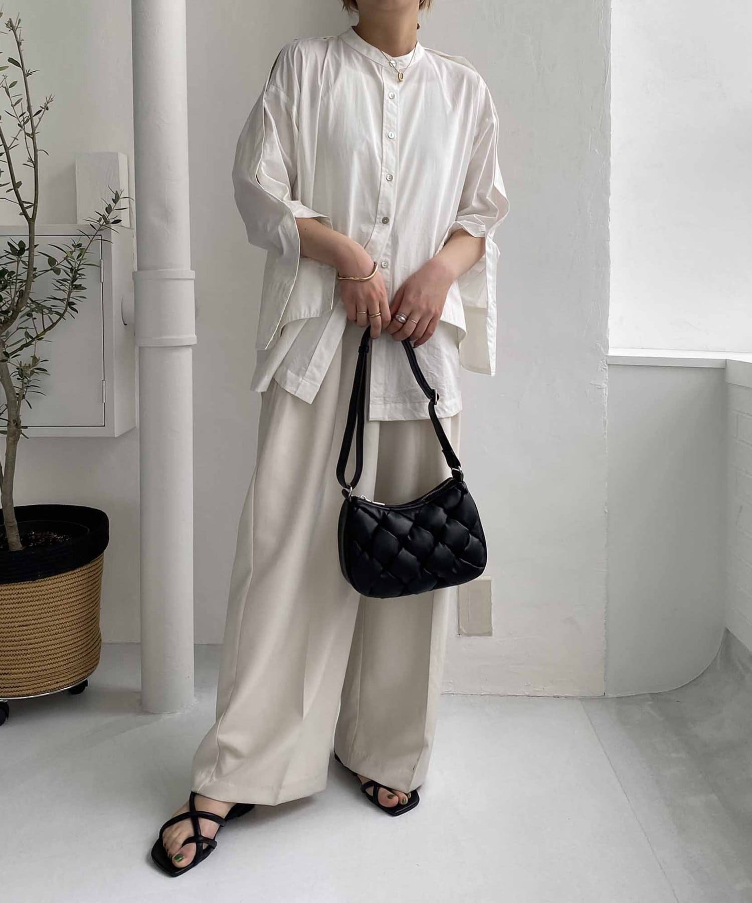・ワイドパンツと合わせてゆるっとラフなスタイリングに
