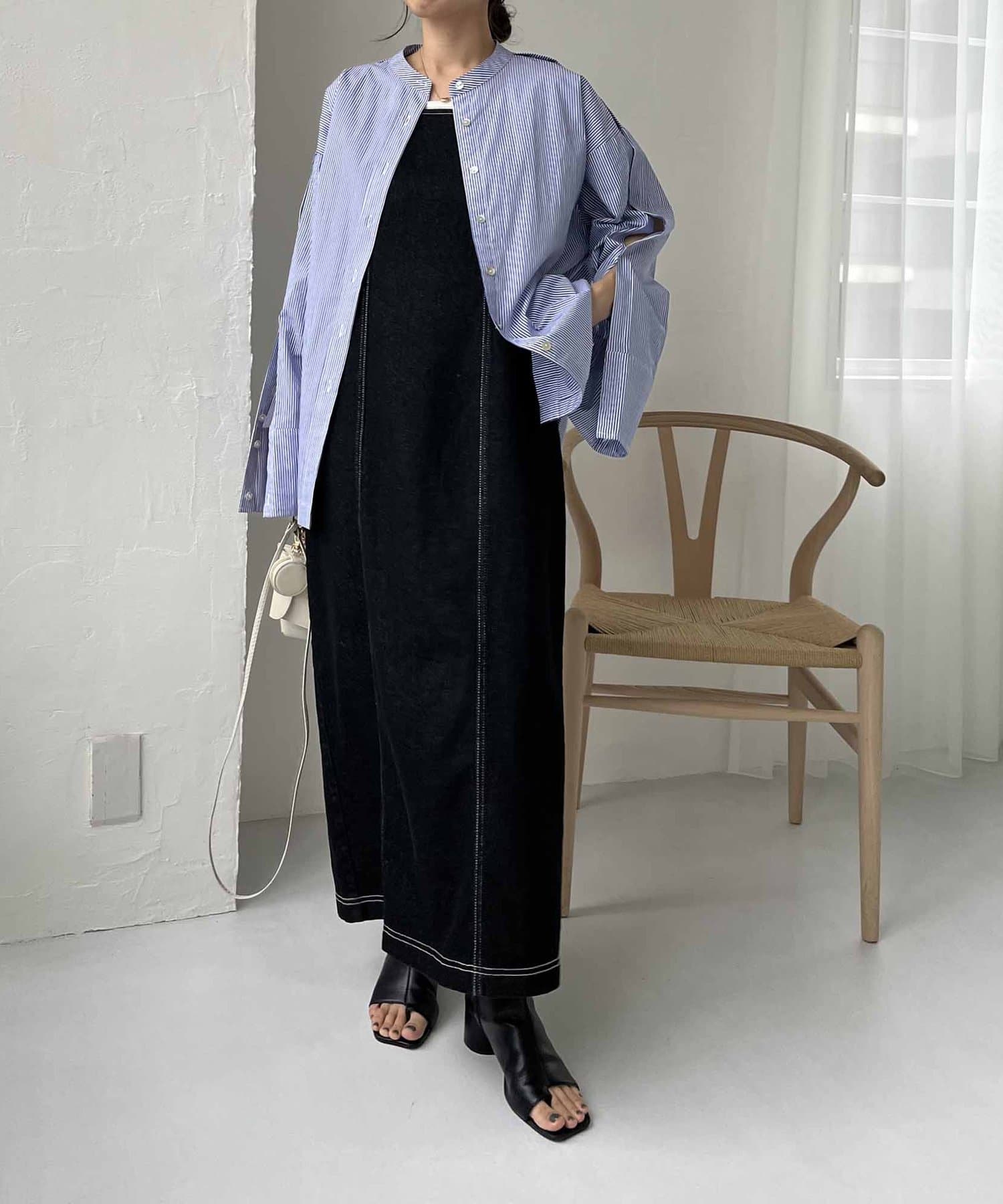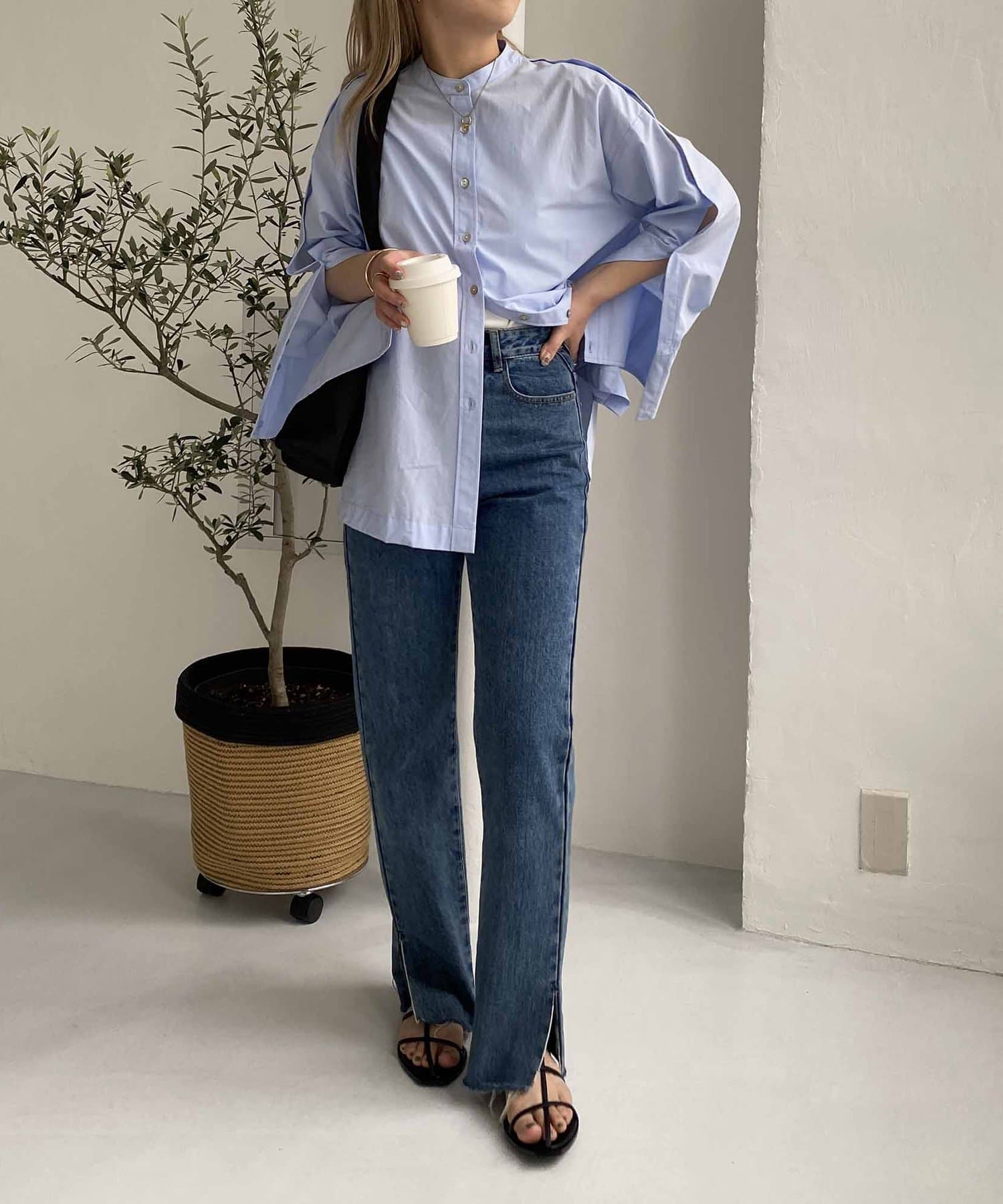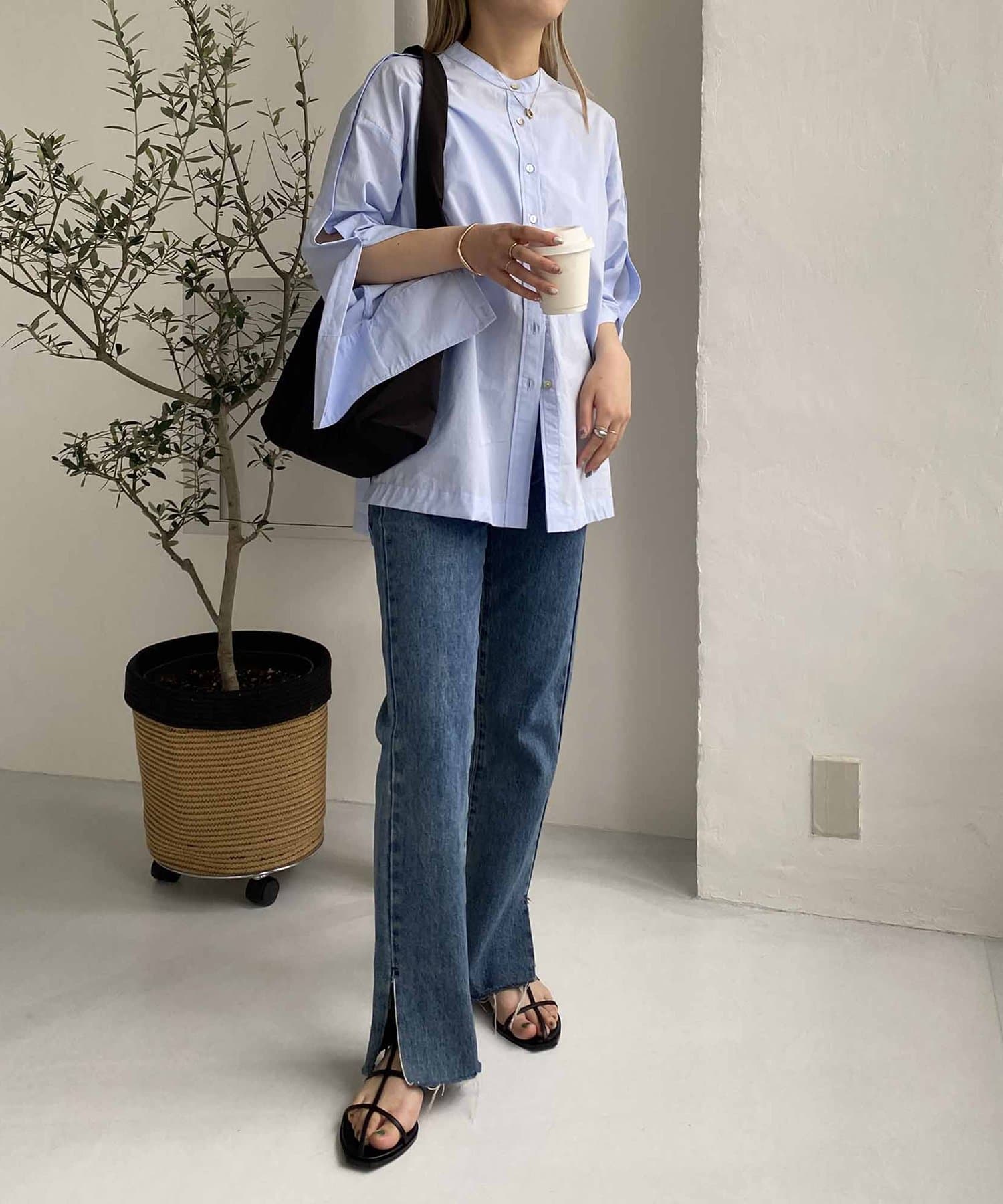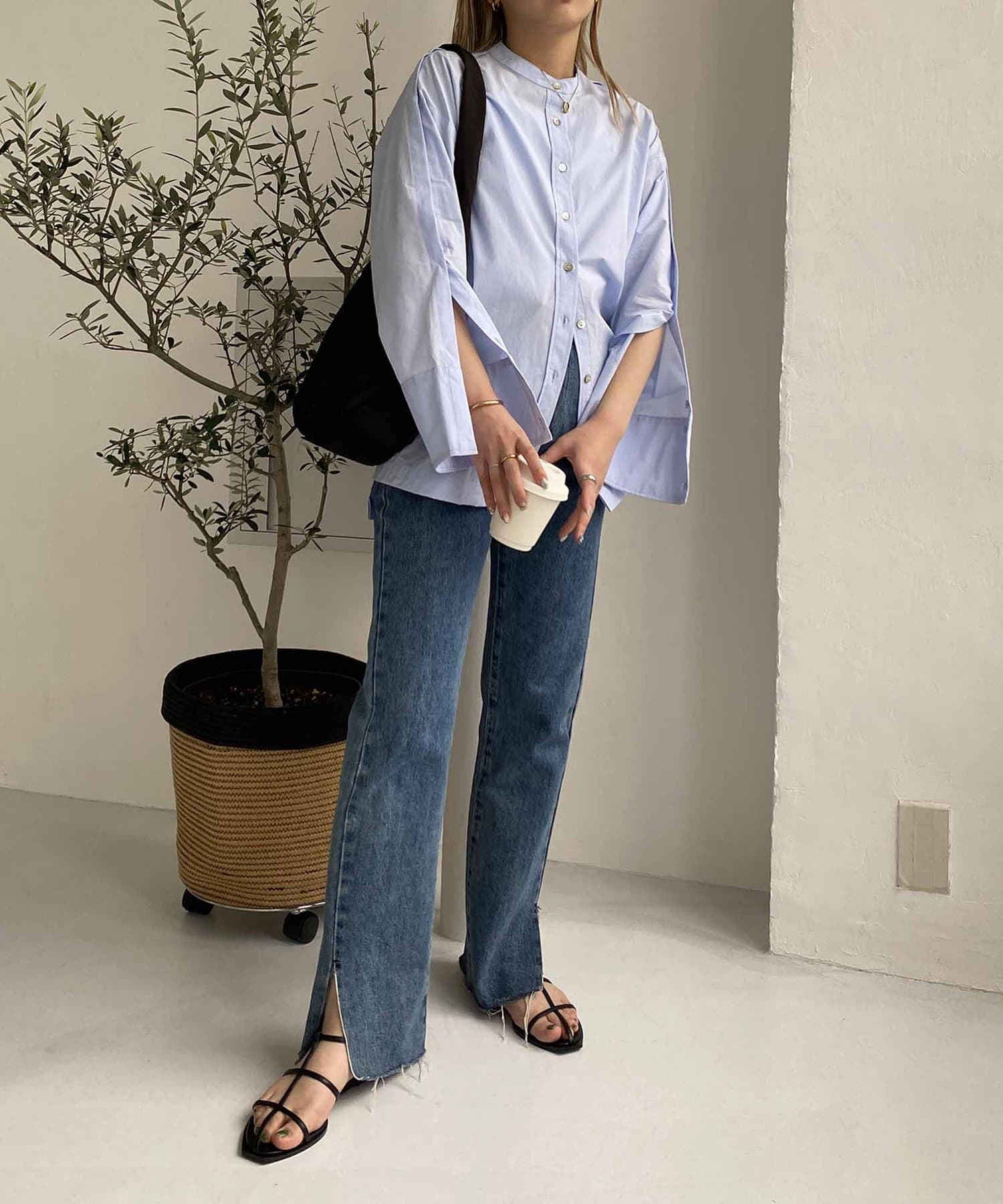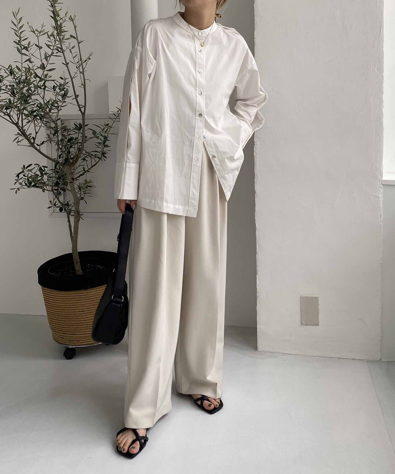 ・ワイドパンツと合わせてゆるっとラフなスタイリングに