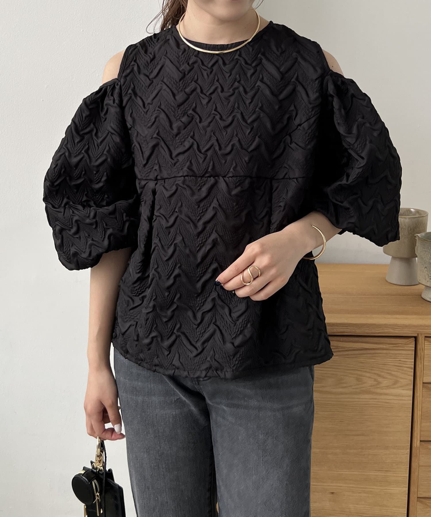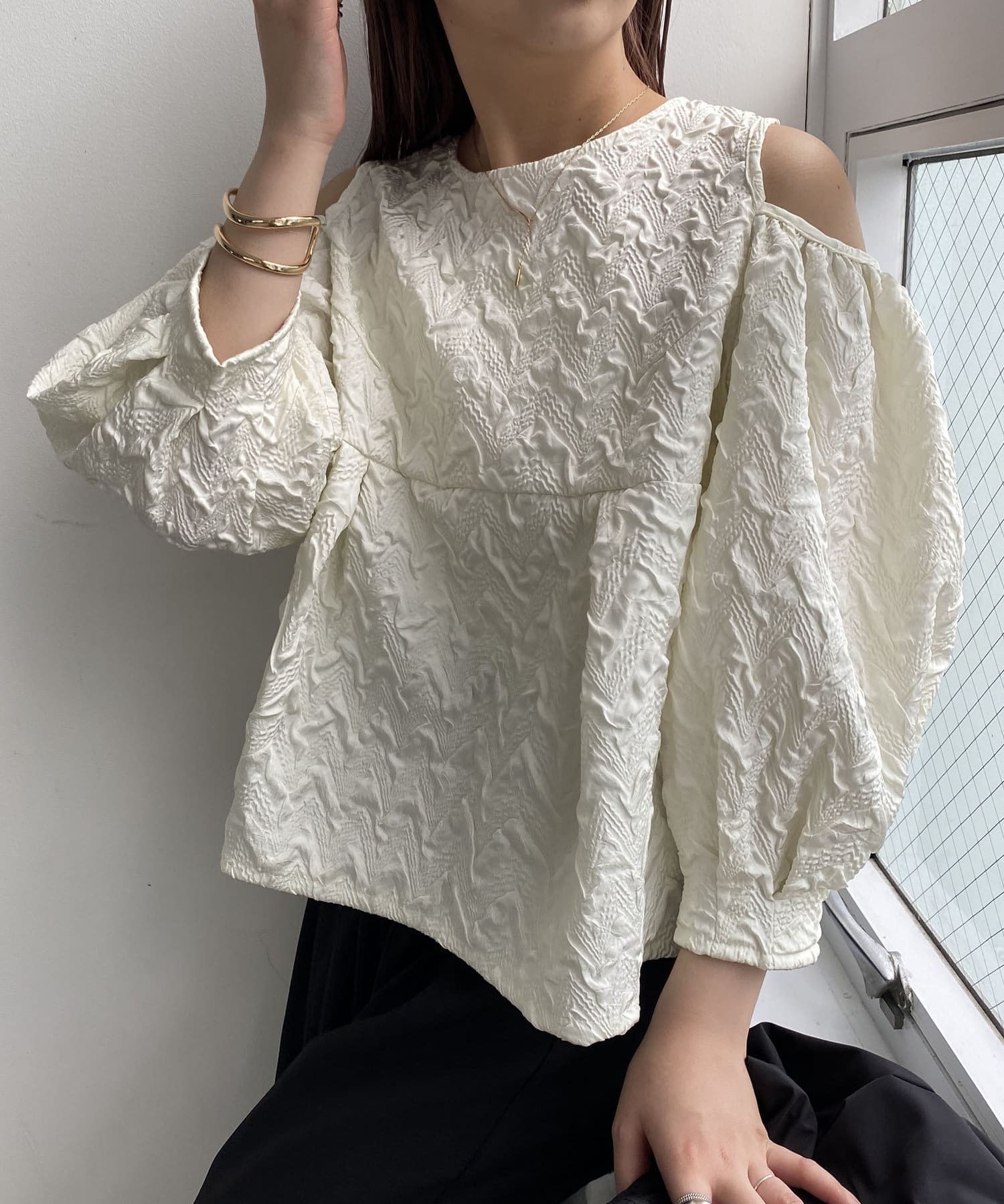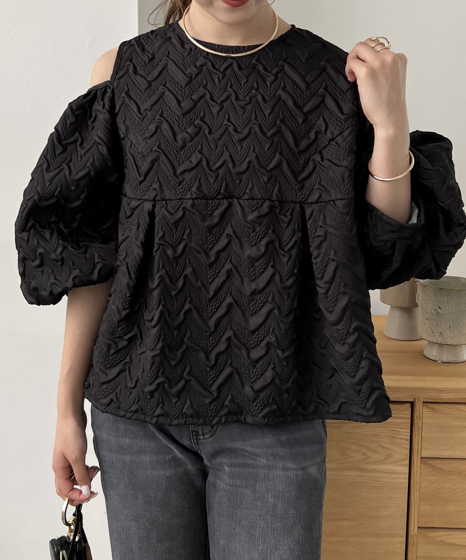 ふくれジャガードブラウス