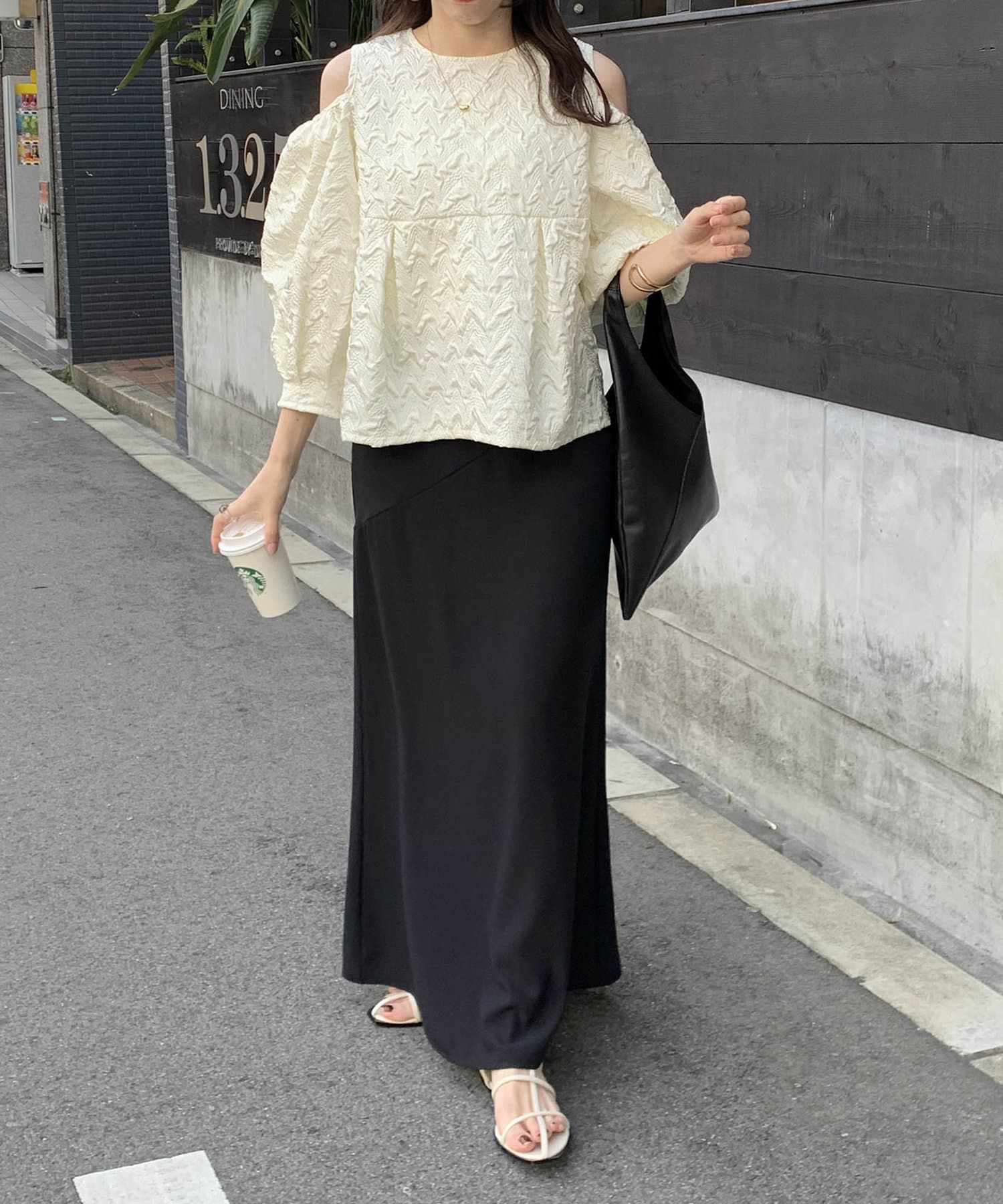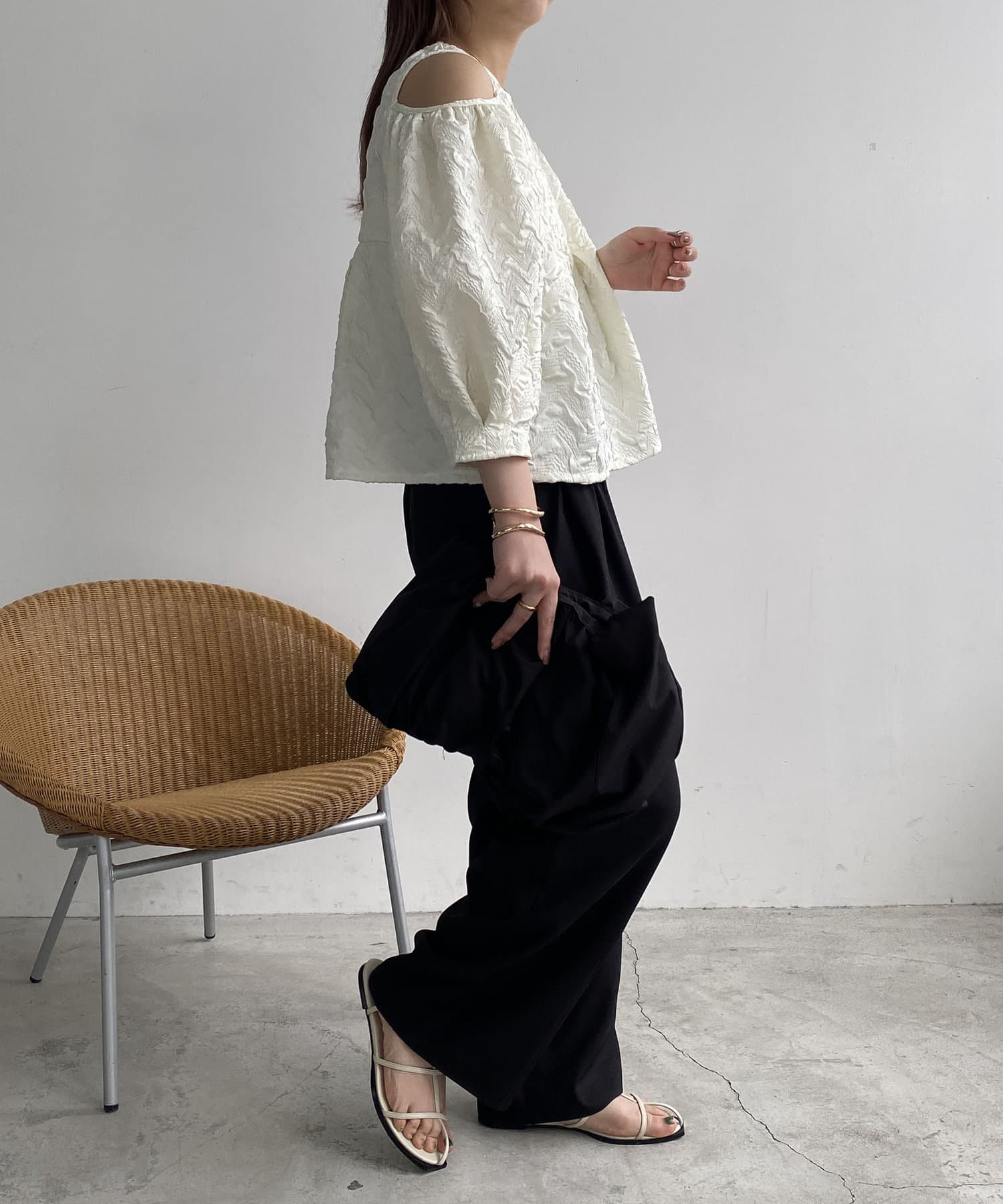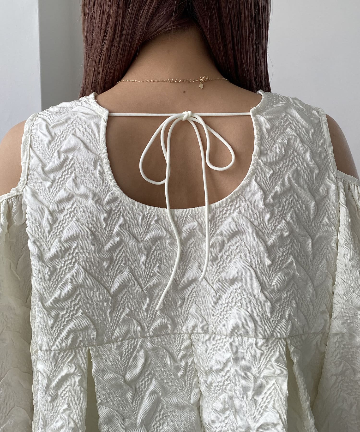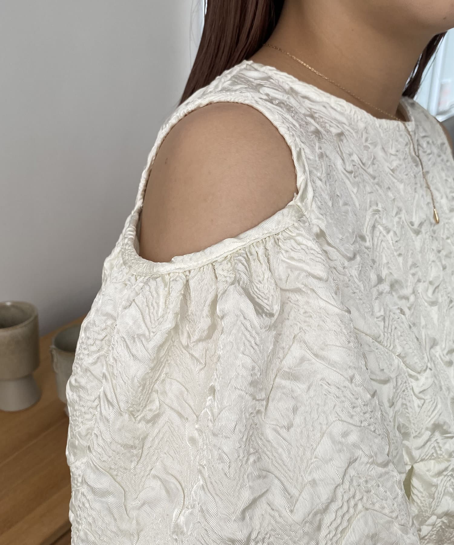 ・肩開きのデザインでさりげない肌見せ