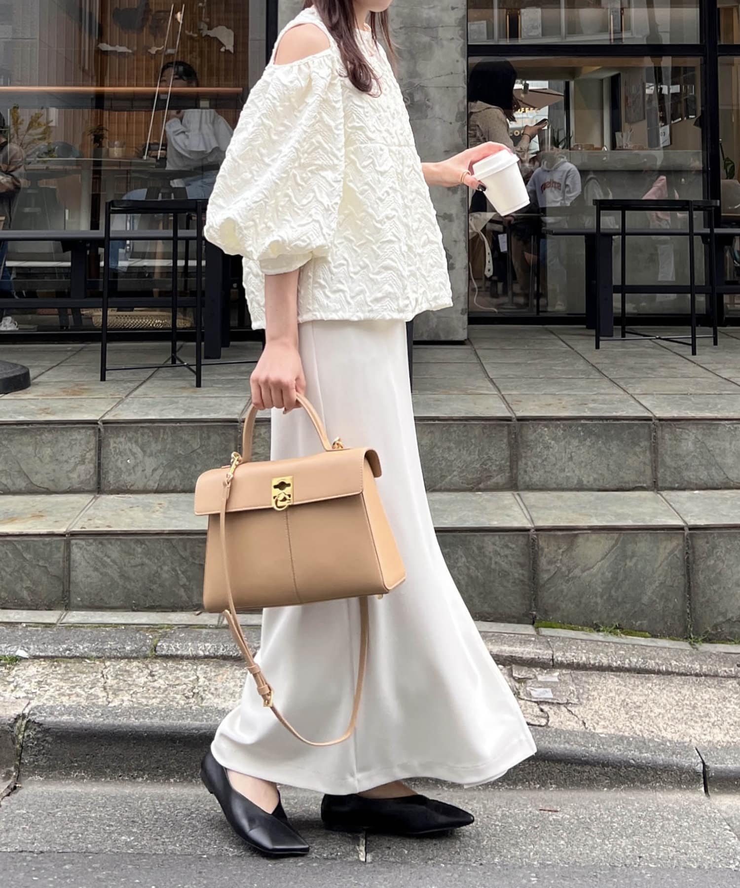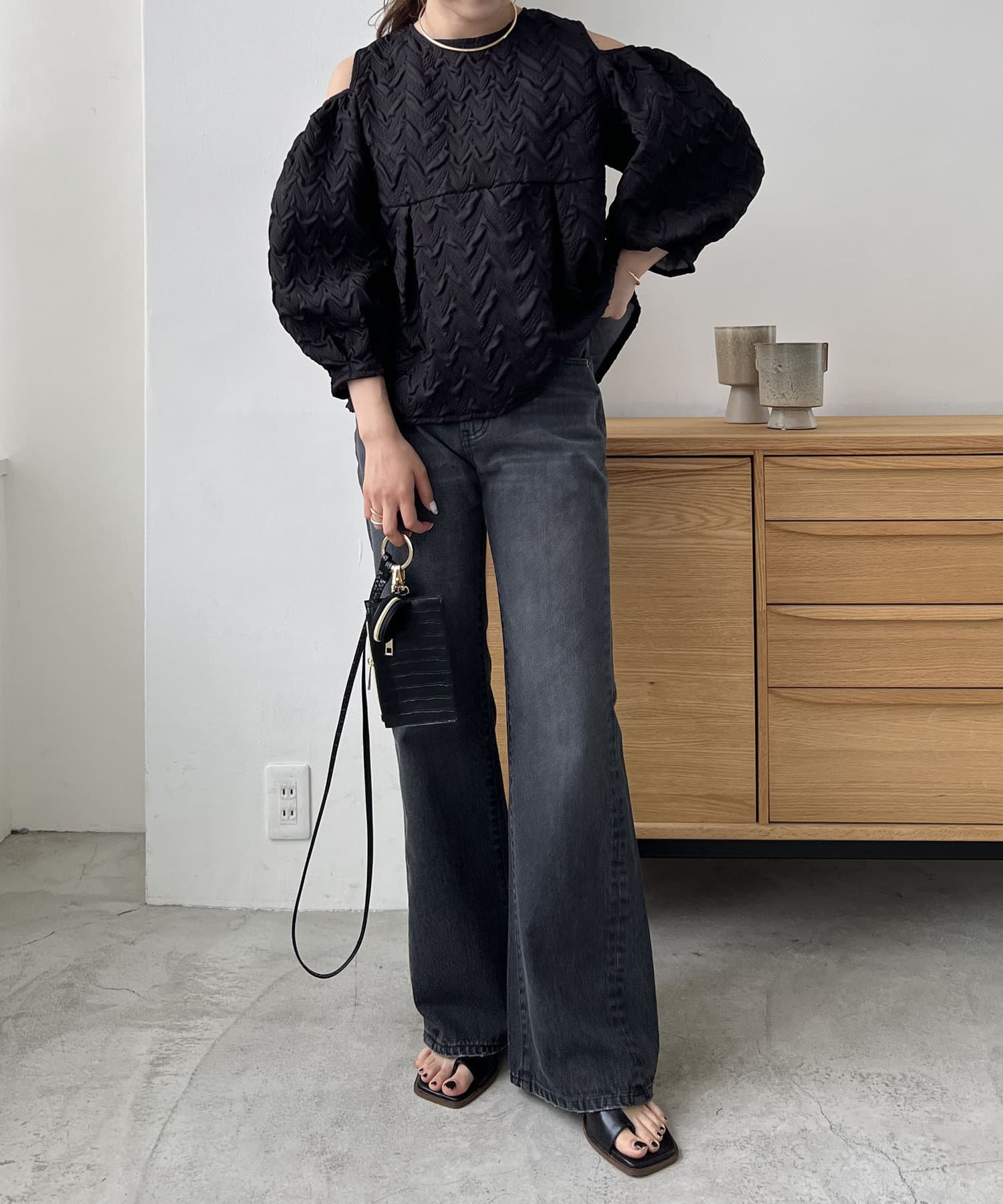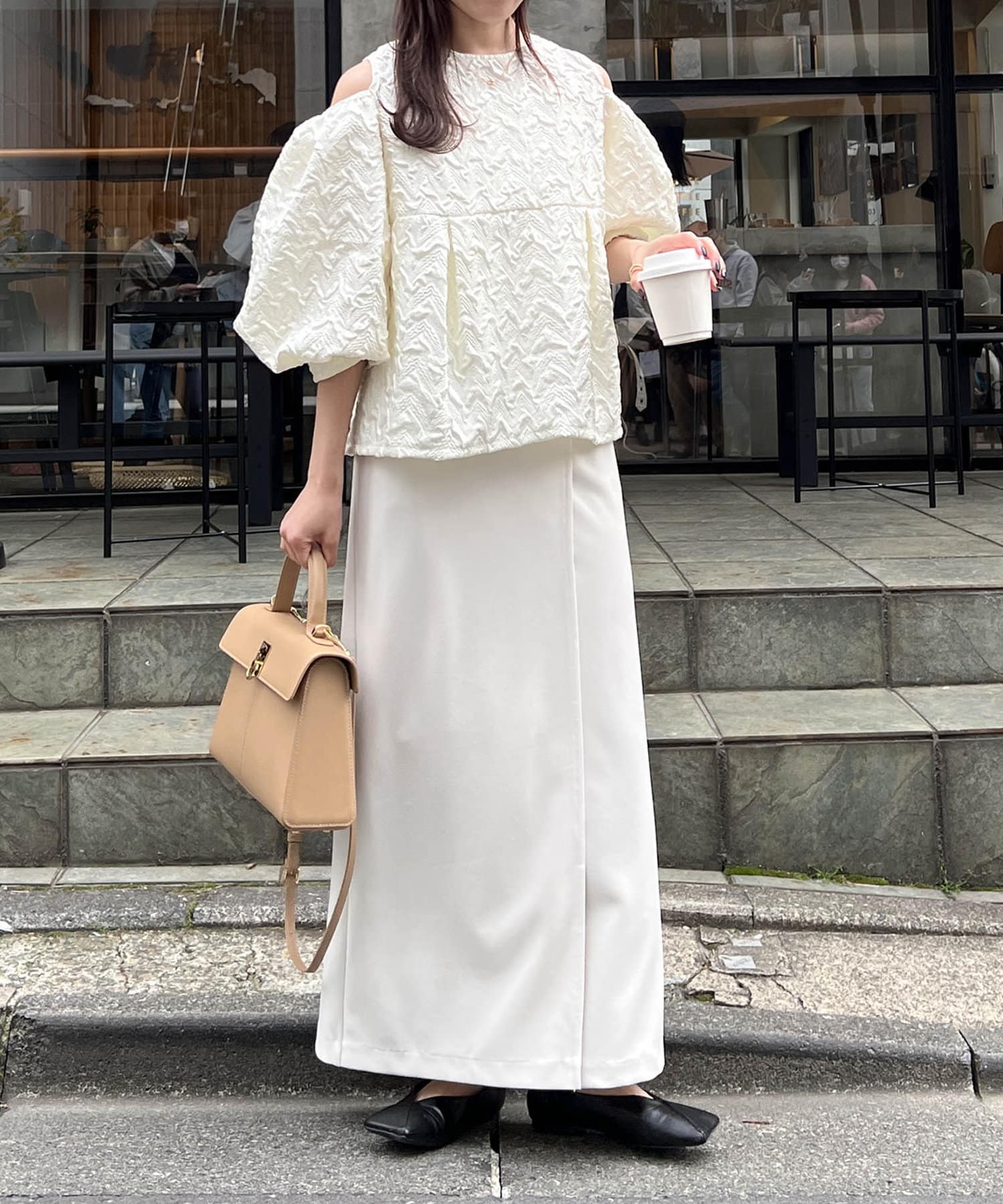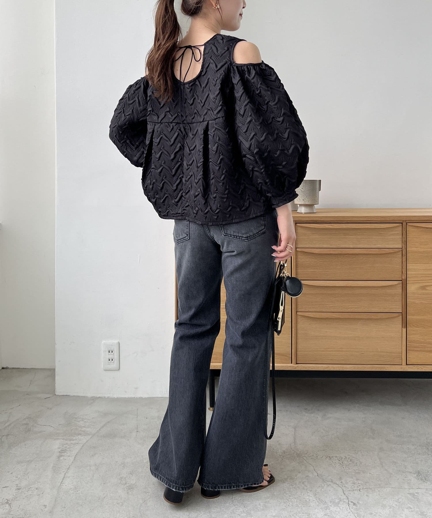 ・肩開きのデザインでさりげない肌見せ
