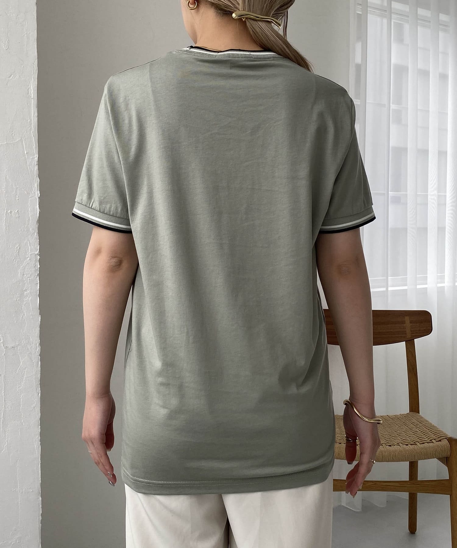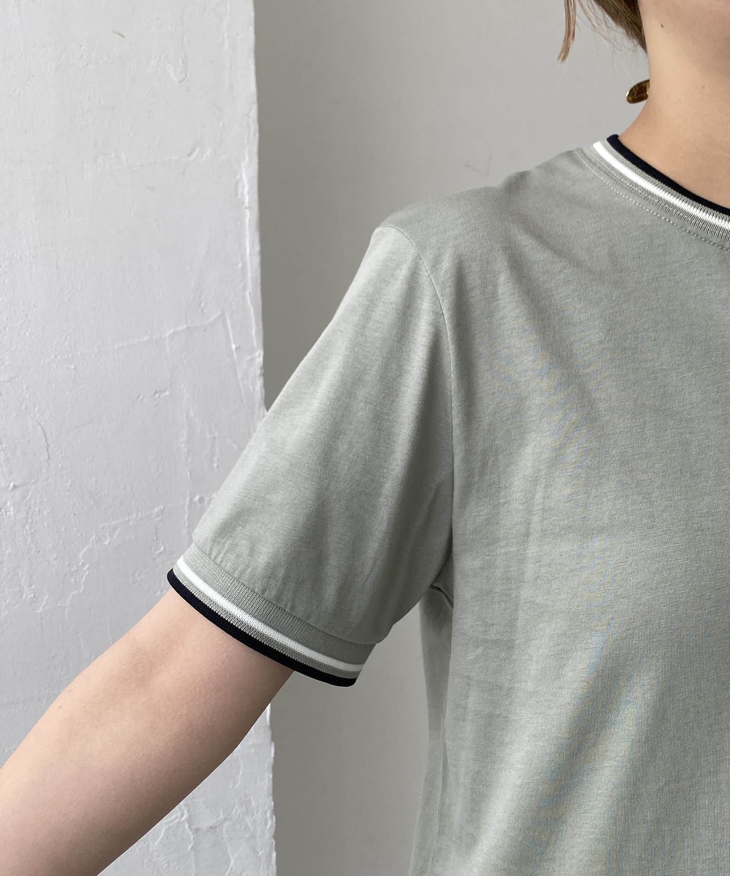 ・ティップラインをネックとカフにあしらったクルーネックTシャツ