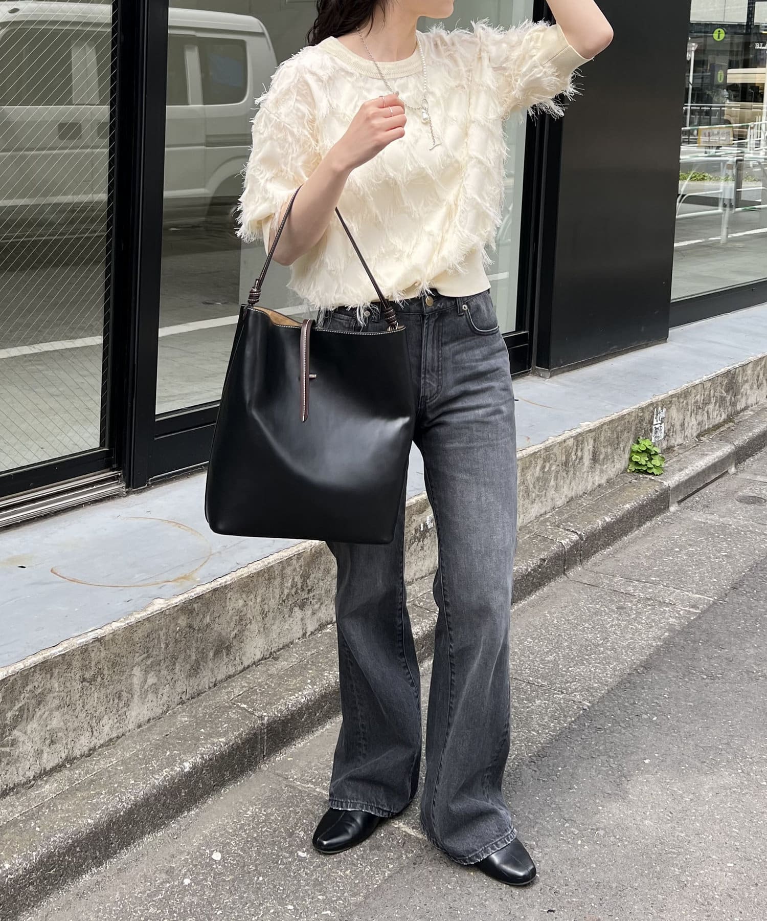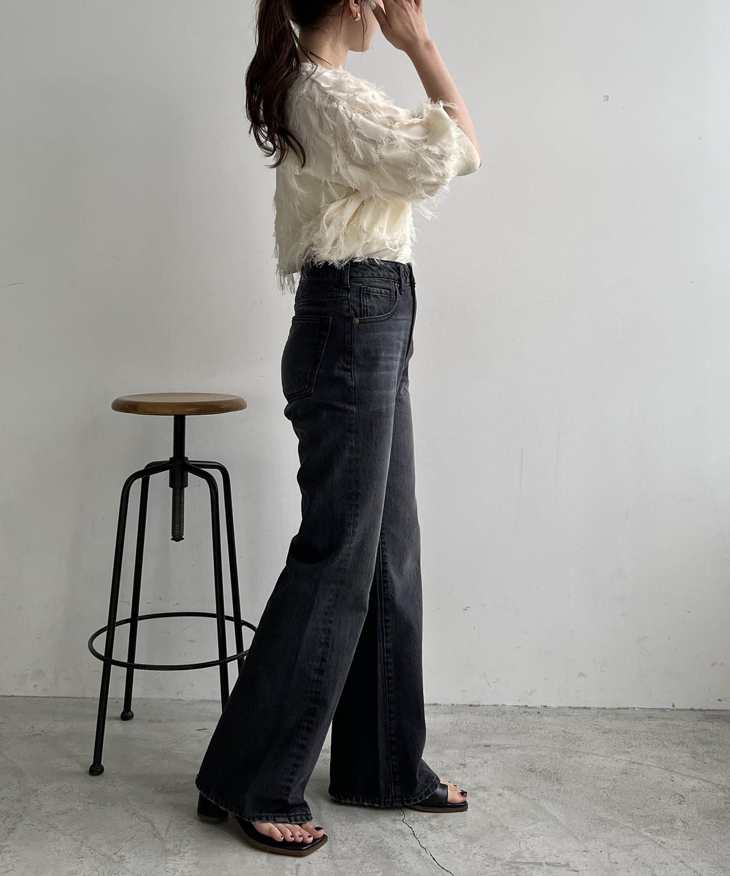 ・落ち感のあるストレートパンツ合わせの大人なスタイリングもおすすめ