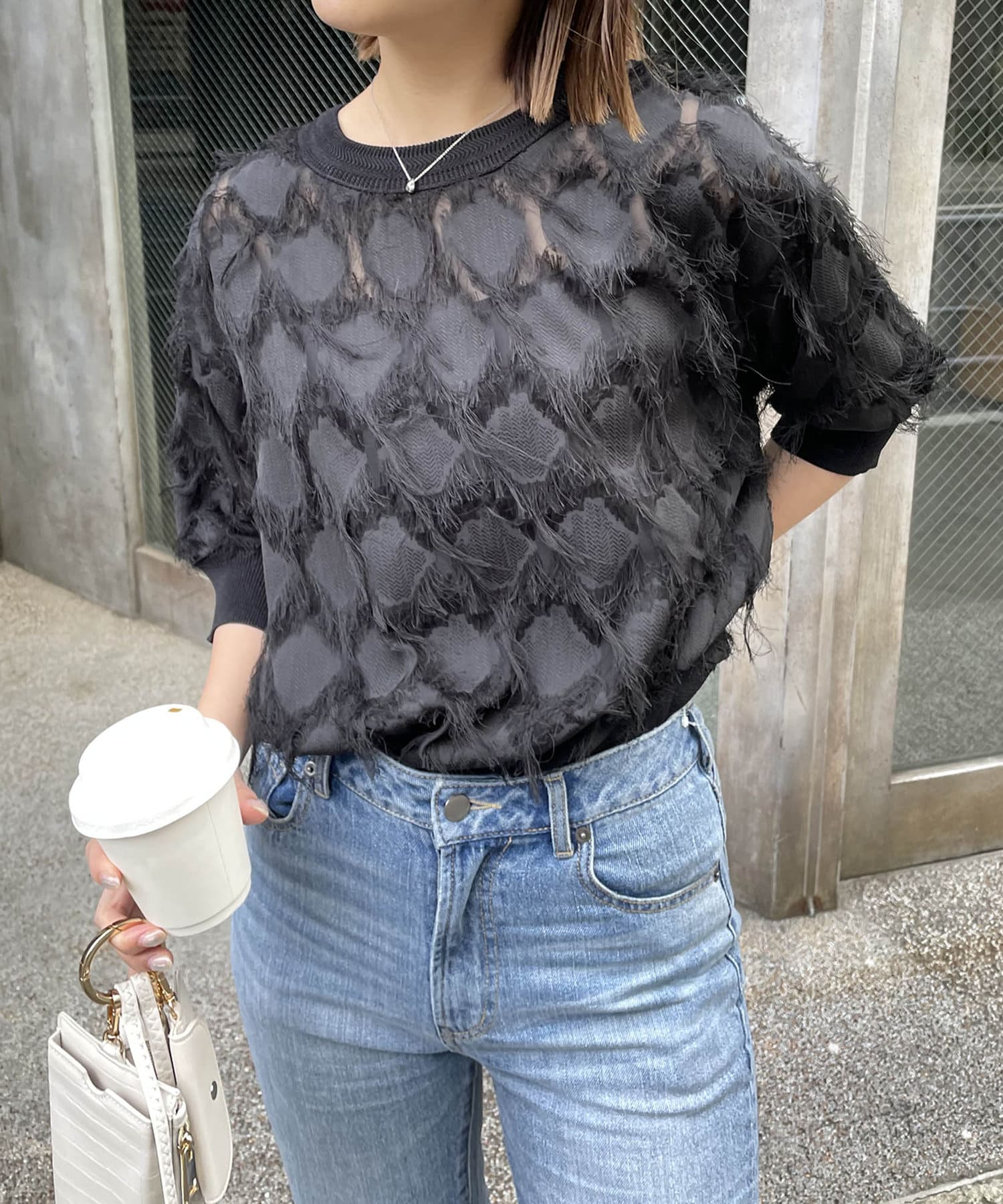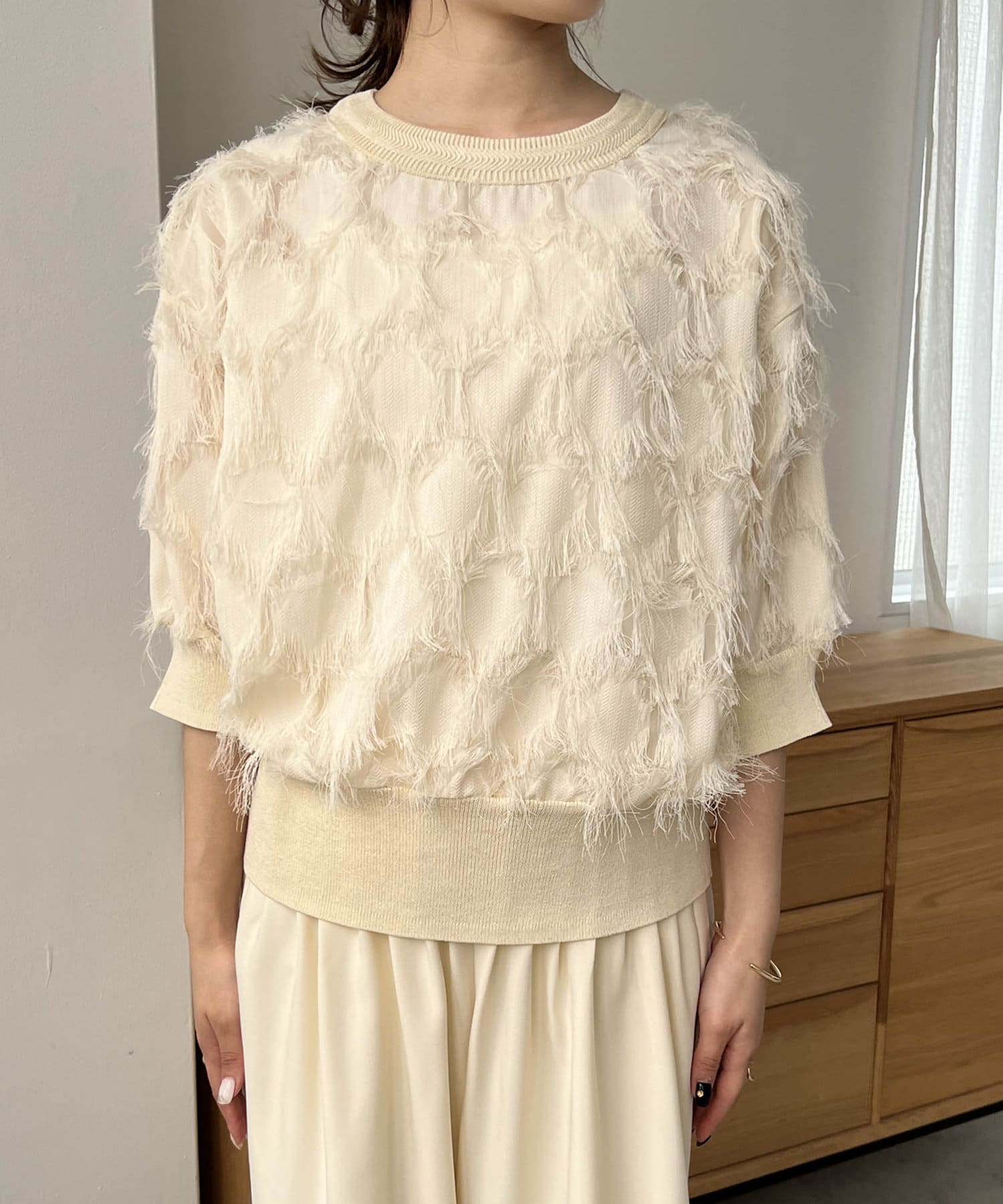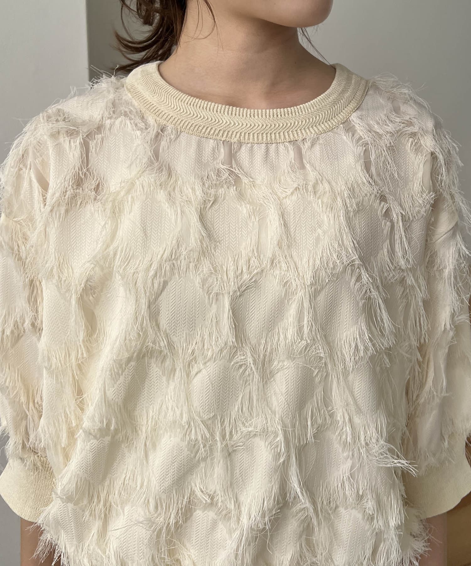 ・透け感のある生地にフリンジが施されたブラウス