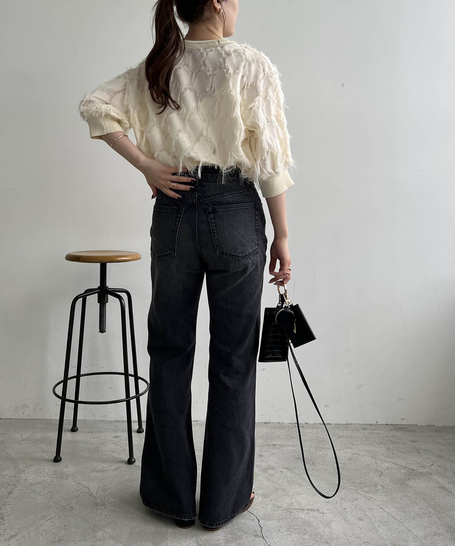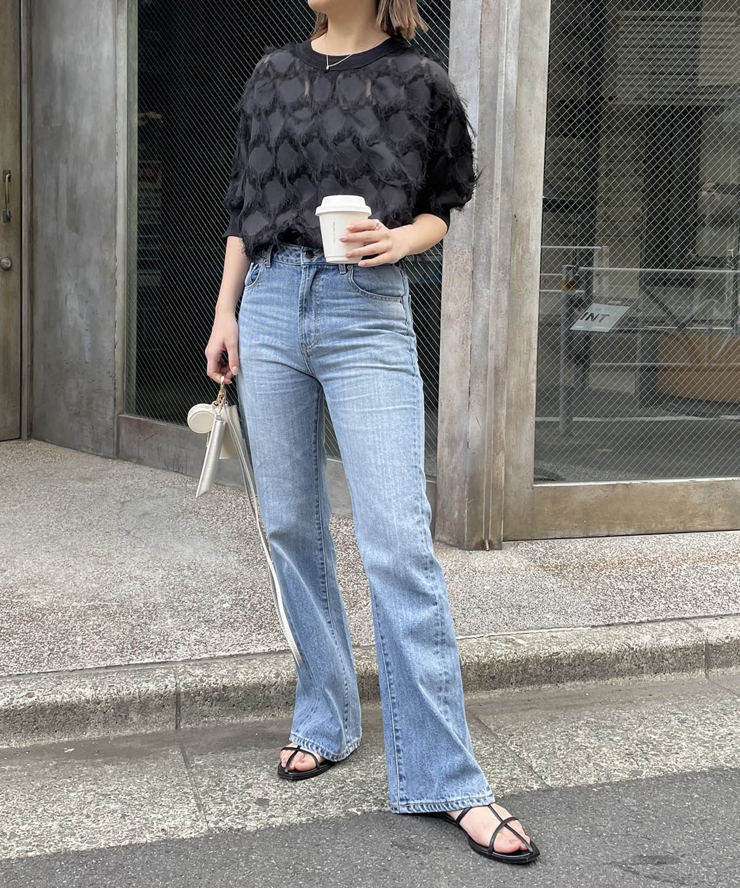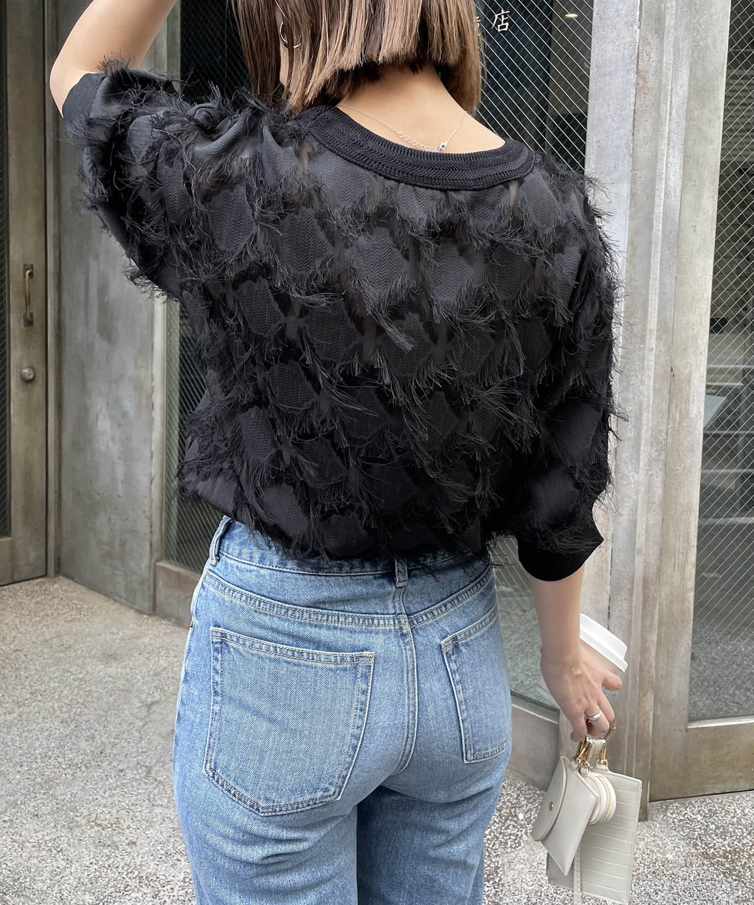 ・透け感のある生地にフリンジが施されたブラウス