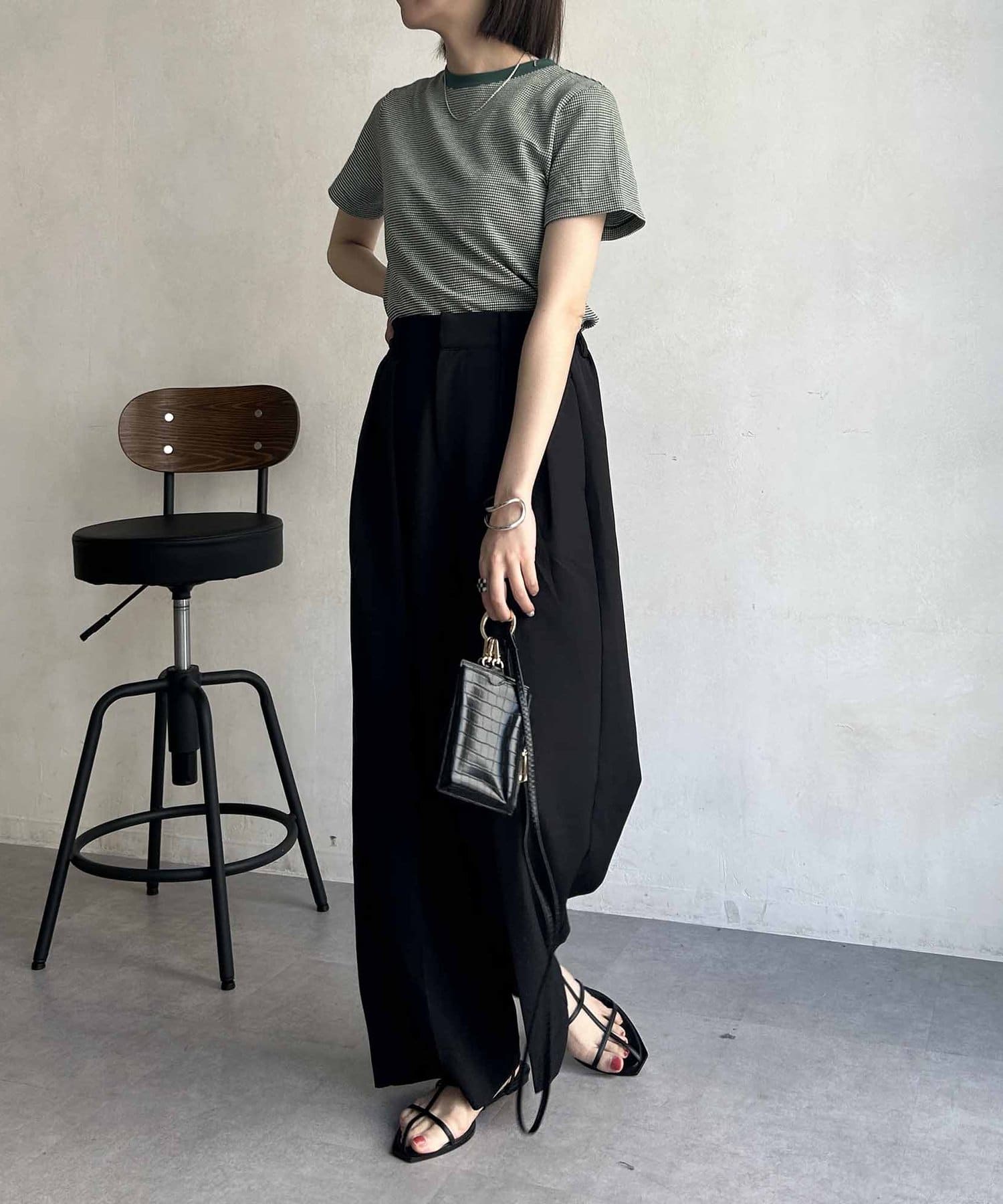 ・細かいチェック柄で主張しすぎず、どんなスタイリングにもマッチ