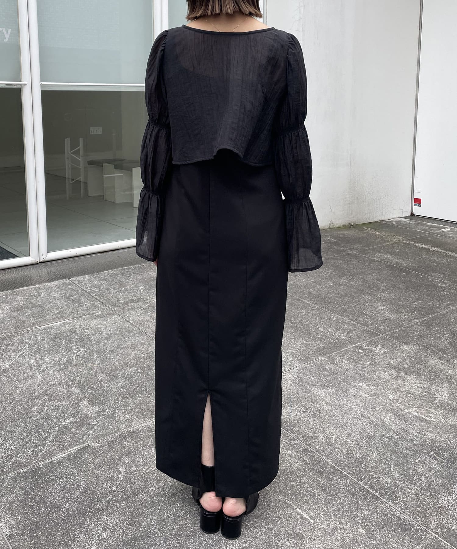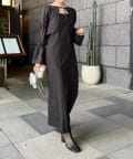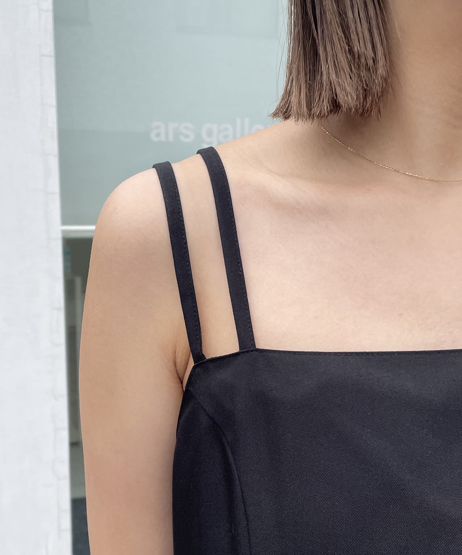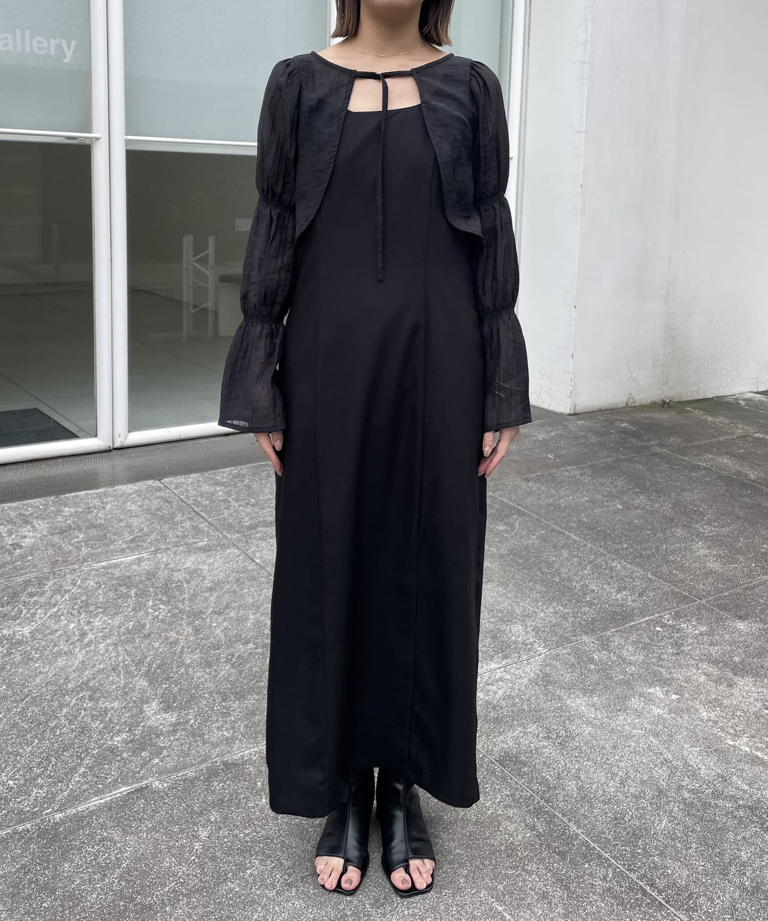 ・中のワンピースは肩紐がアシンメトリーで個性的なデザイン