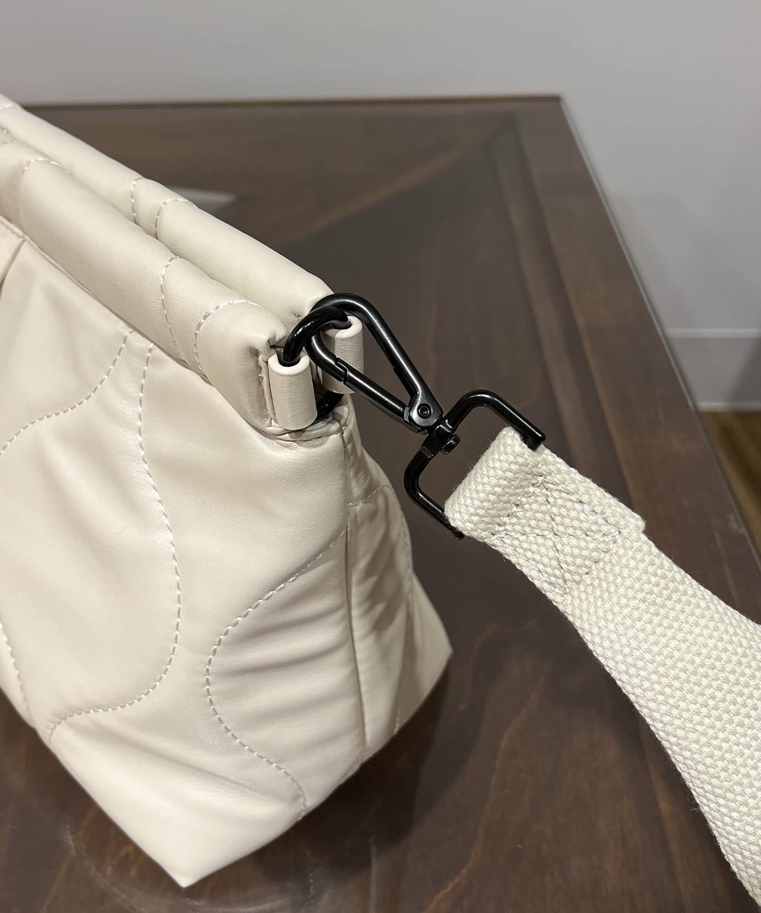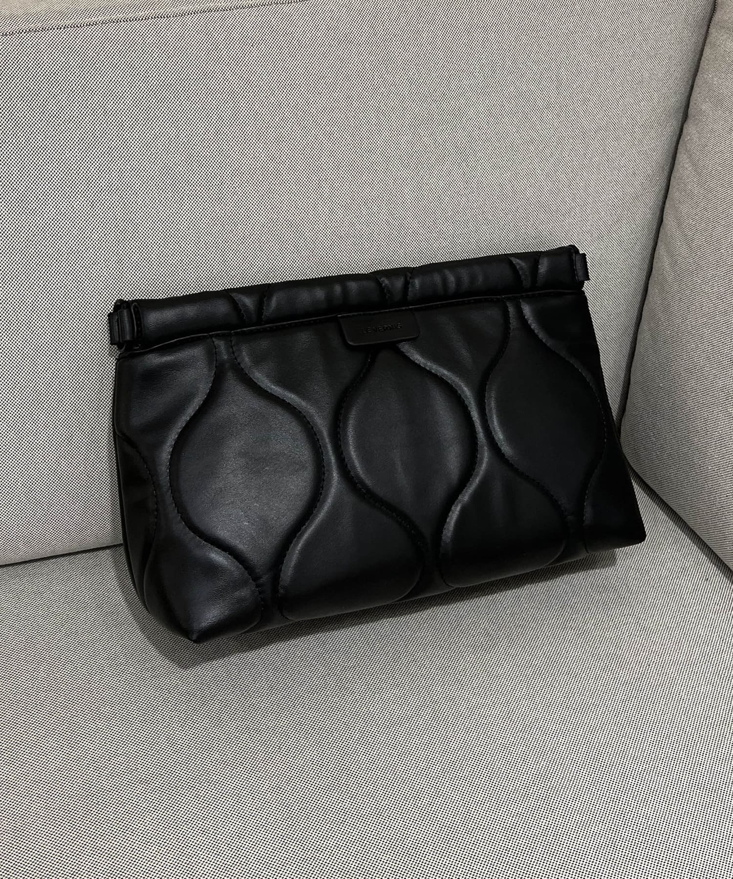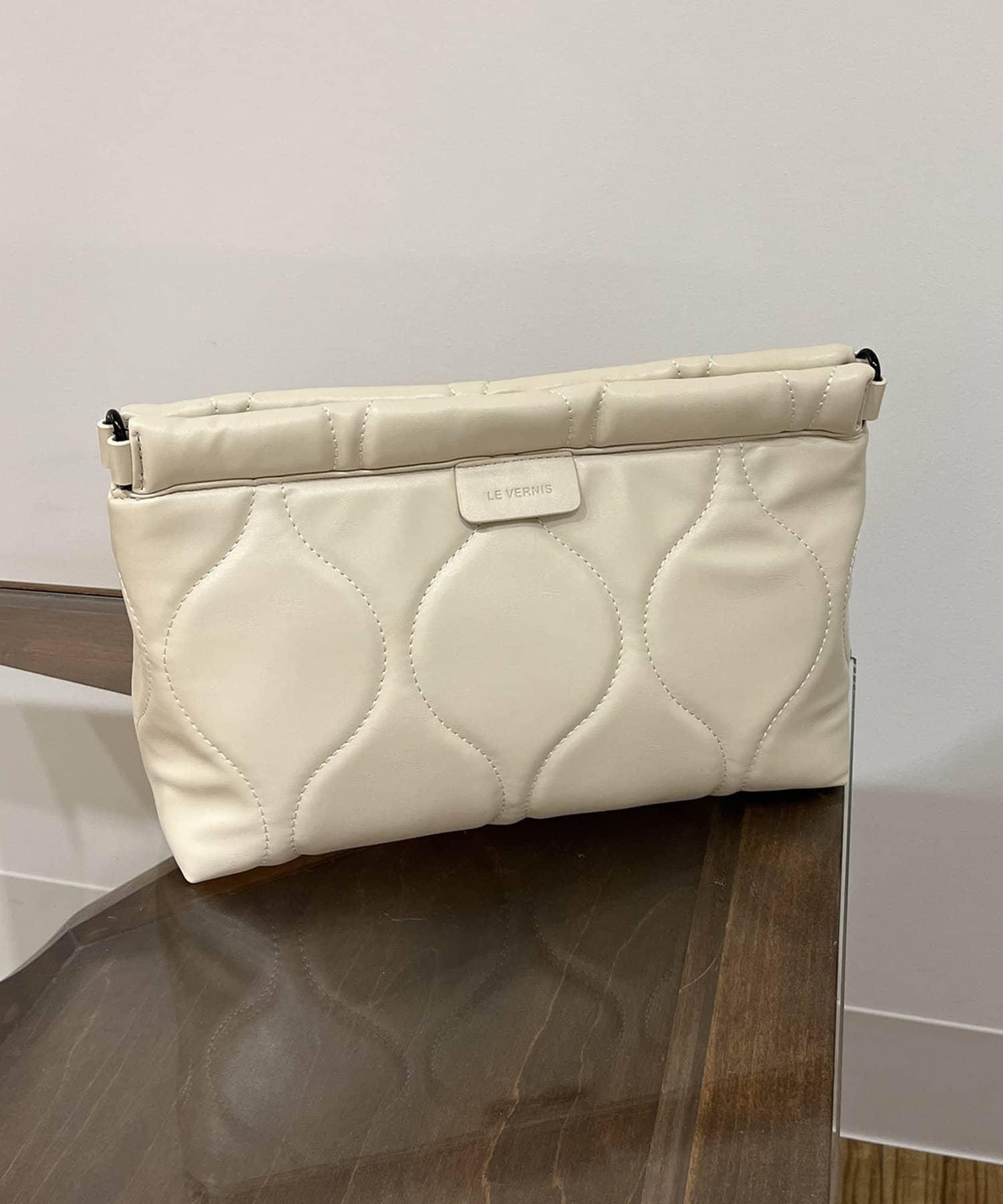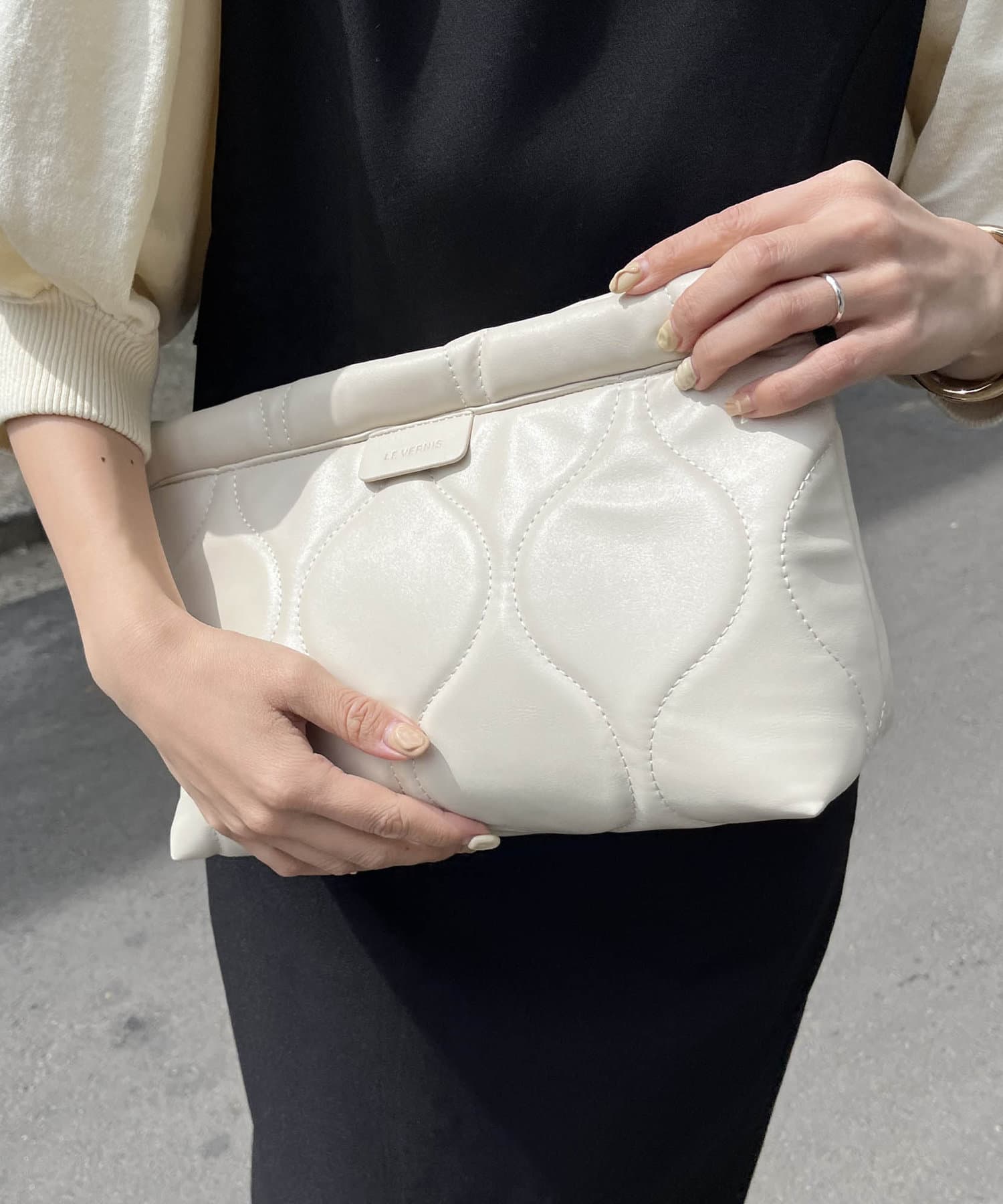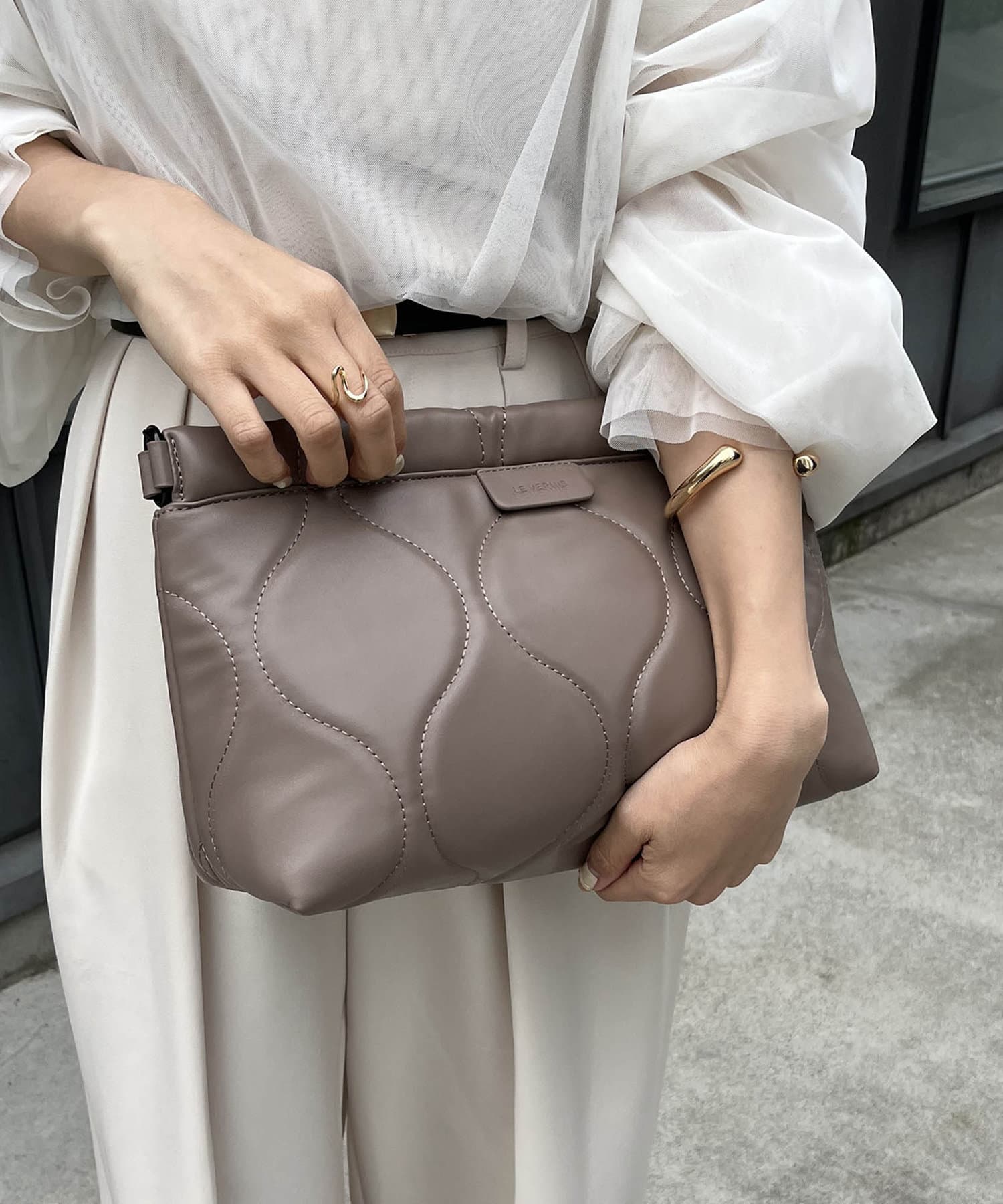 印象的な曲線を描くキルティングがポイントのクラッチバッグ