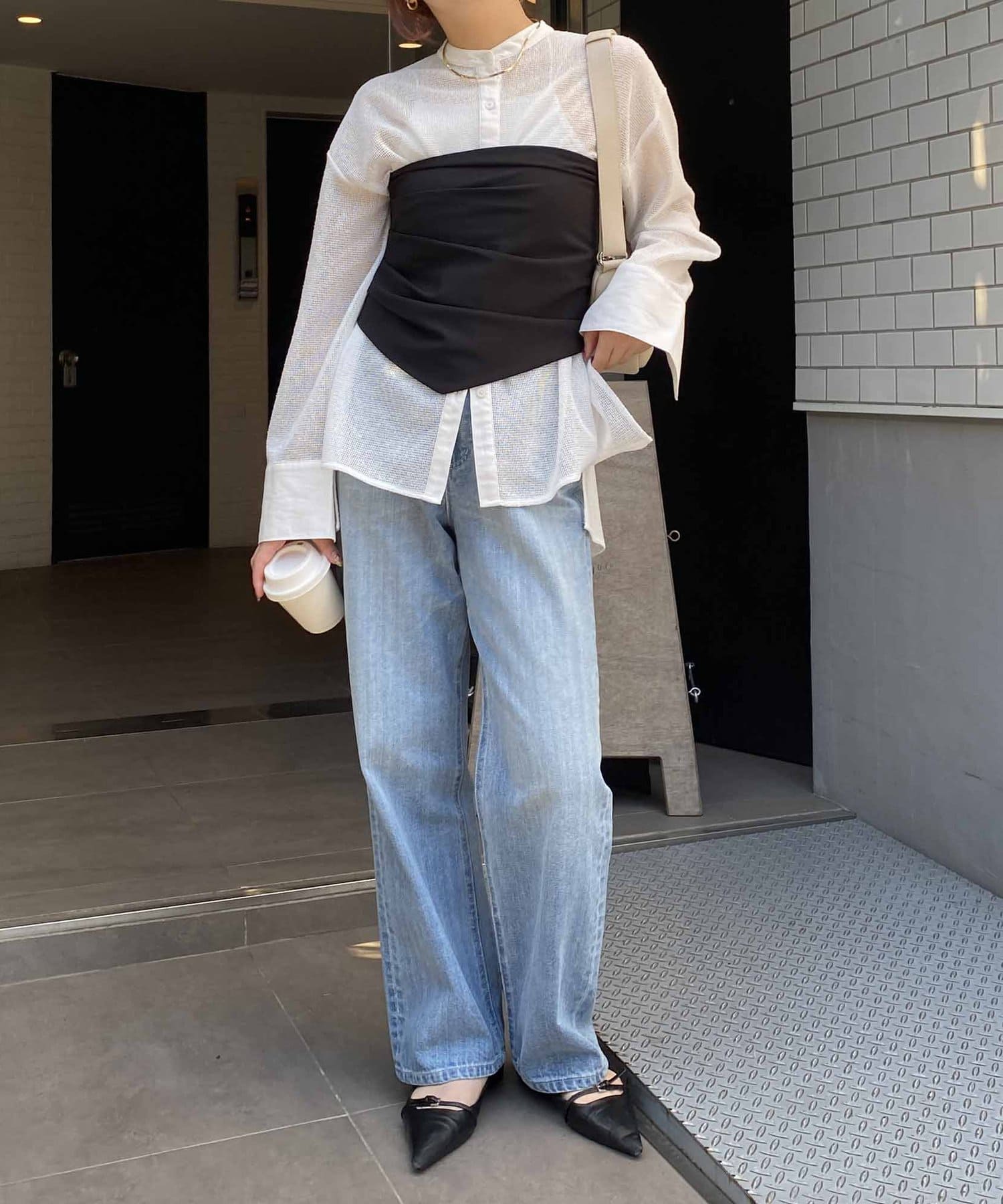 ・ギャザースリーブボレロに合わせるとスタイルアップコーデが完成