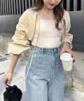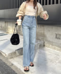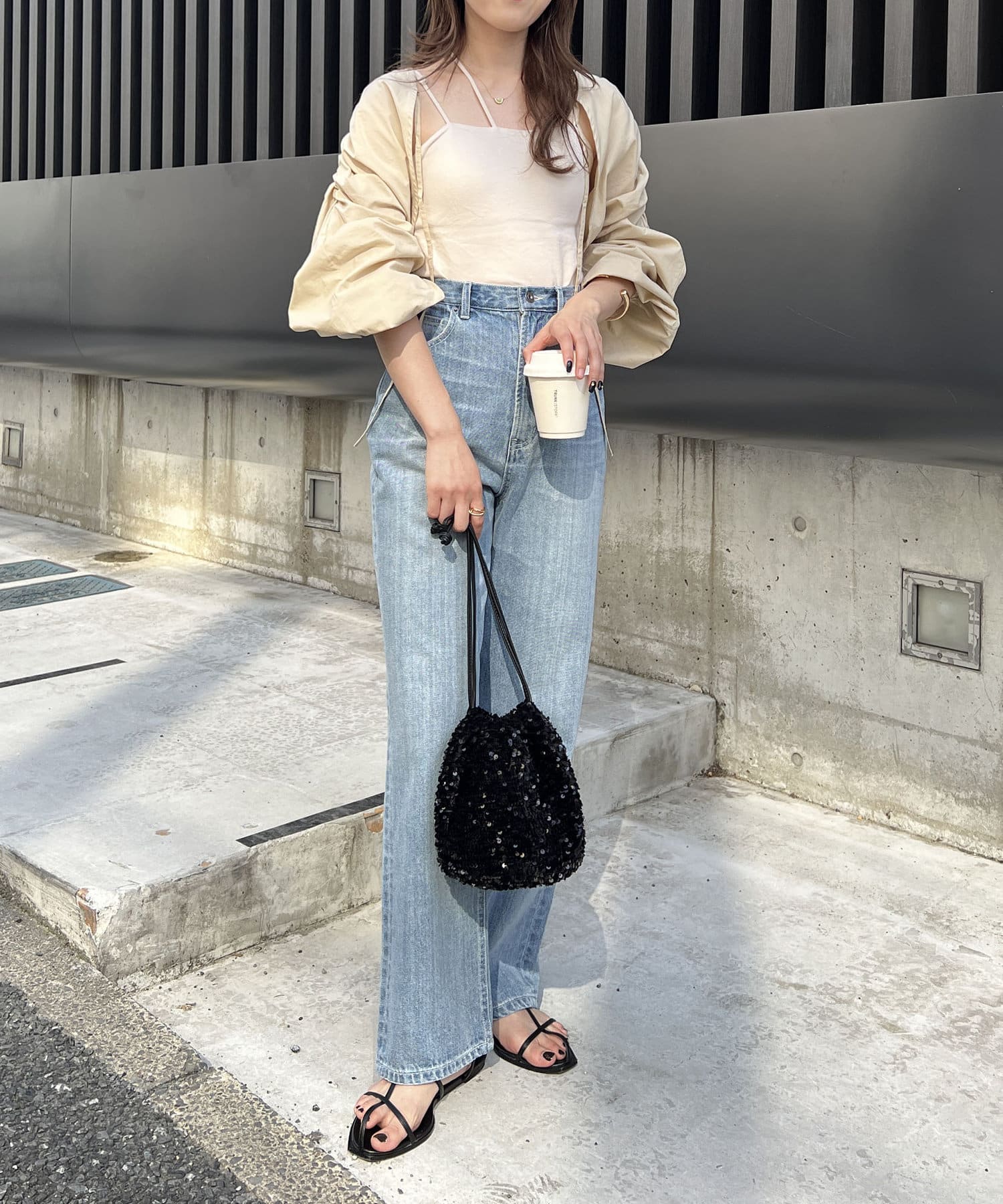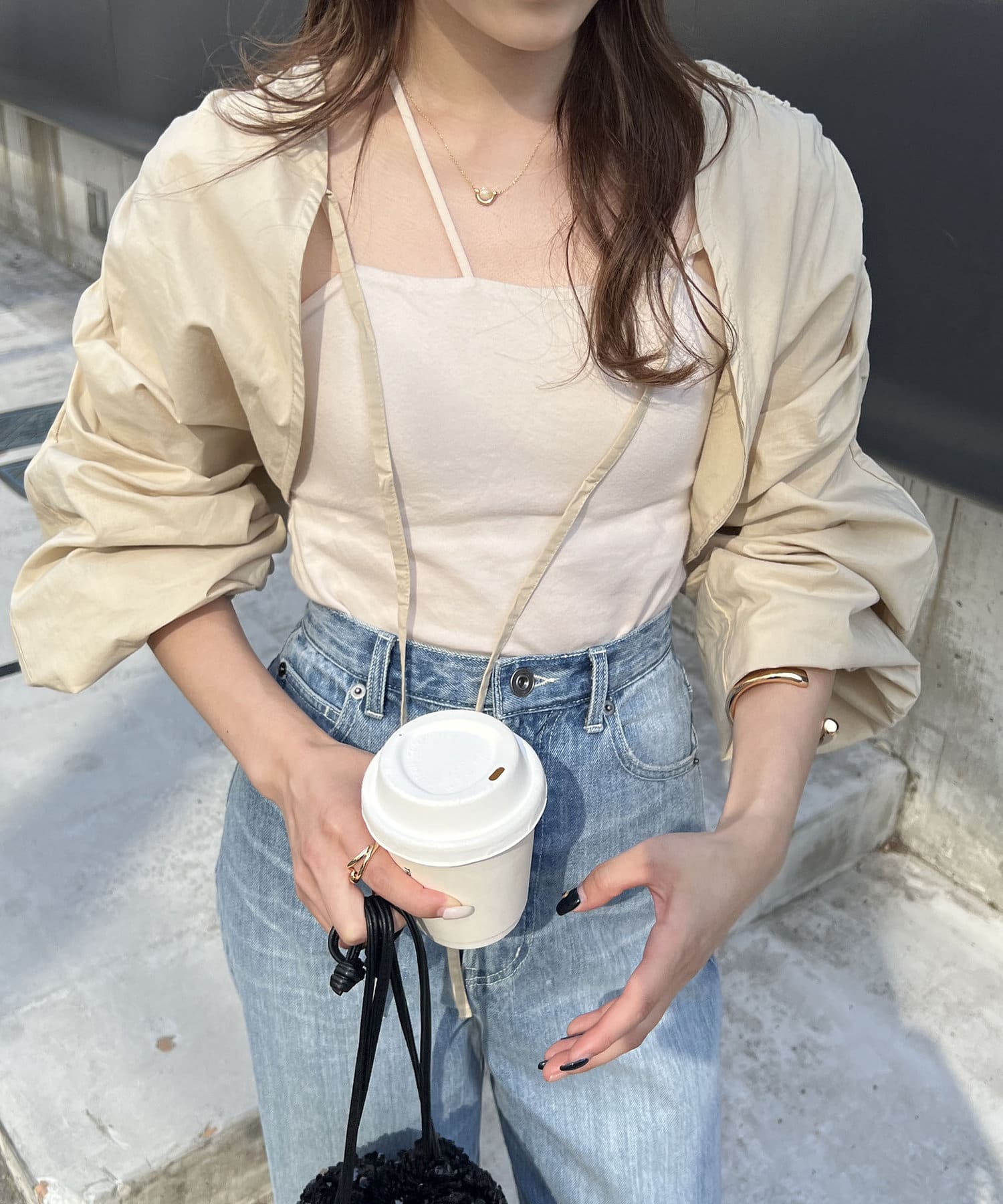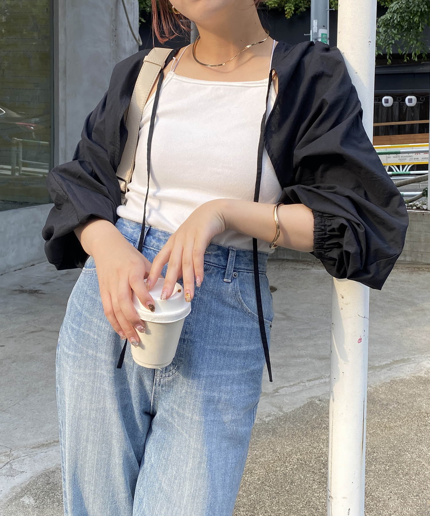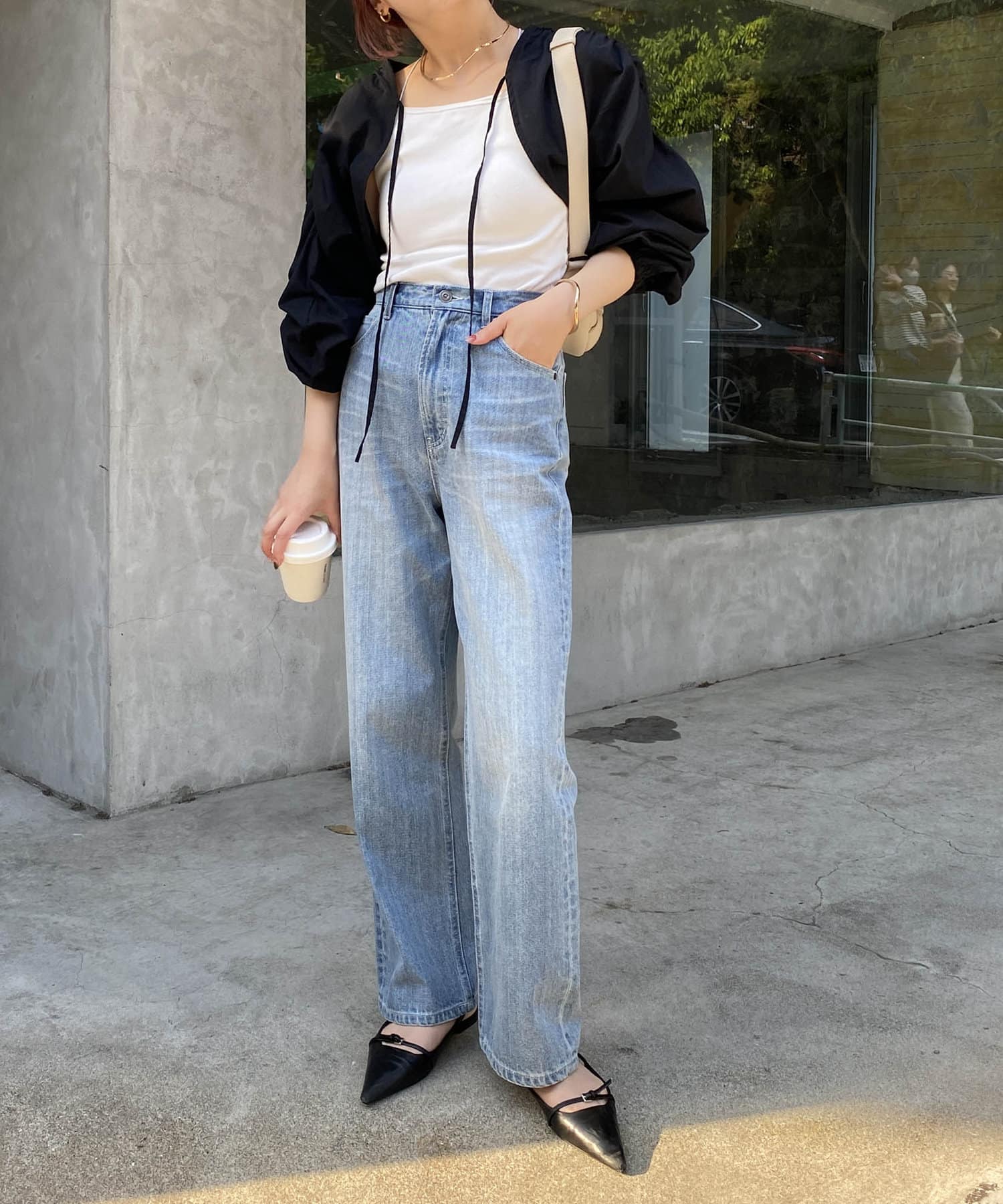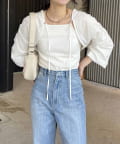 ・キャミにハイウエストストレートデニムを合わせその上に羽織ってカジュアルに