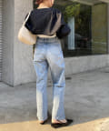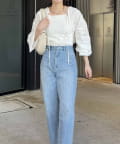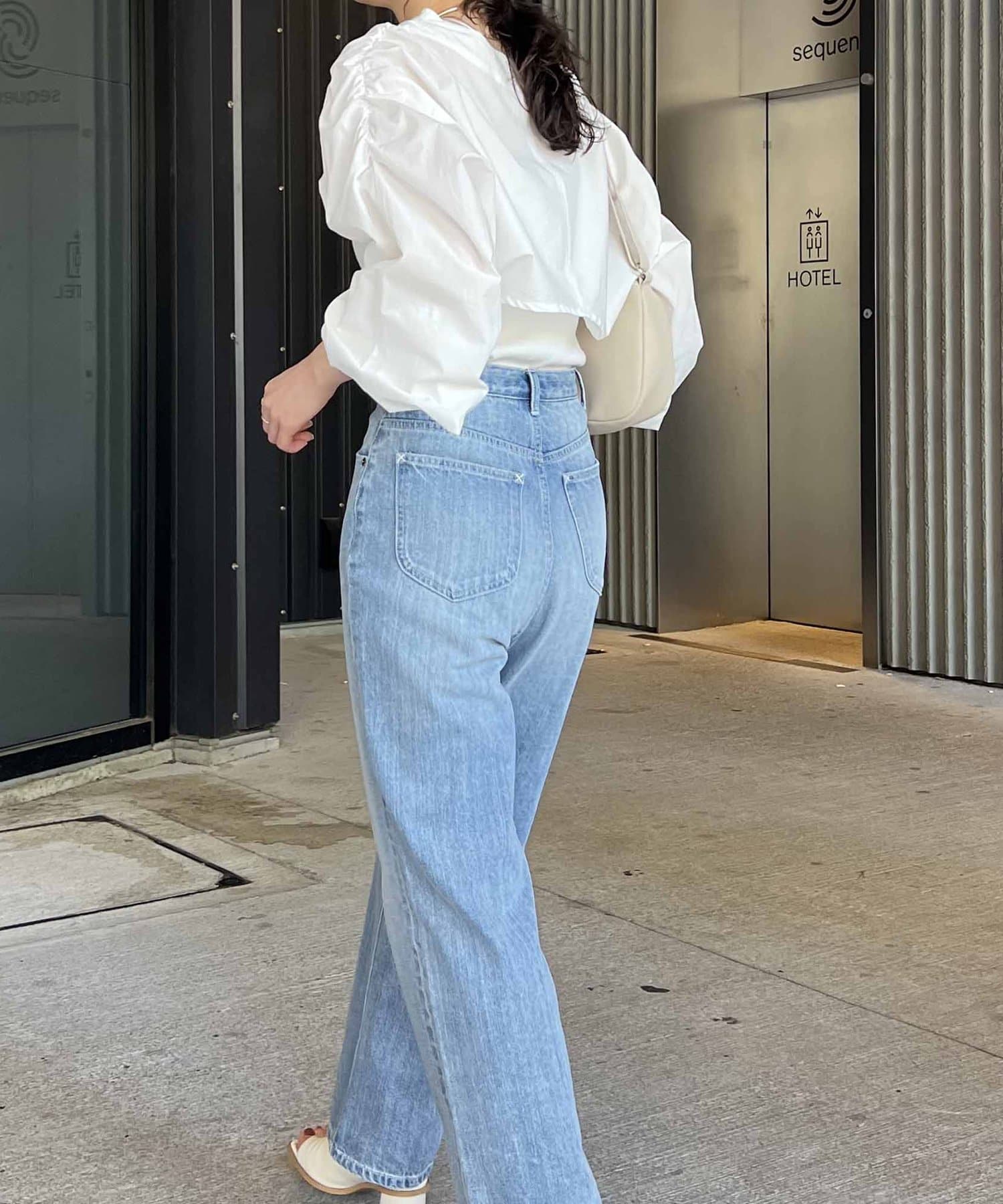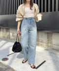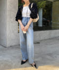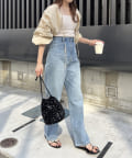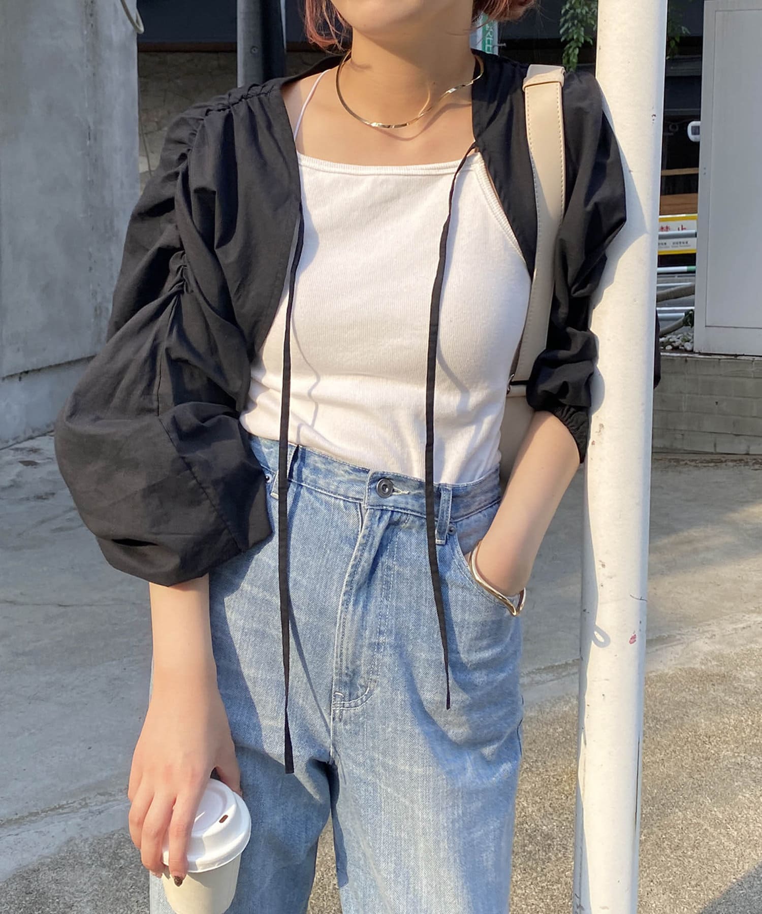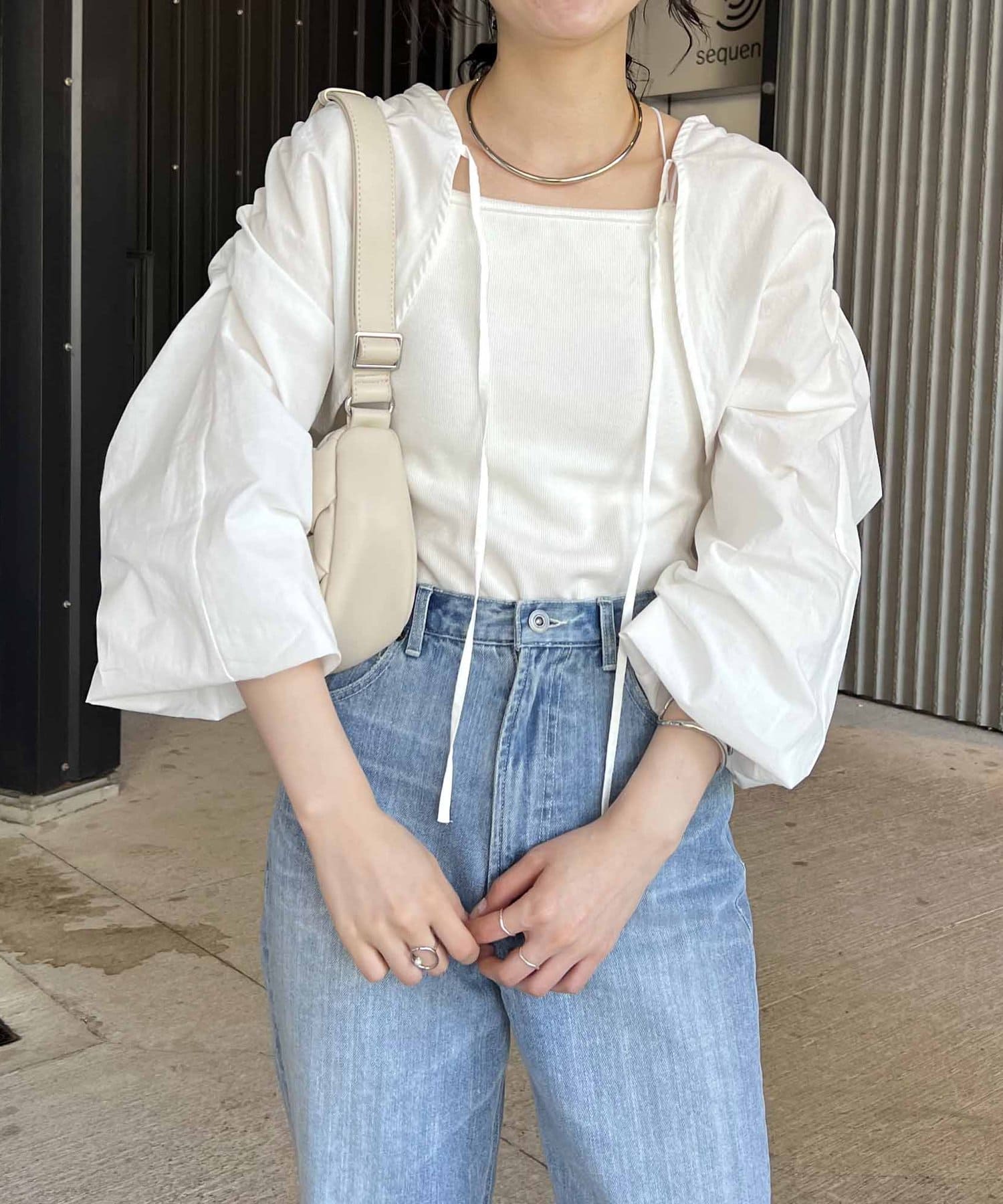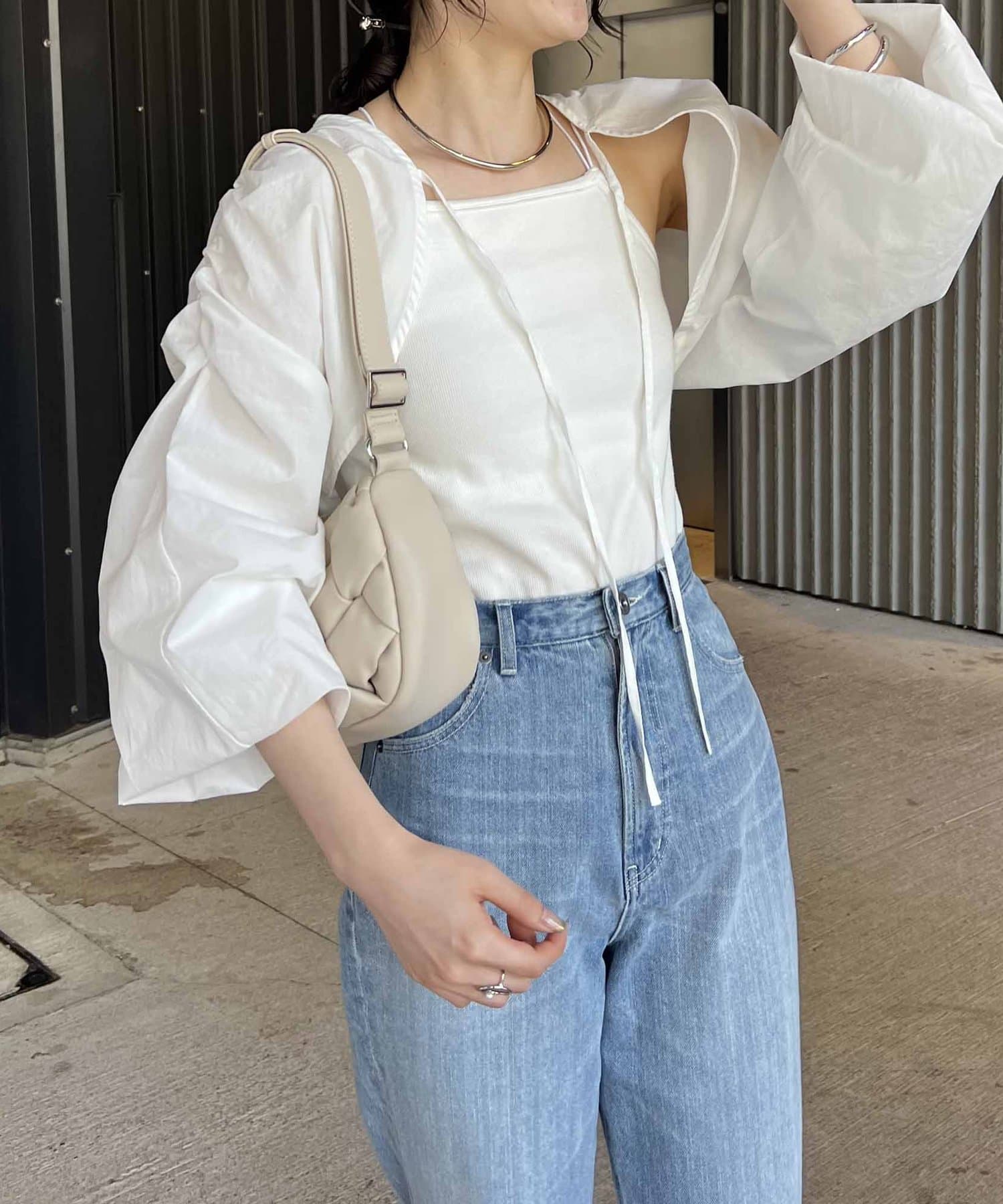 ・キャミにハイウエストストレートデニムを合わせその上に羽織ってカジュアルに