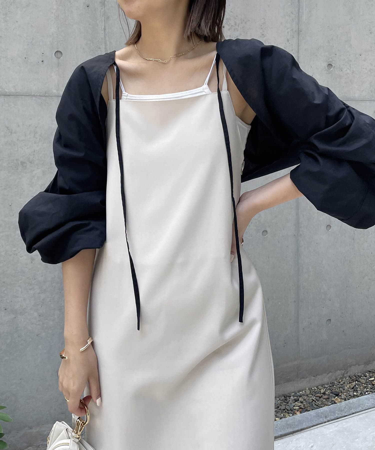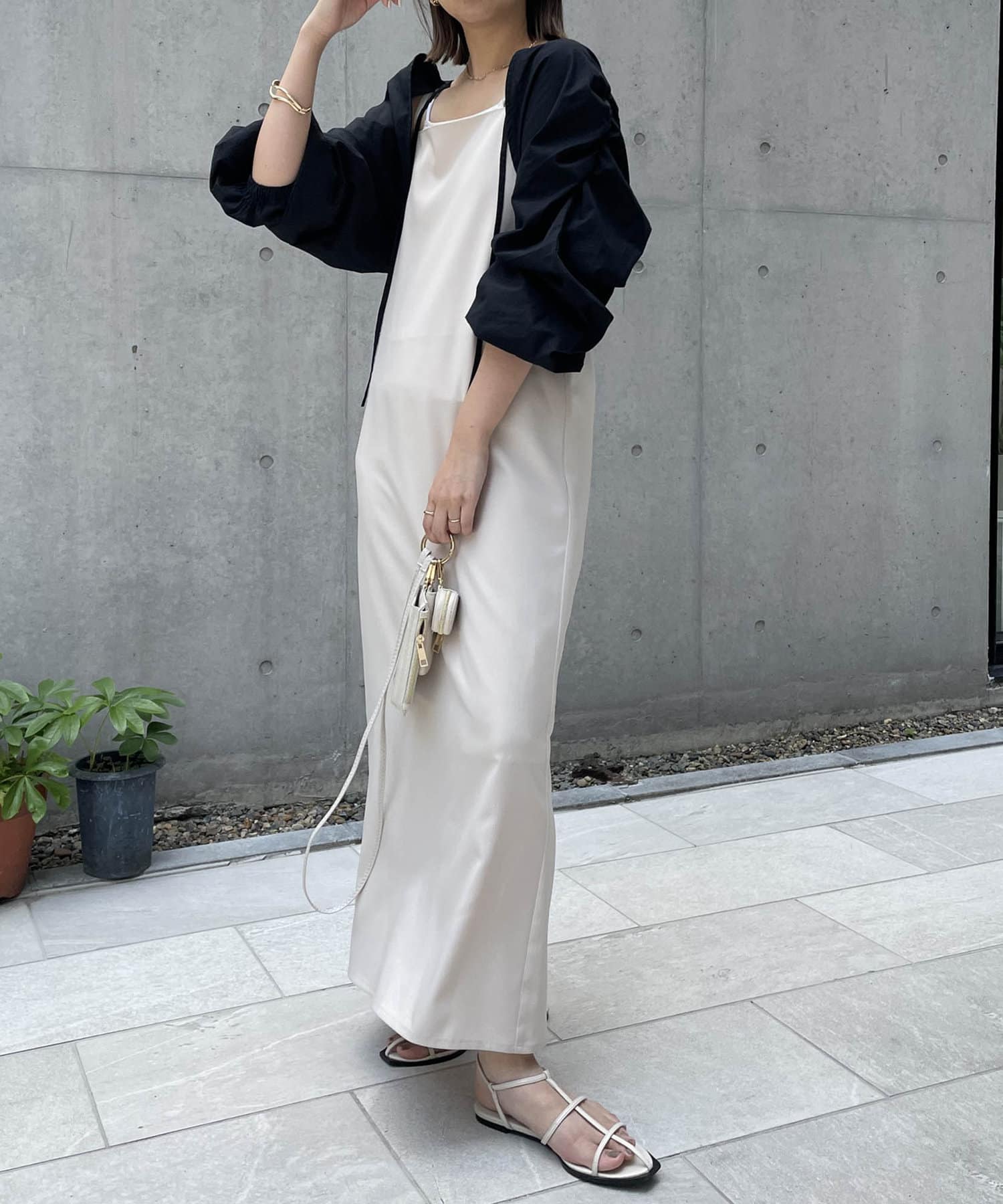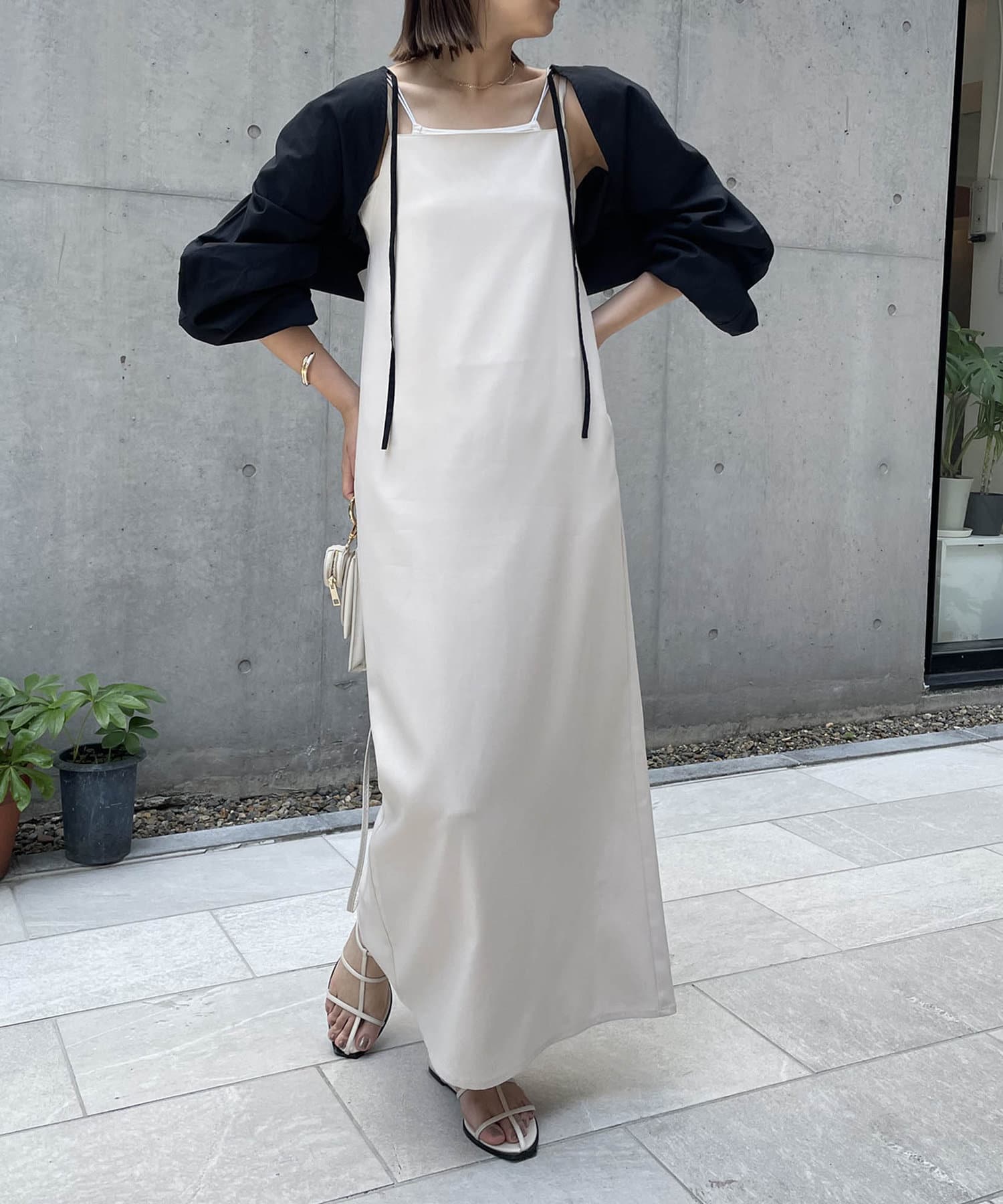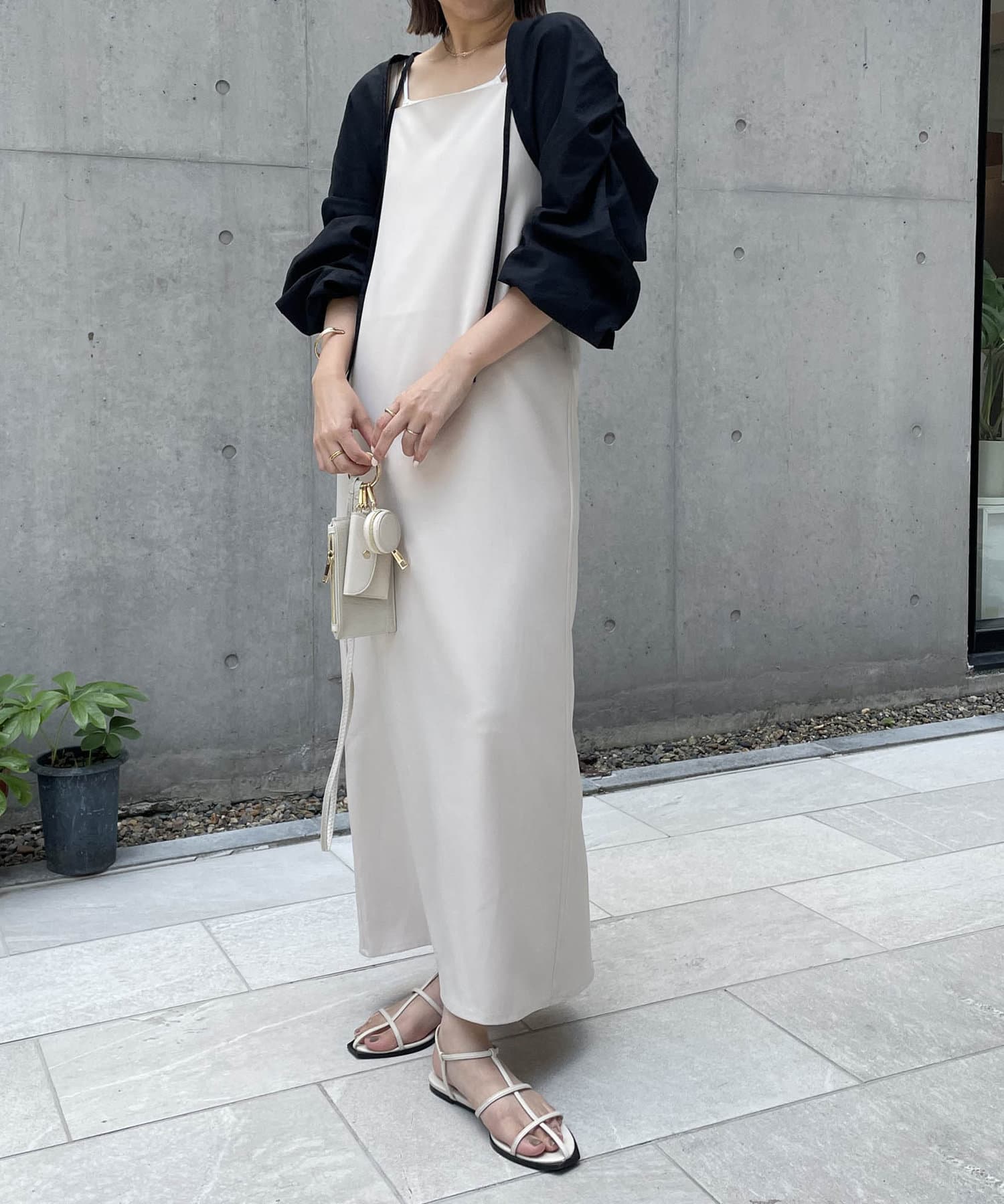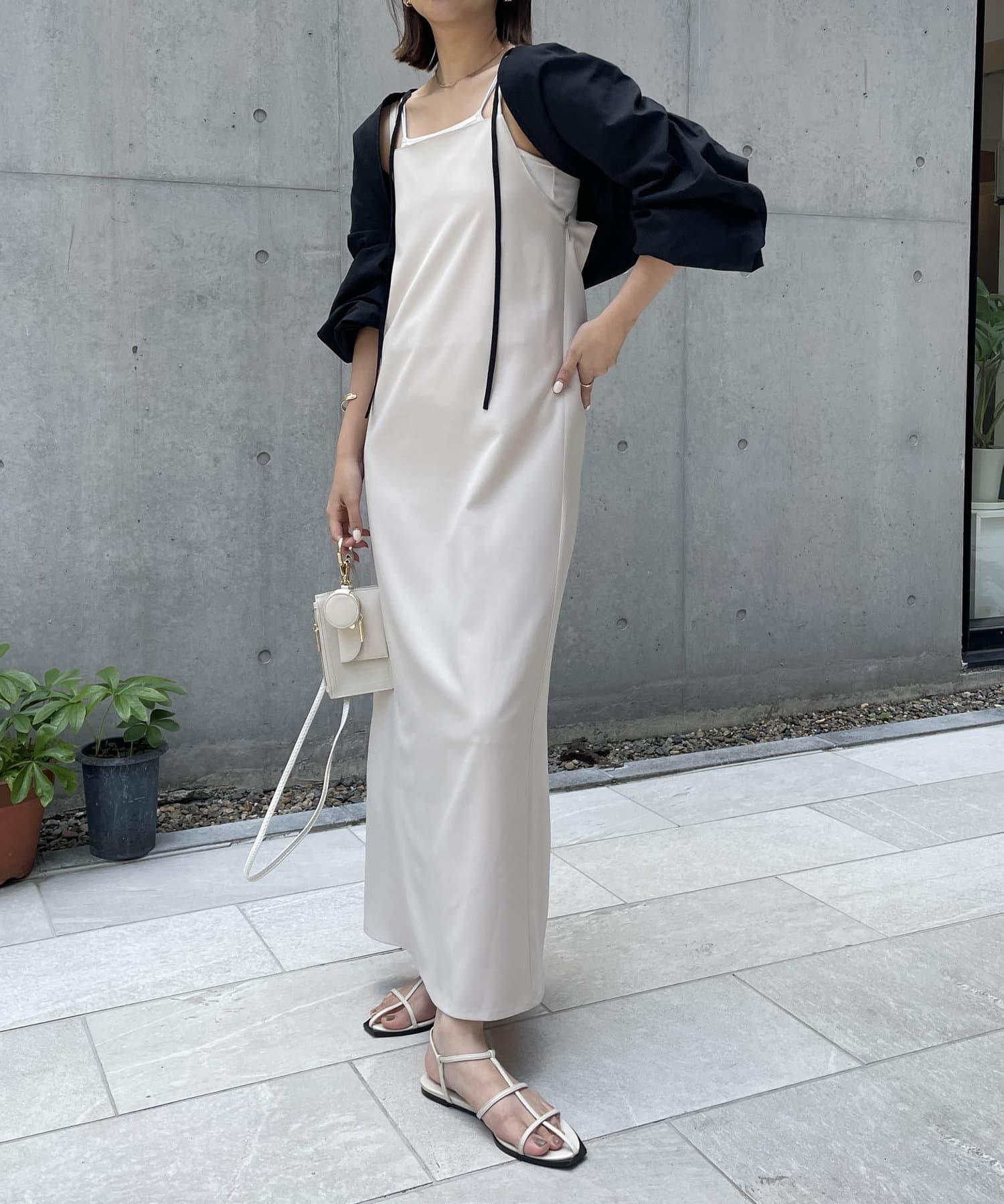 ・バックストラップキャミワンピース、ボックスタックカットワンピースに合わせてトレンドライクに