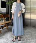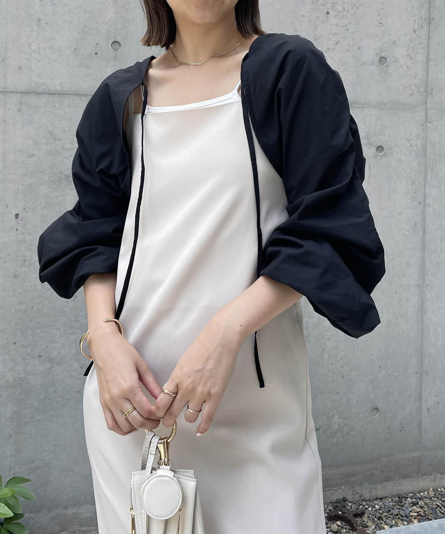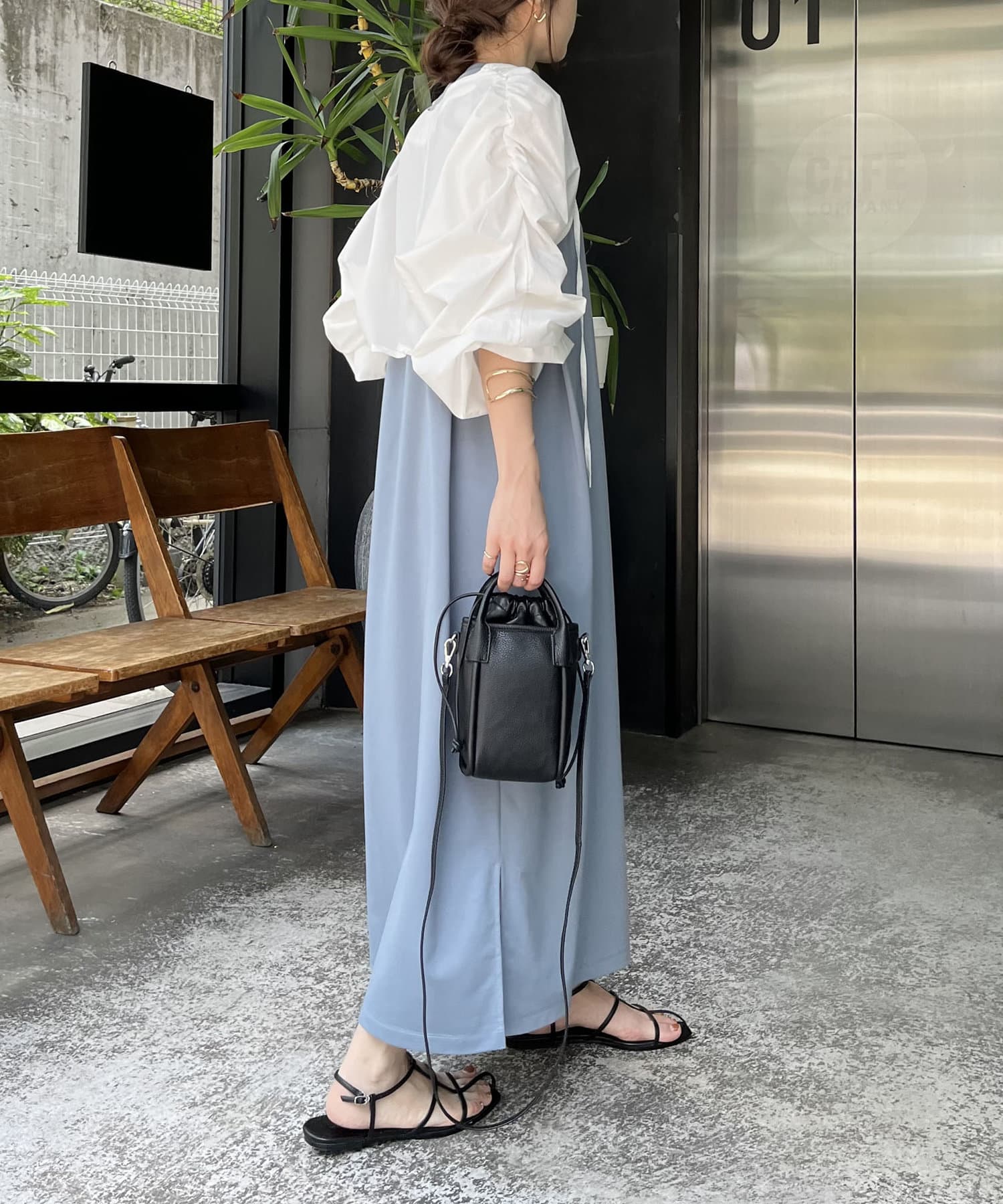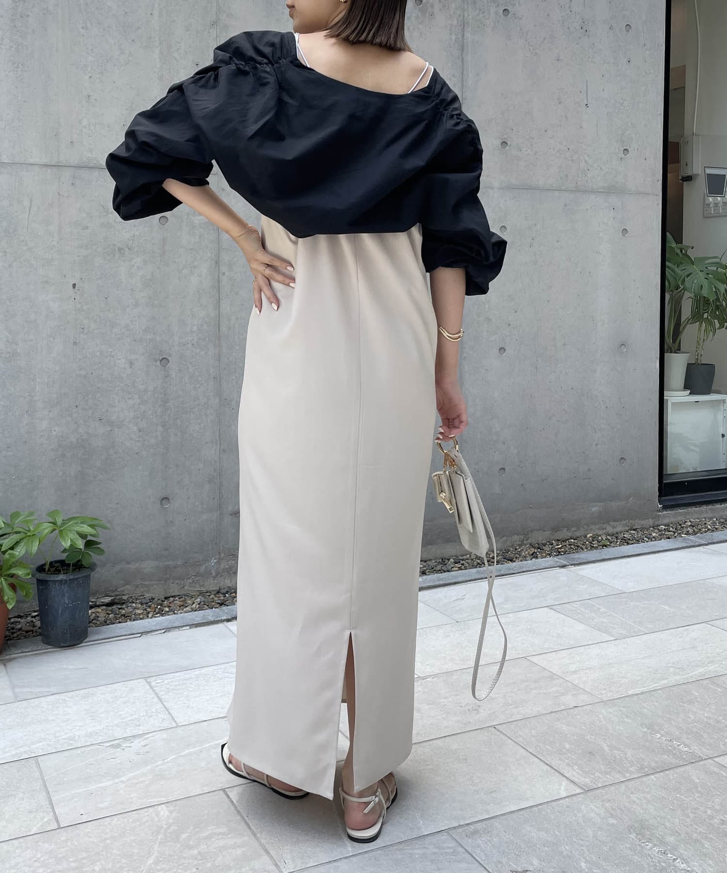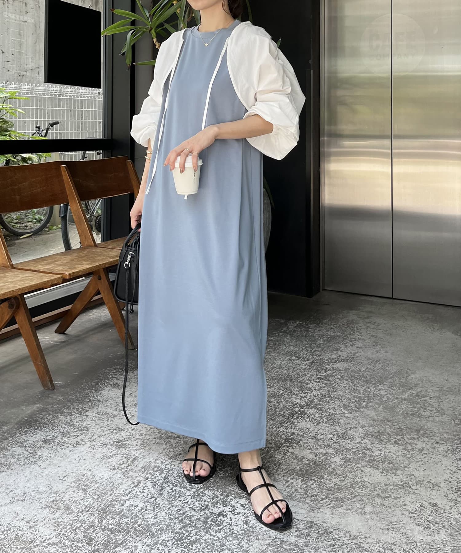 ・バックストラップキャミワンピース、ボックスタックカットワンピースに合わせてトレンドライクに