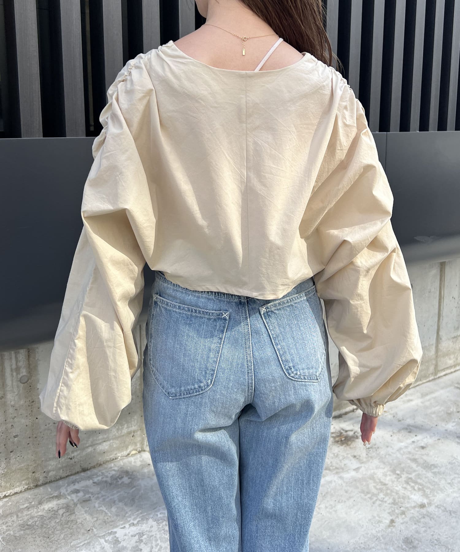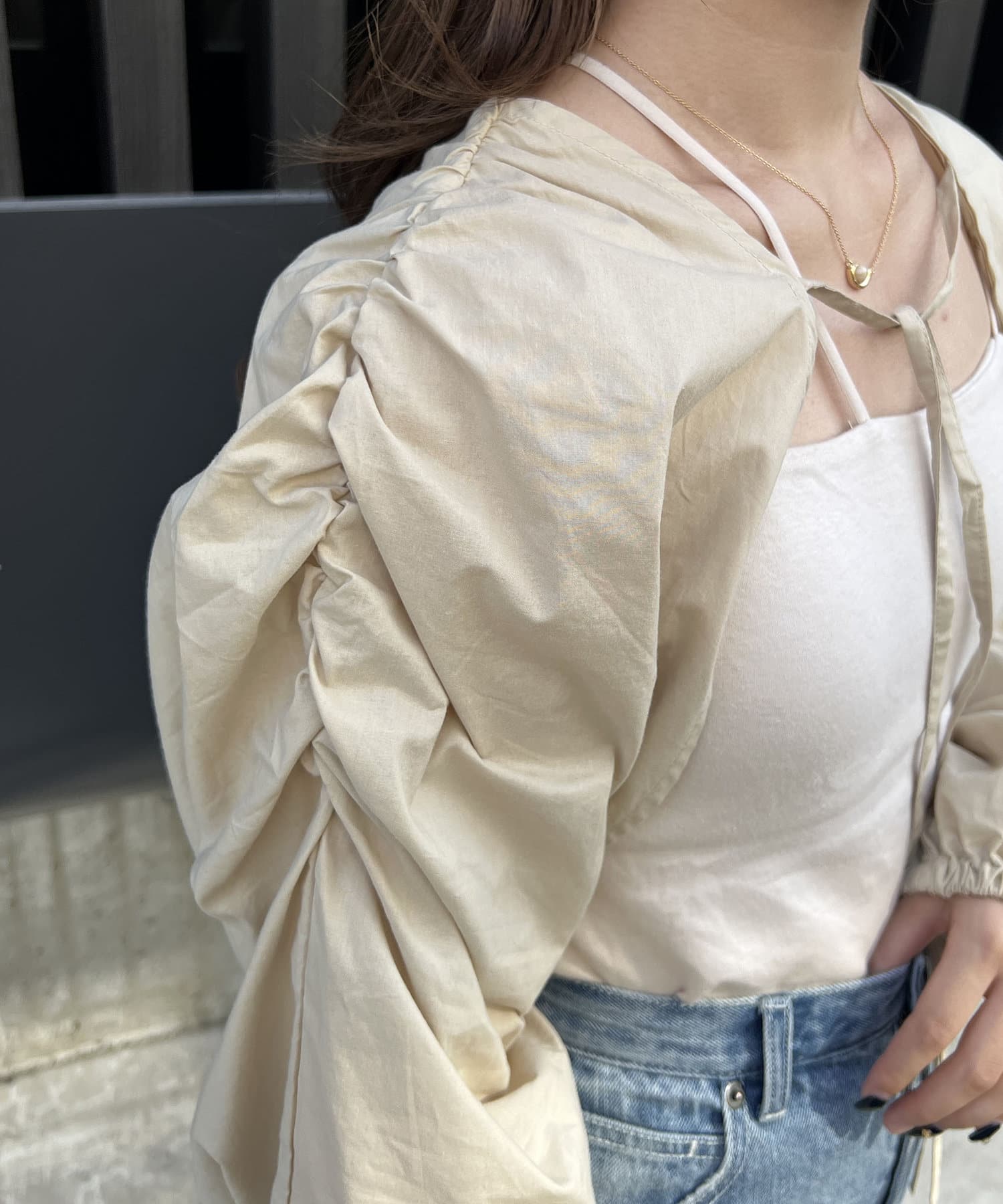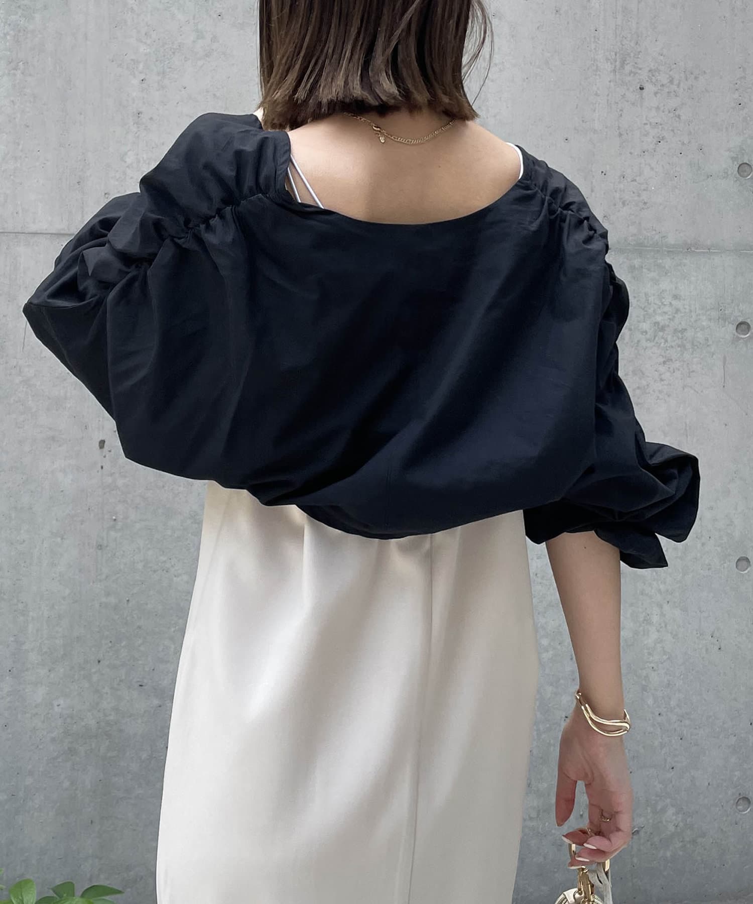 ・肩の後ろのラインにギャザーがたっぷり入っており、立体感のあるシルエットに