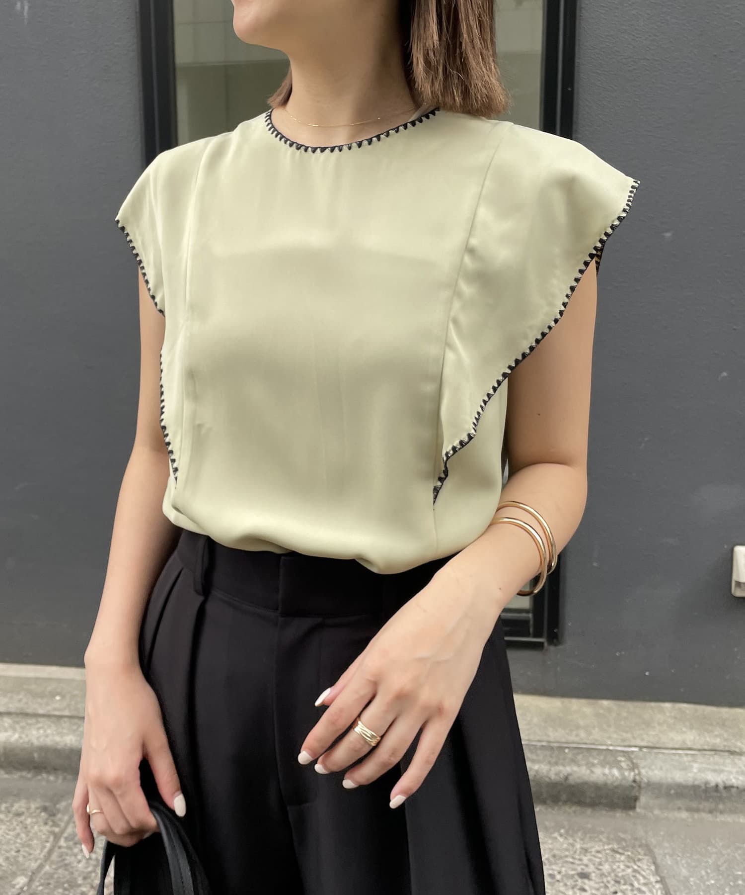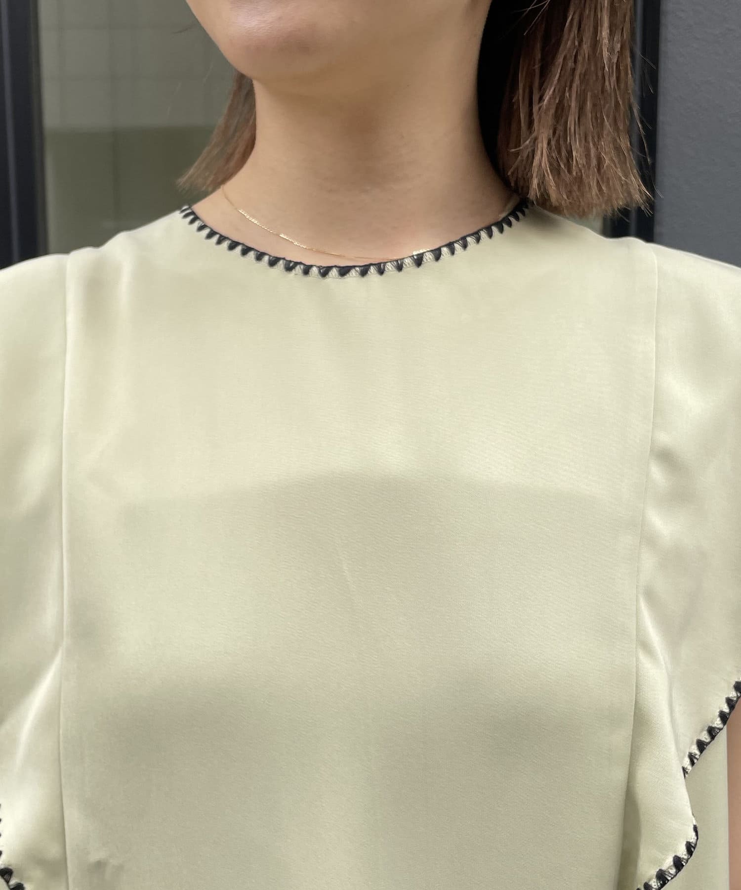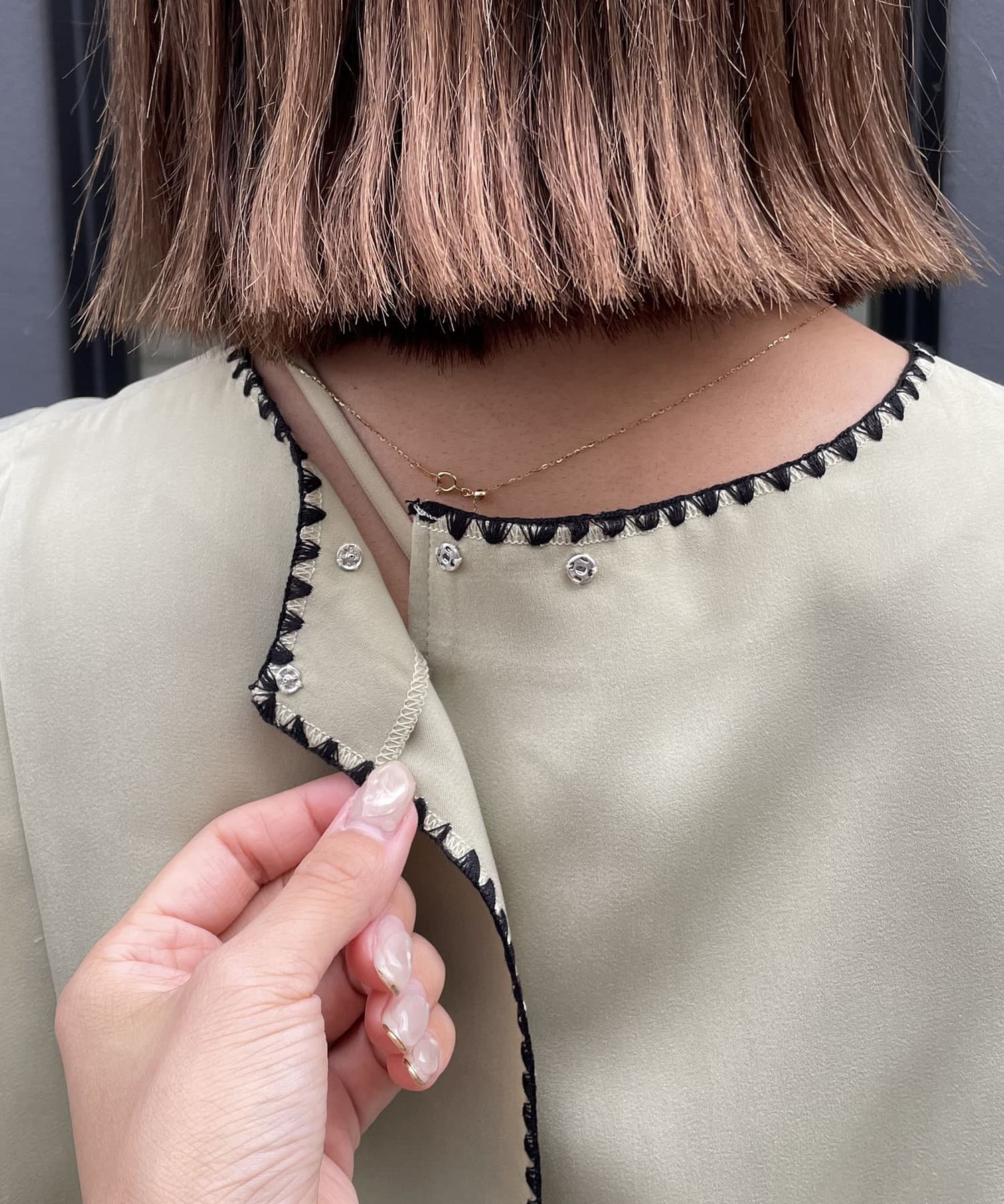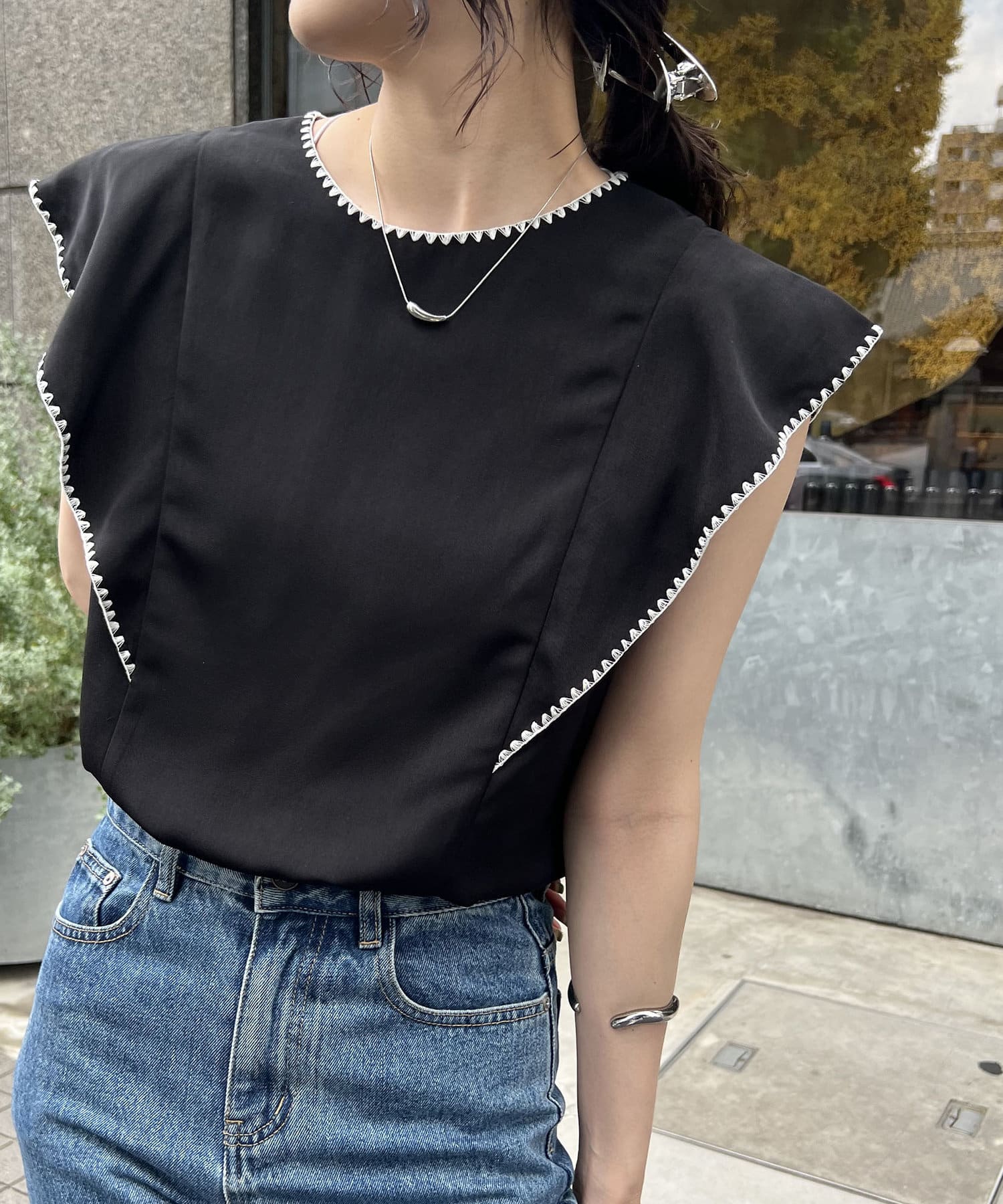 ハンドステッチの縁取りがポイントのきれいめブラウス