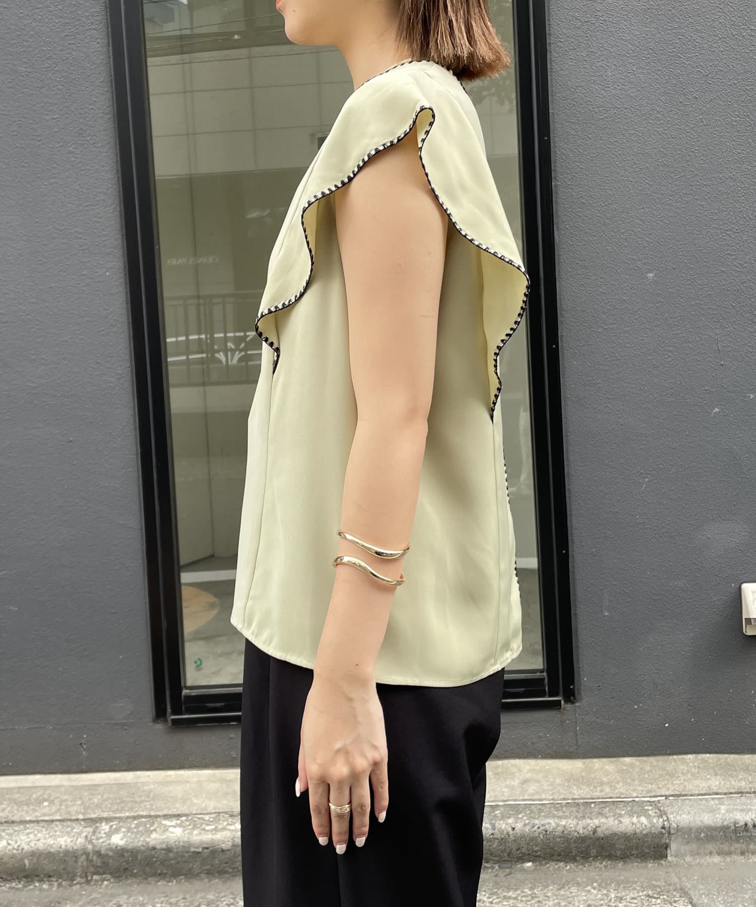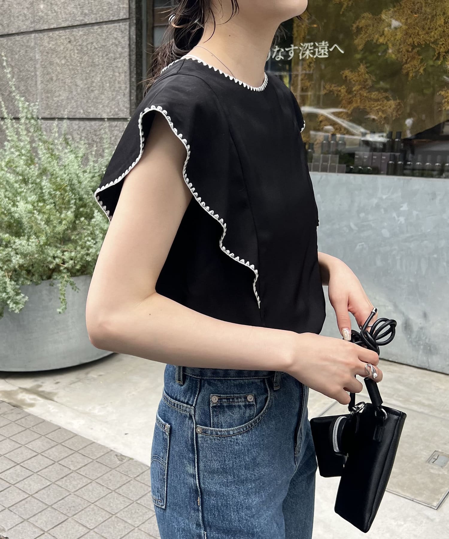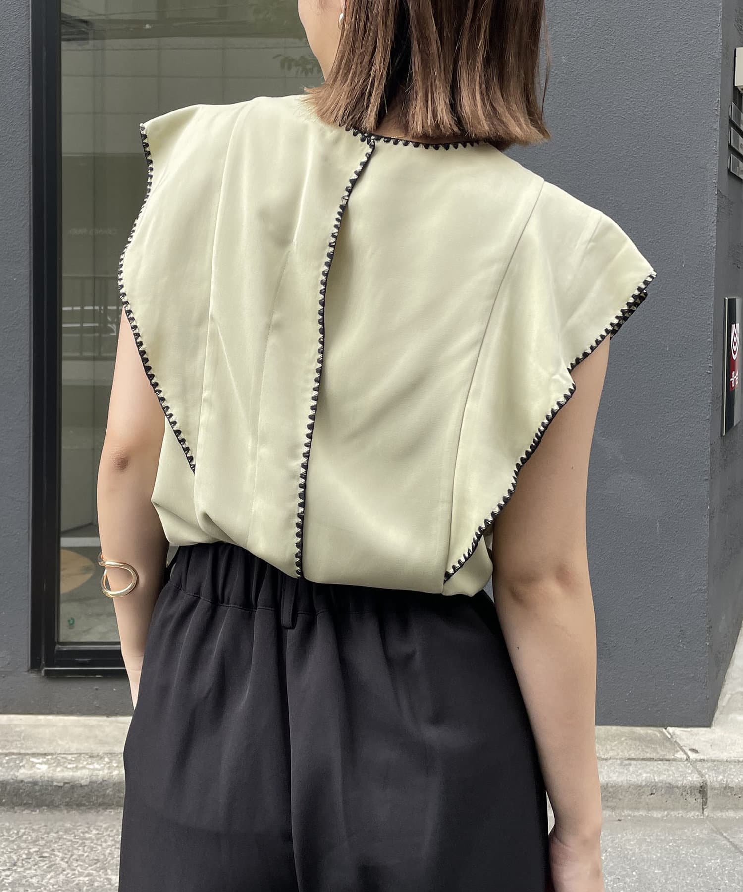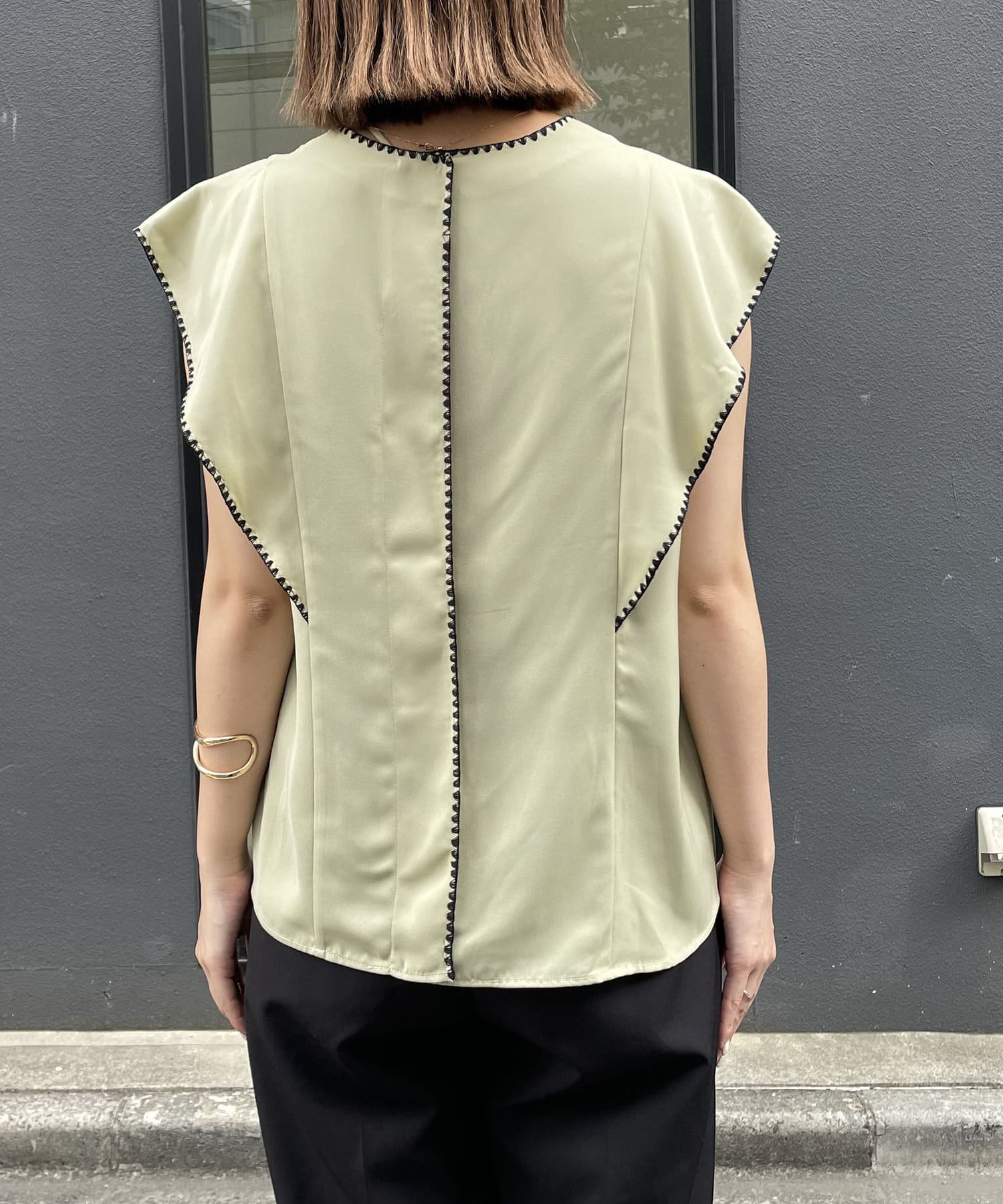 ハンドステッチの縁取りがポイントのきれいめブラウス