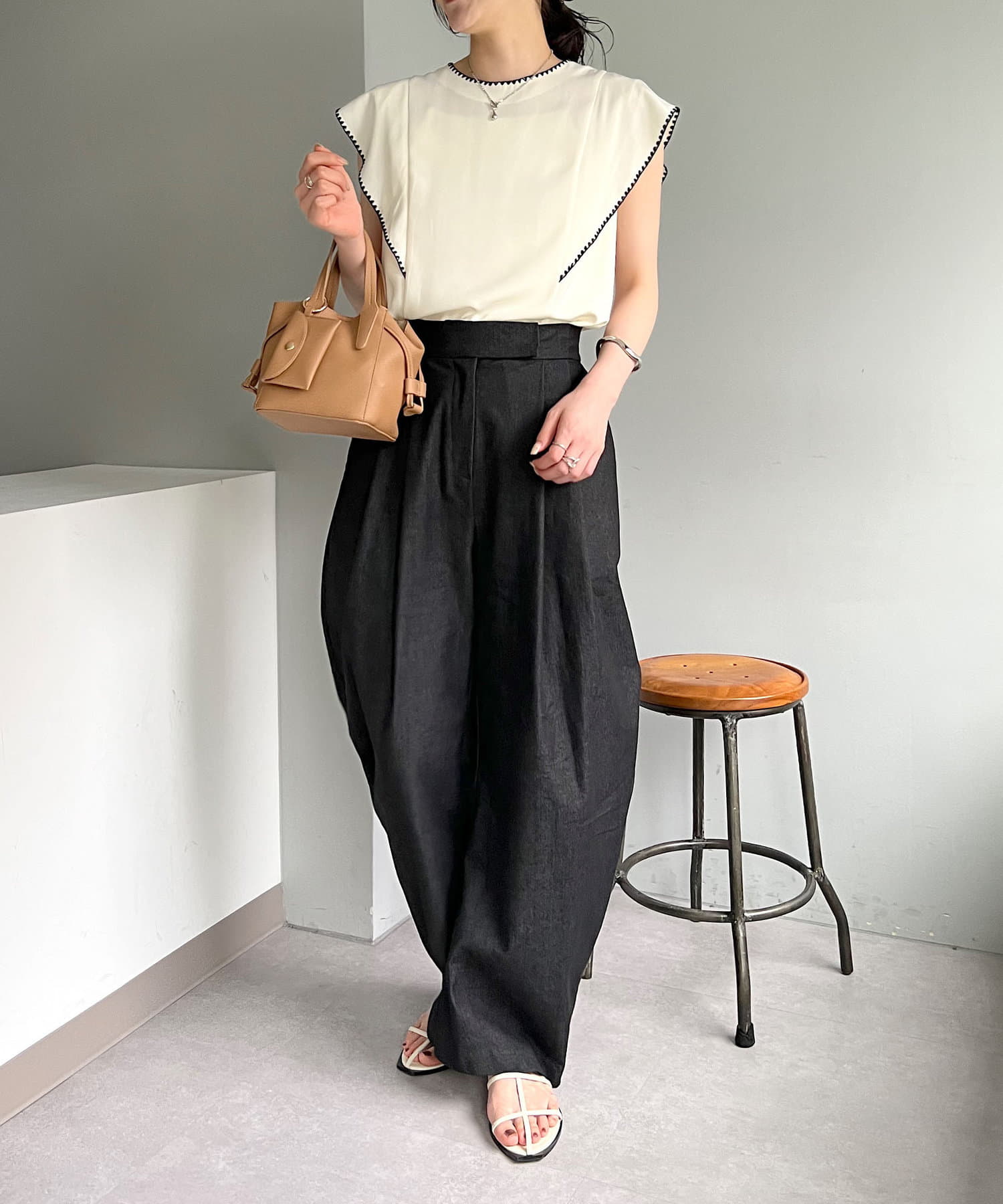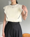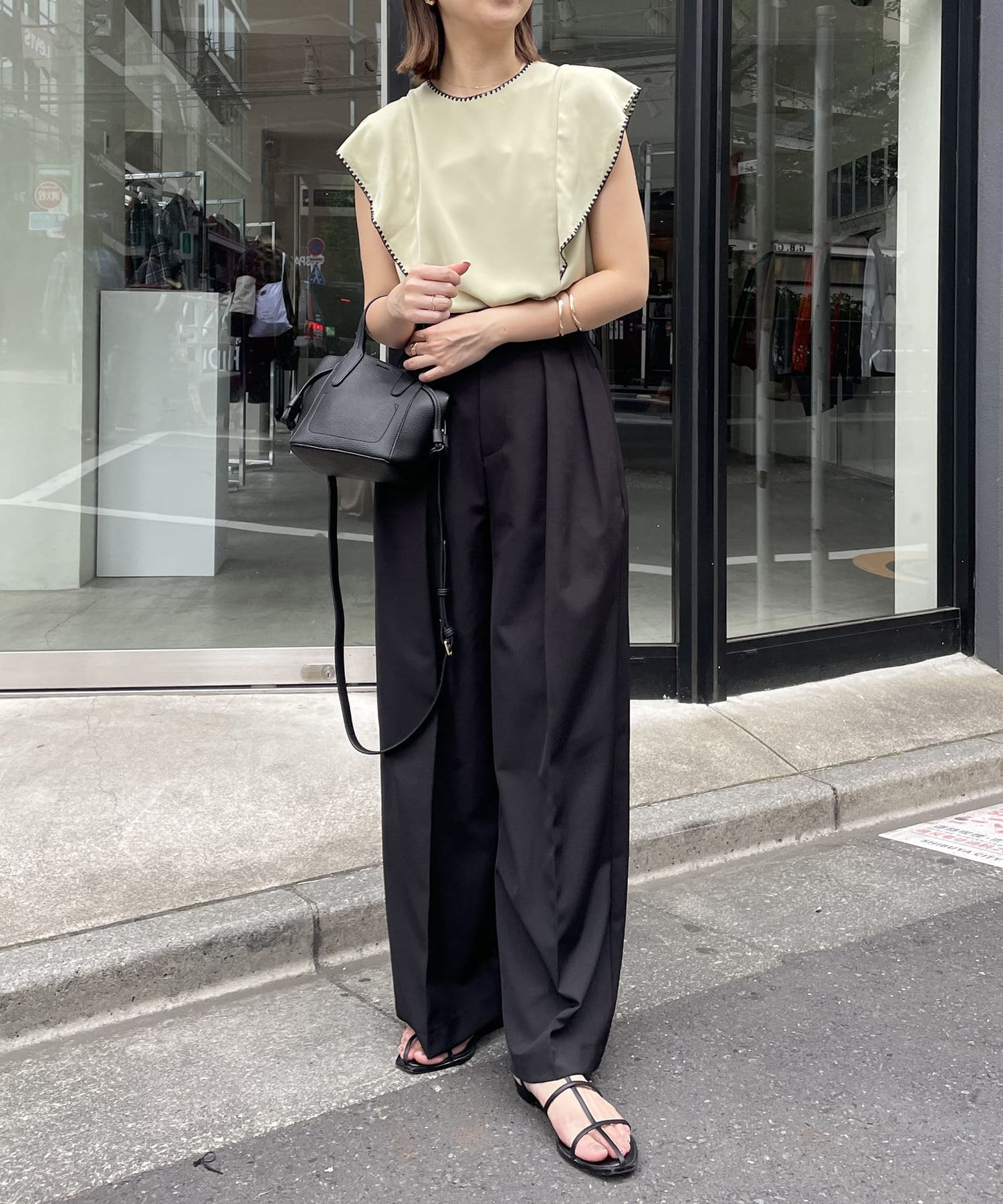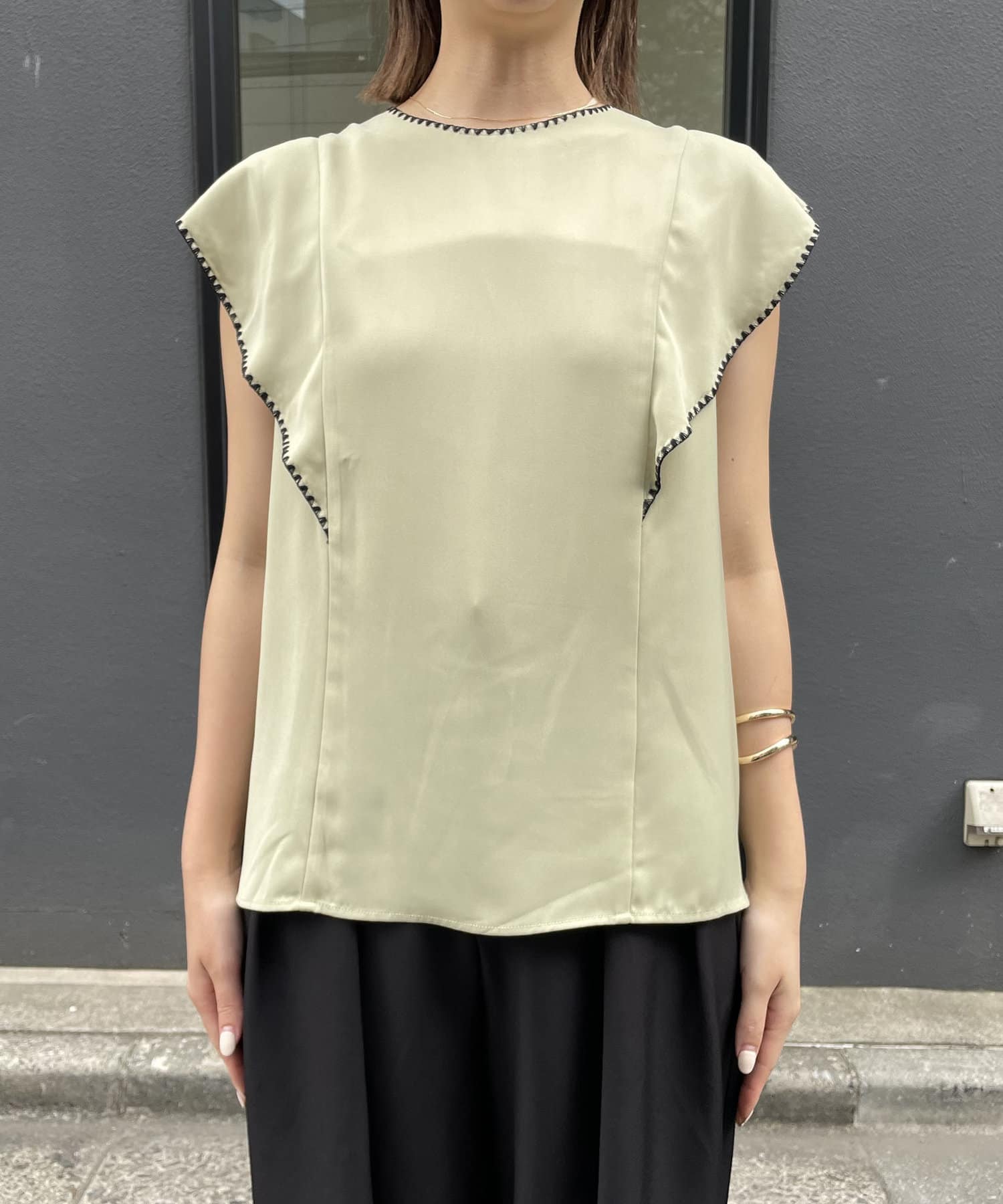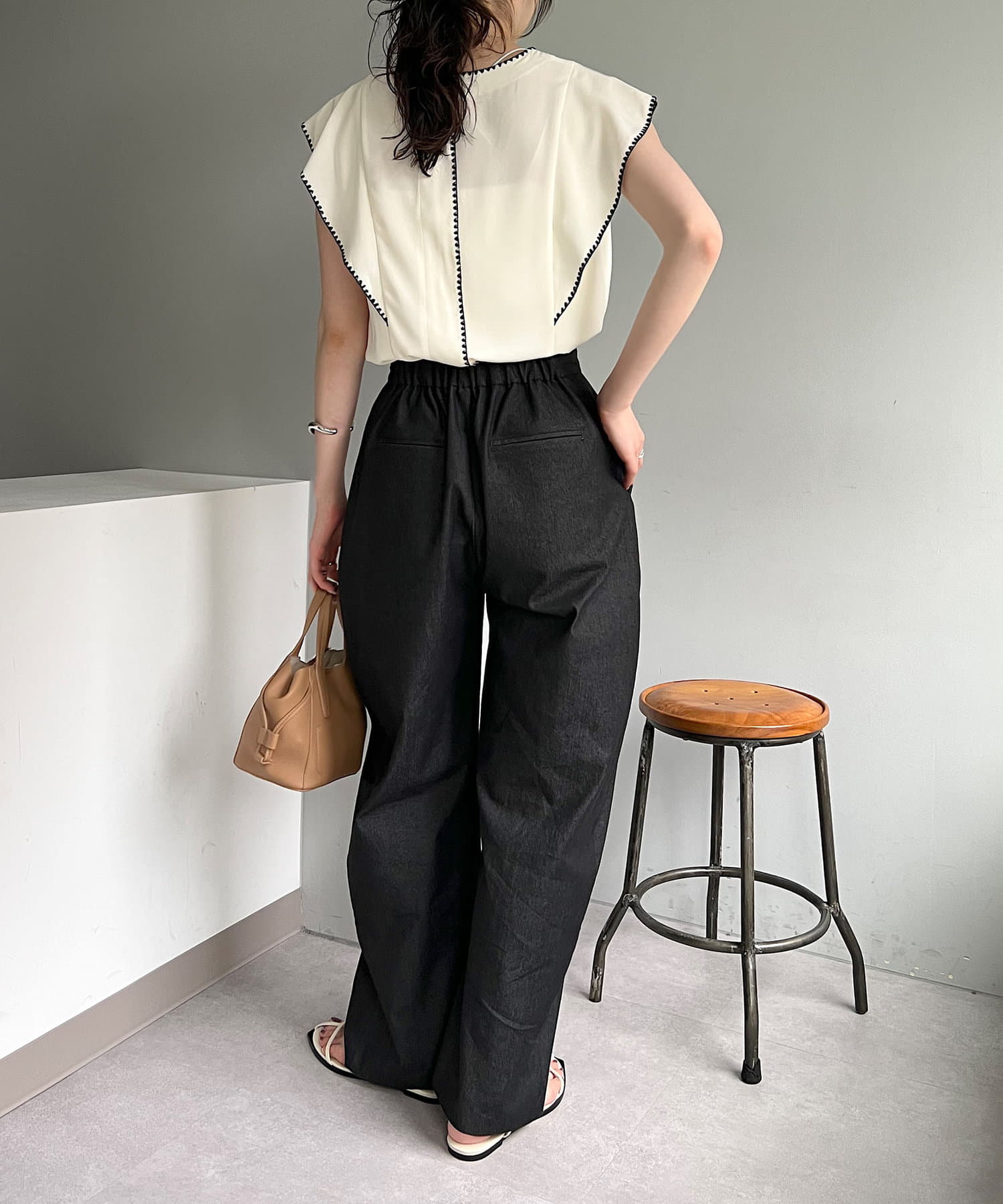 ハンドステッチの縁取りがポイントのきれいめブラウス