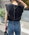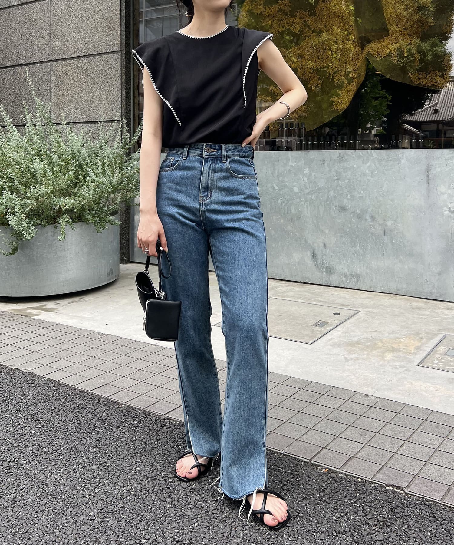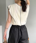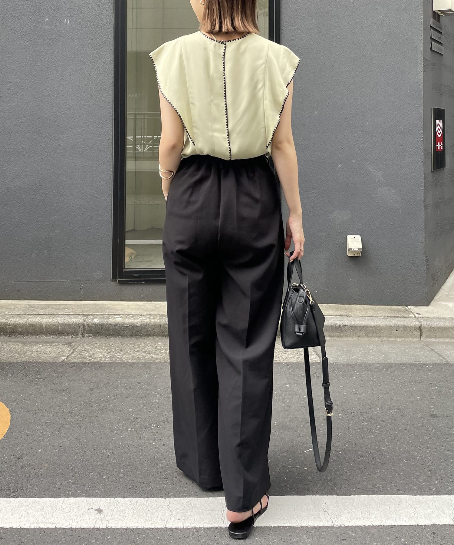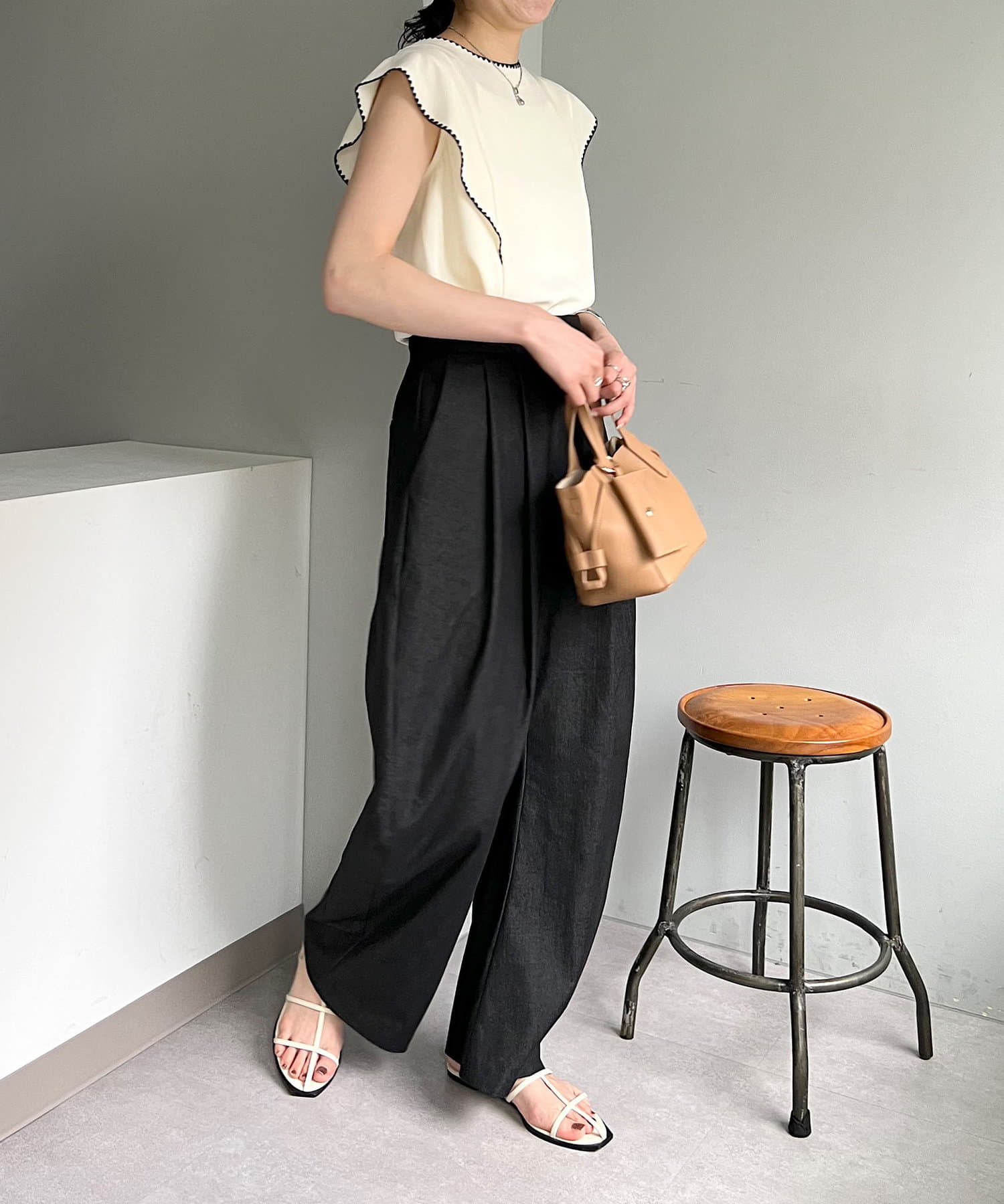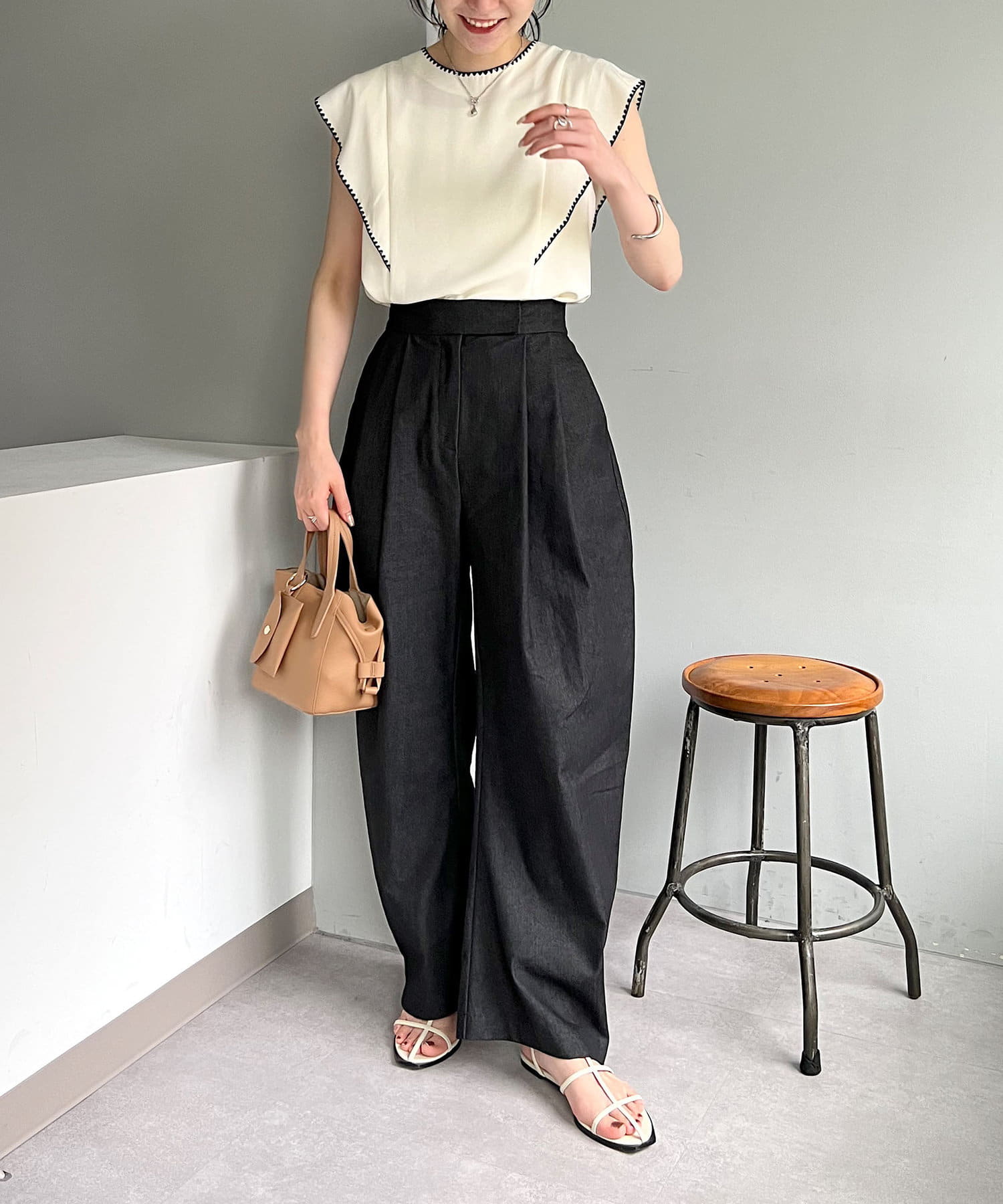 ハンドステッチの縁取りがポイントのきれいめブラウス