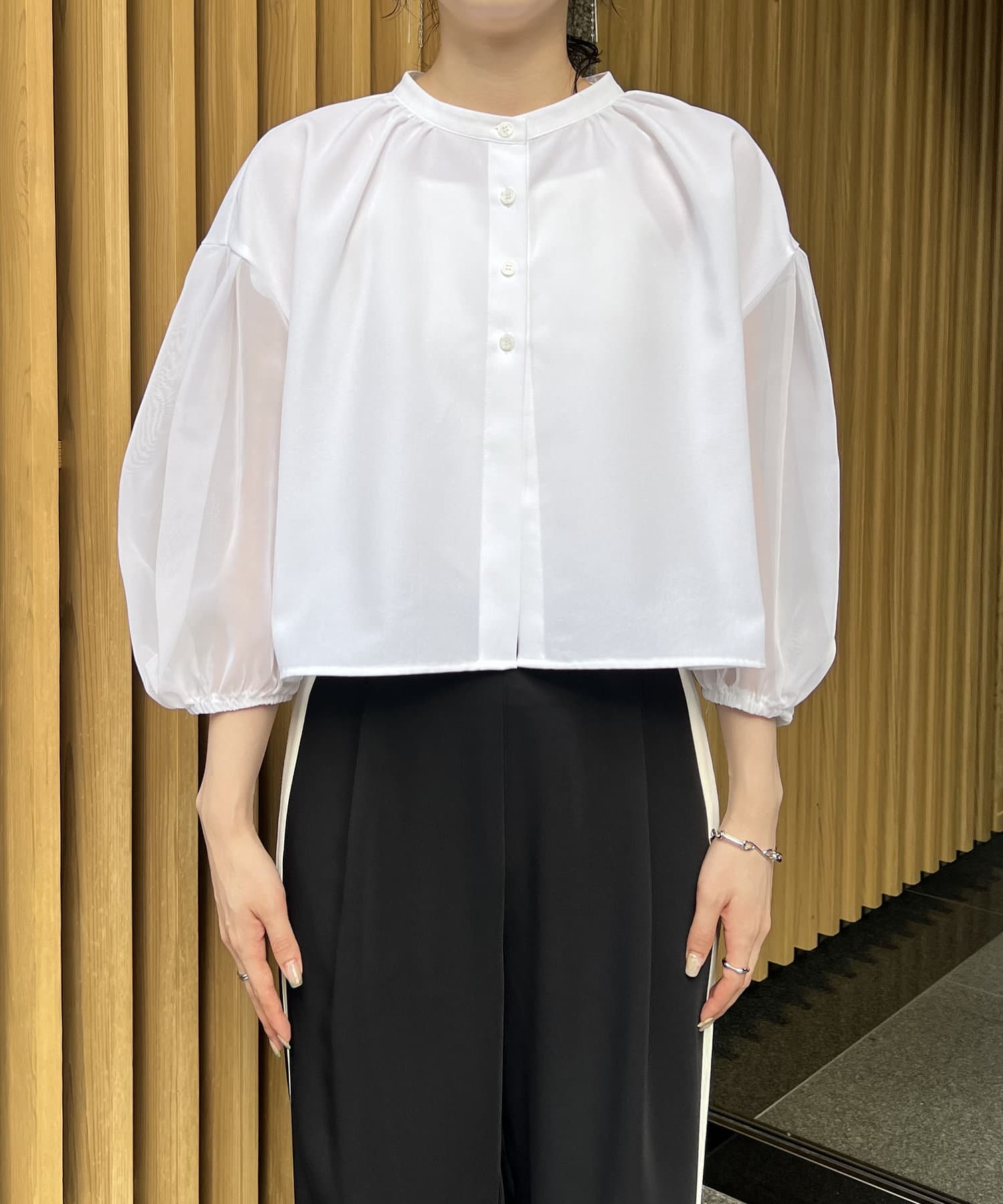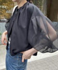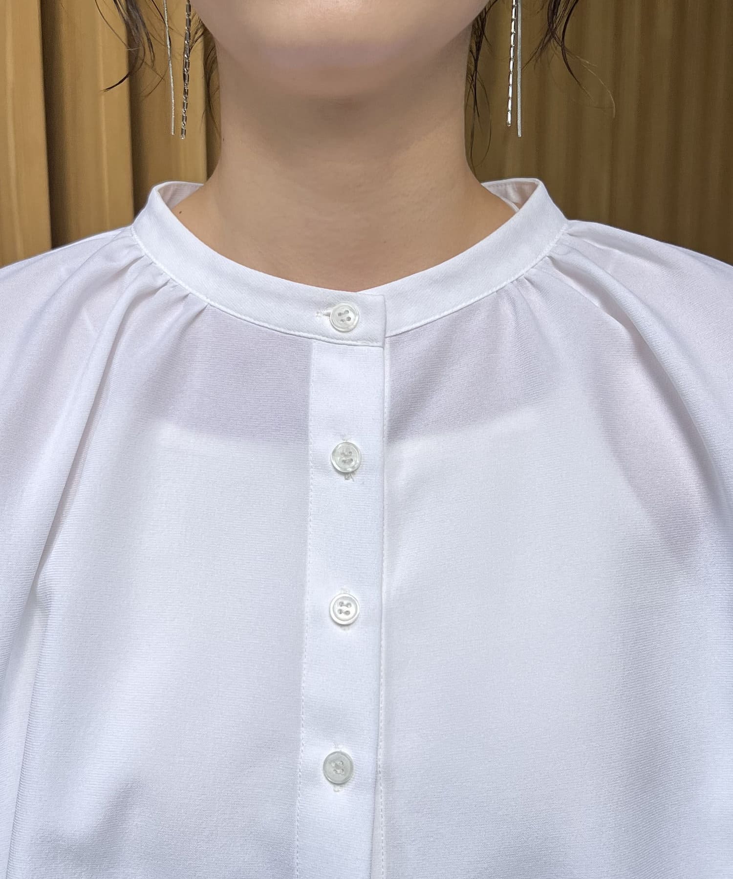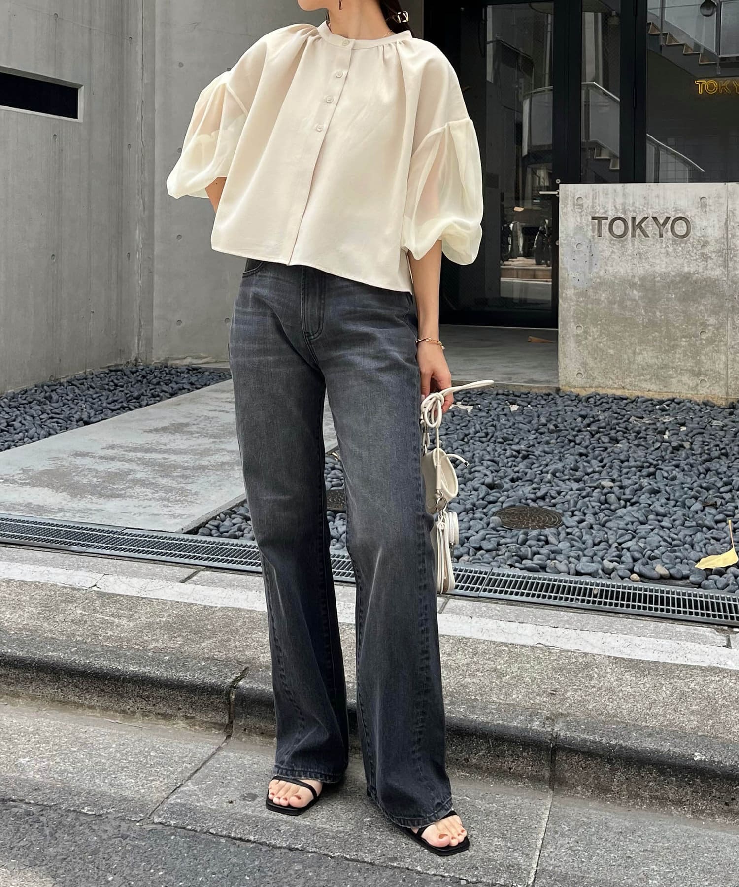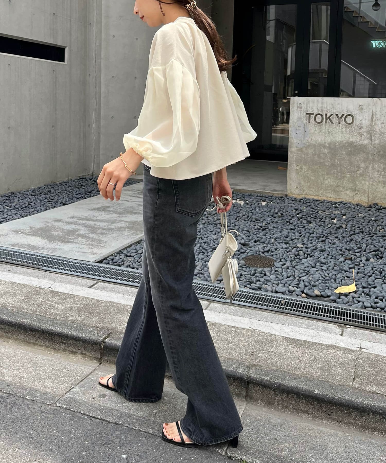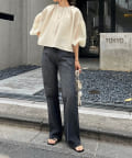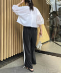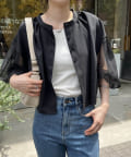 ・ボタンで前開き、裾はボタンなくスリットのようになっていて抜け感あり