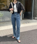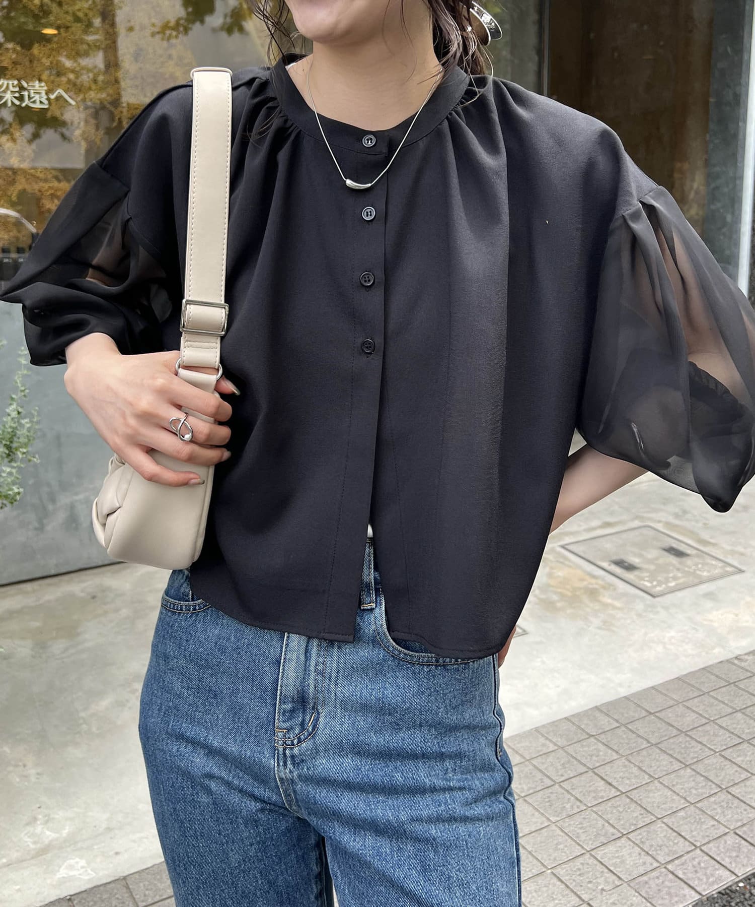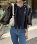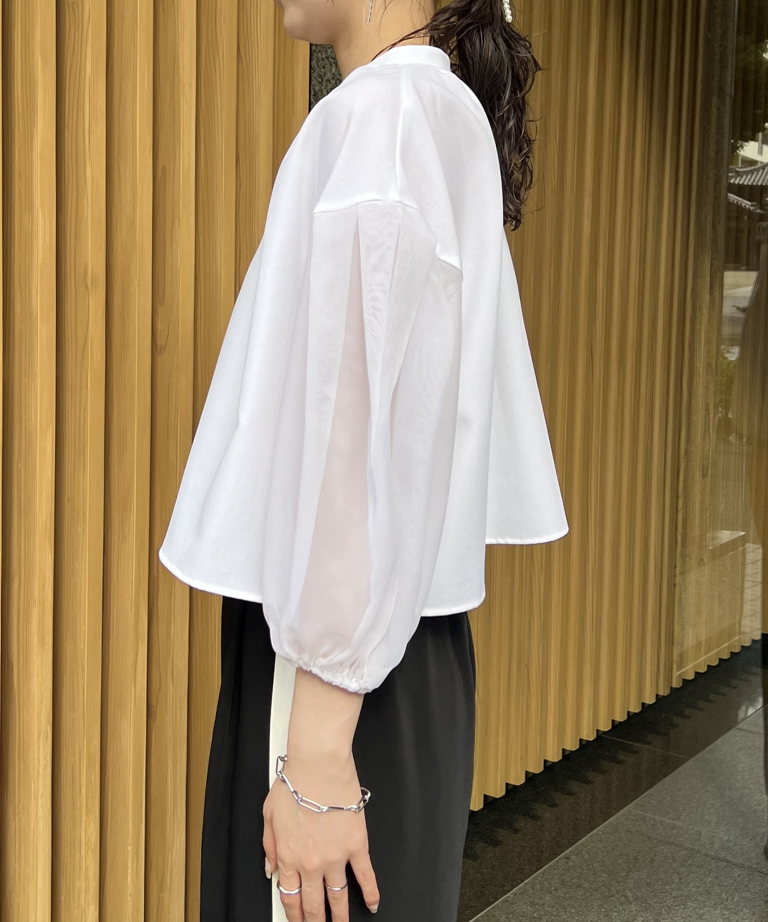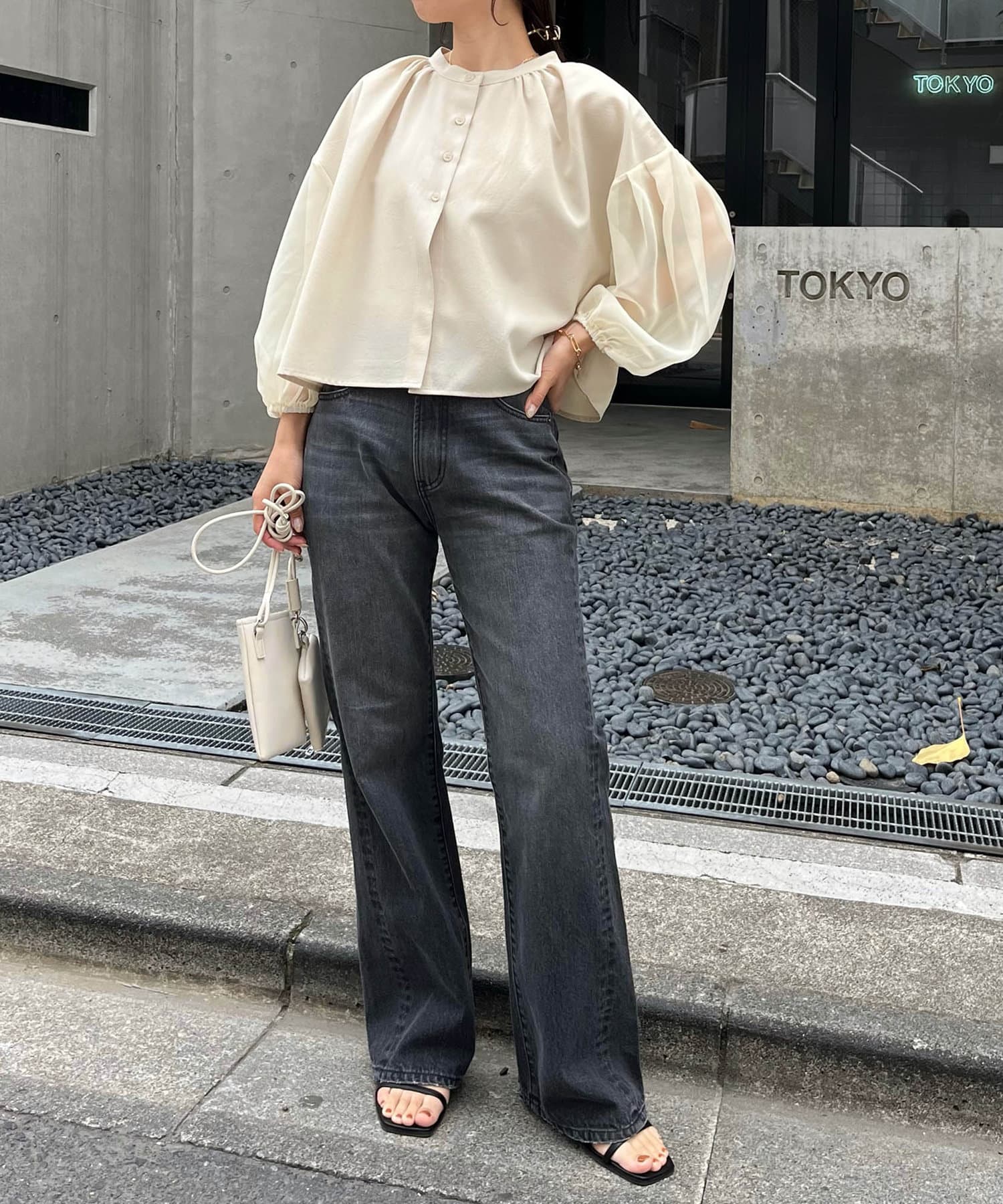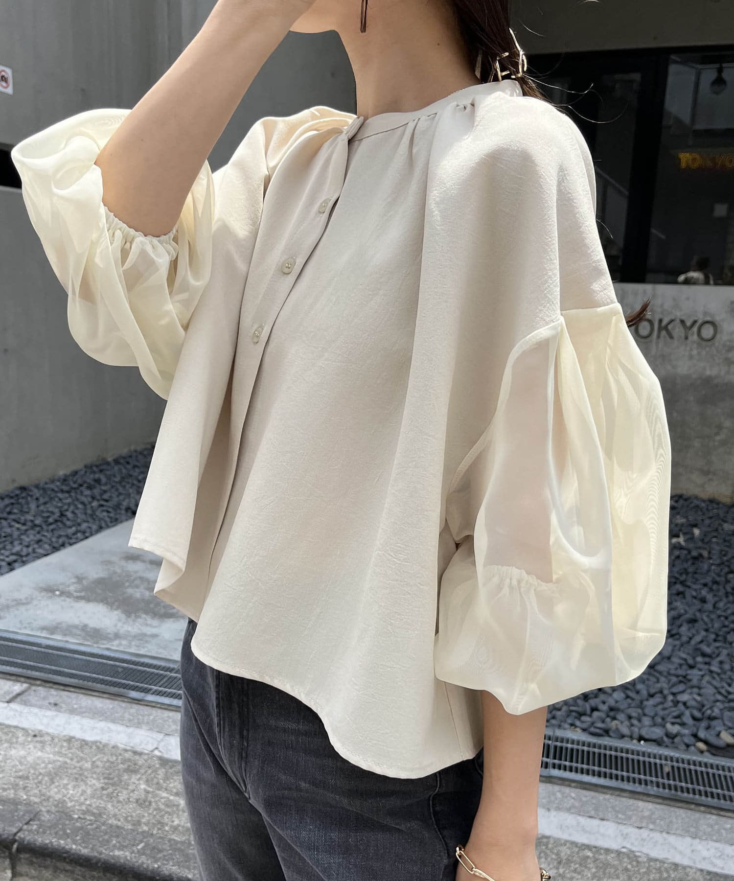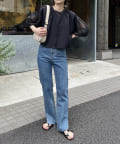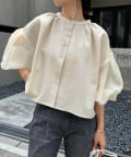 ・ボタンで前開き、裾はボタンなくスリットのようになっていて抜け感あり
