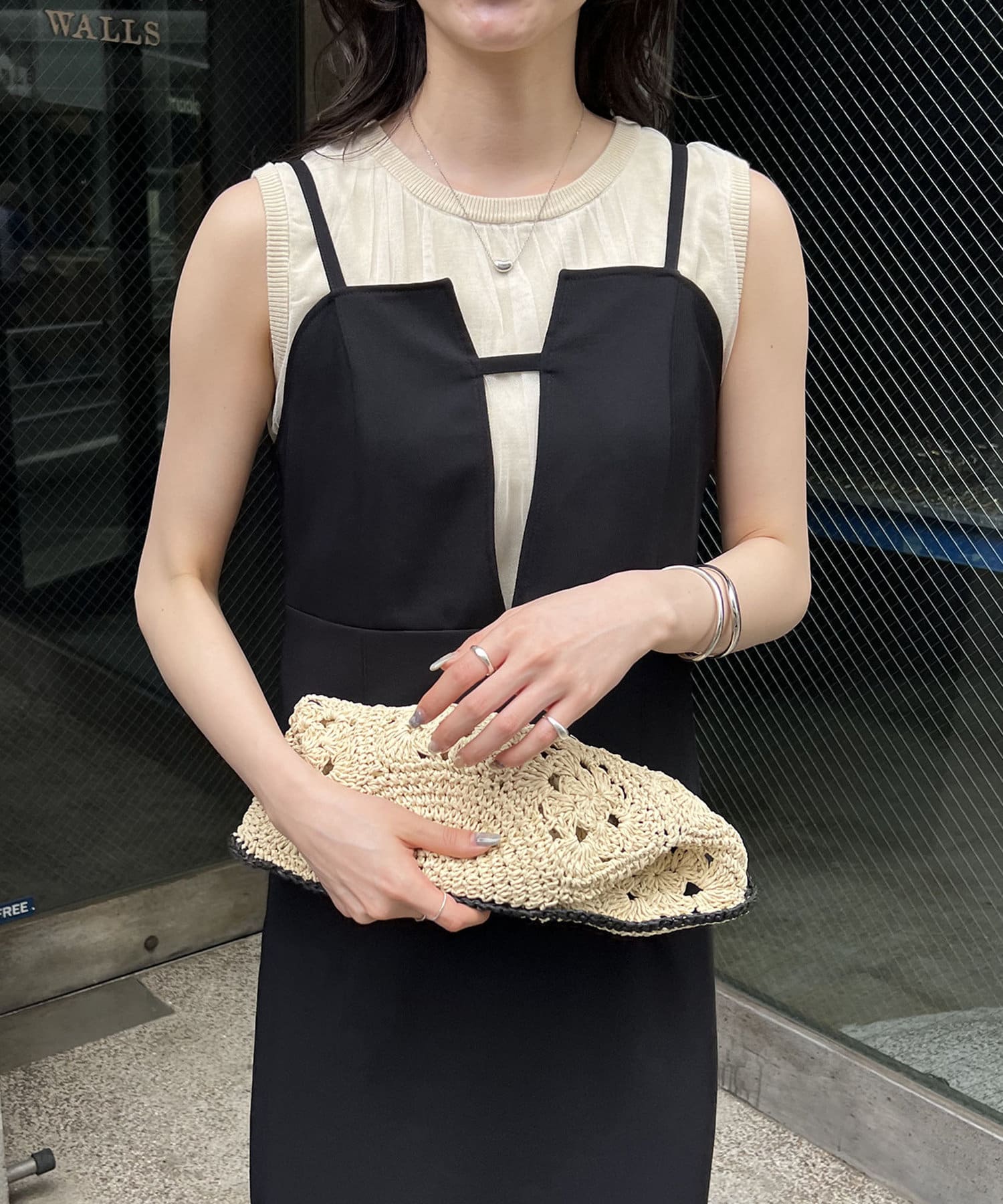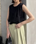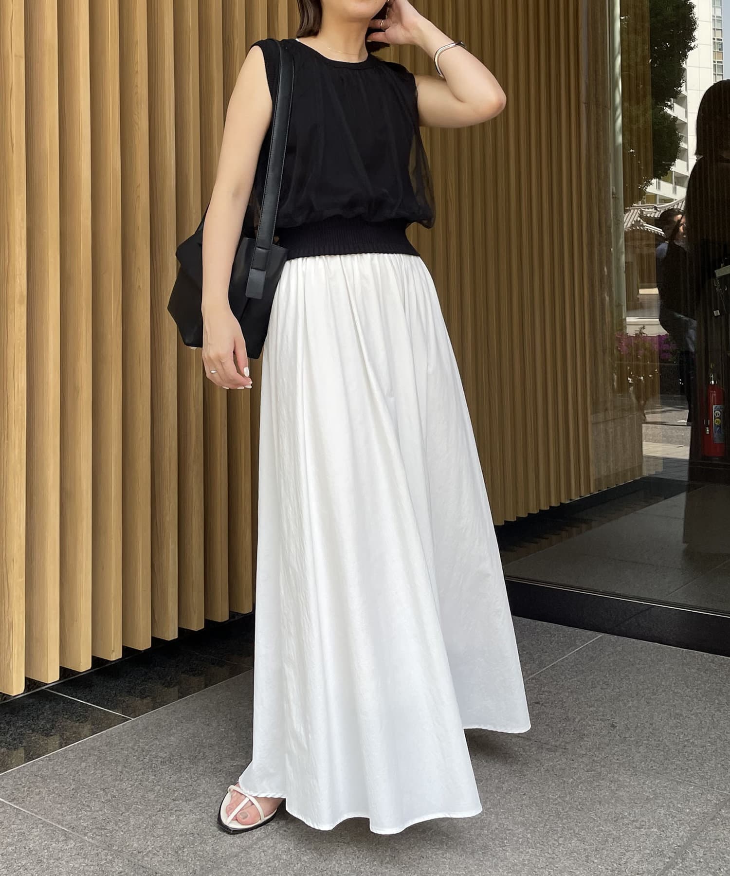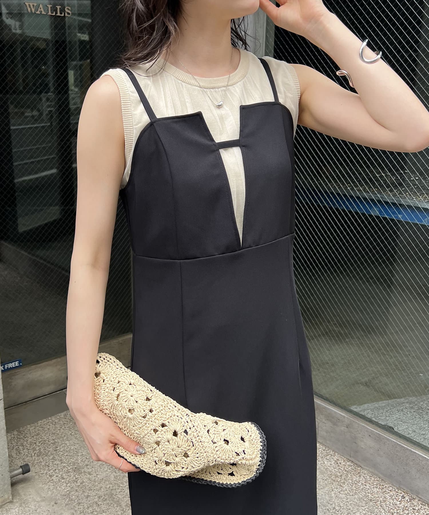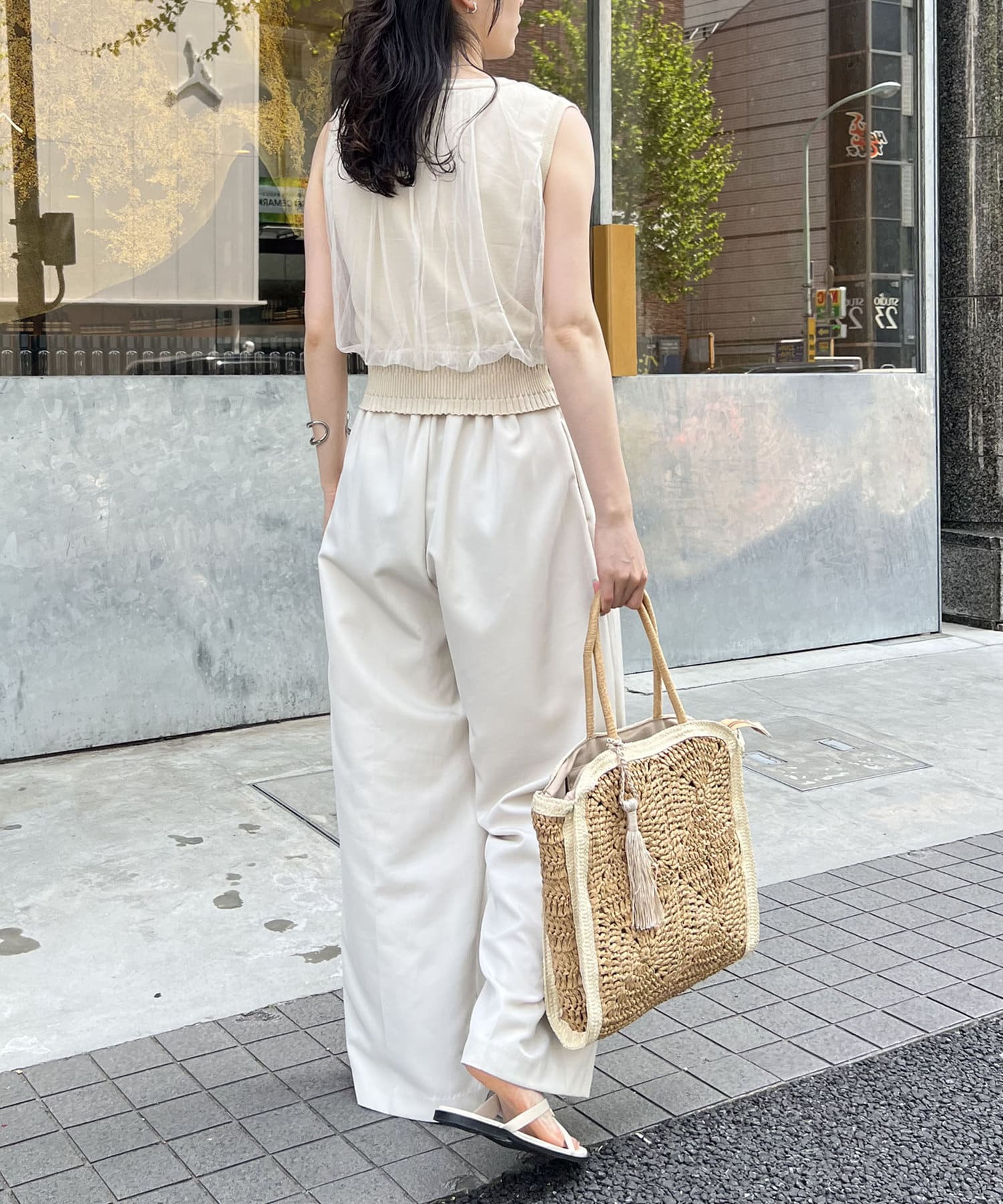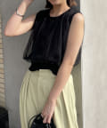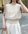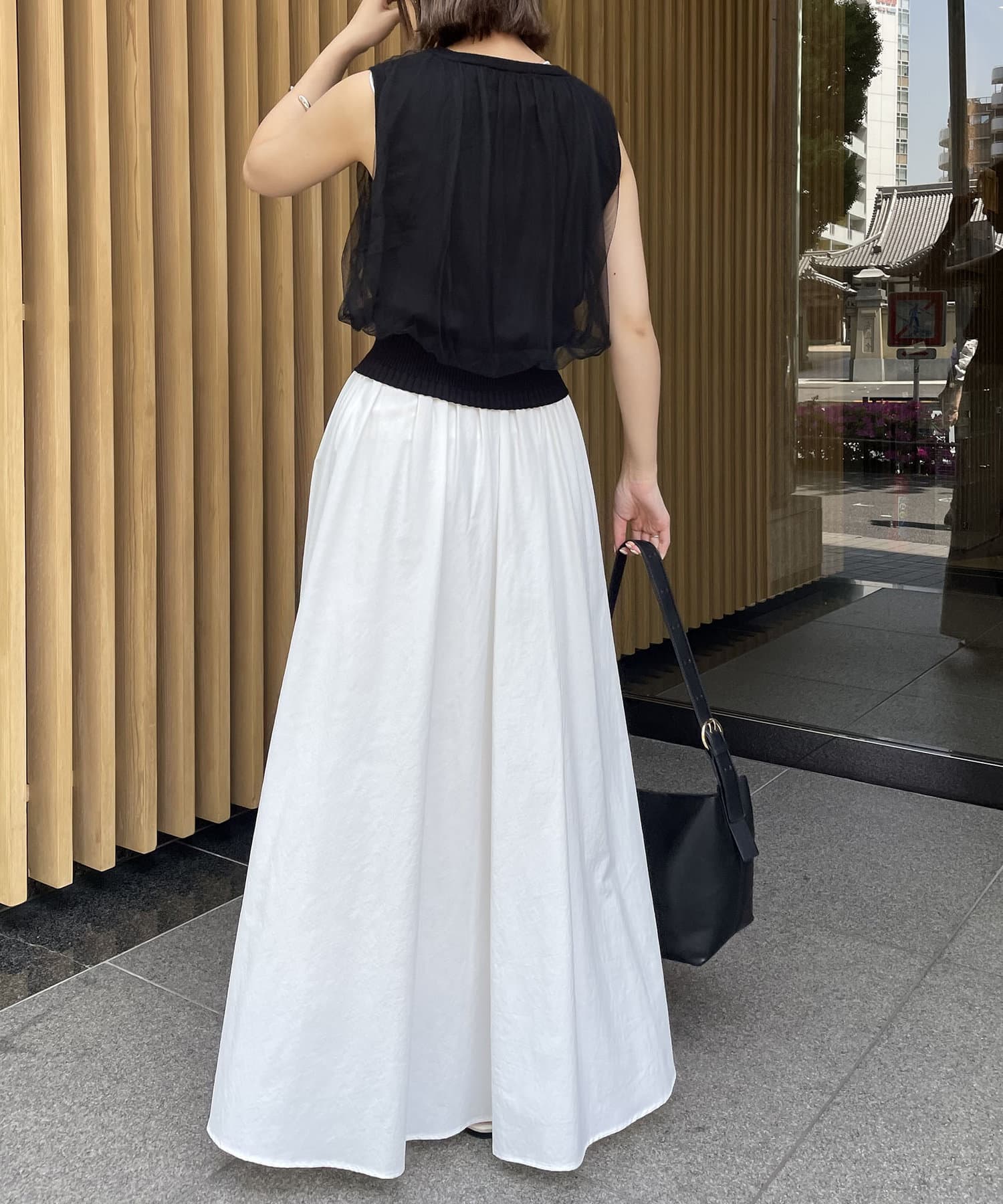 トレンドのチュール素材がニットタンクにレイヤードされたデザイントップス