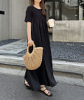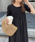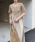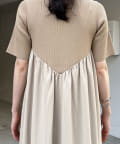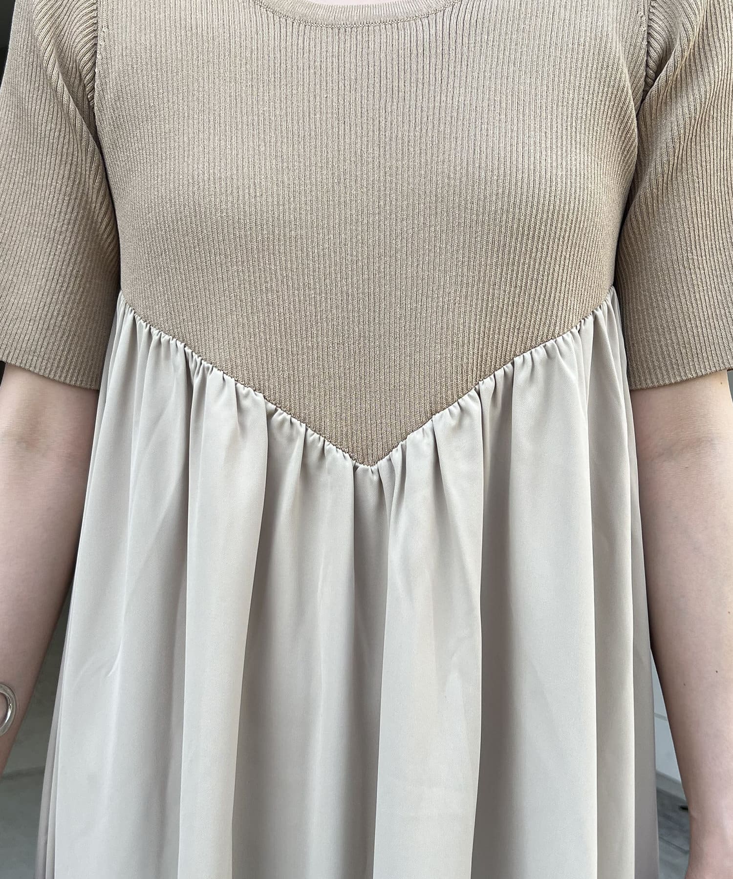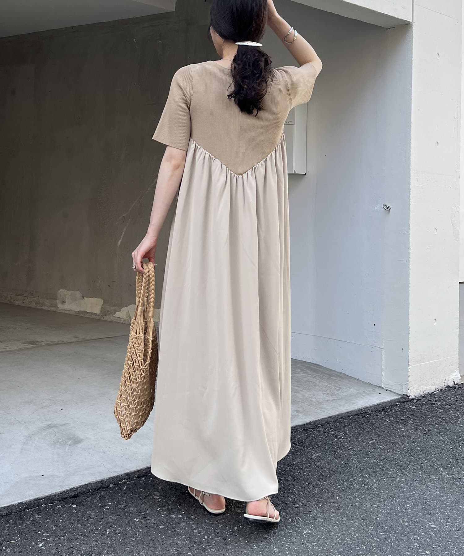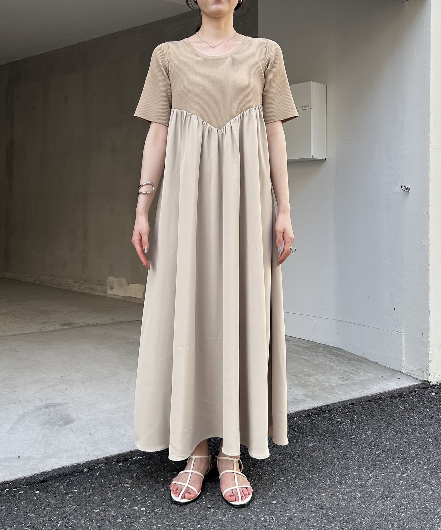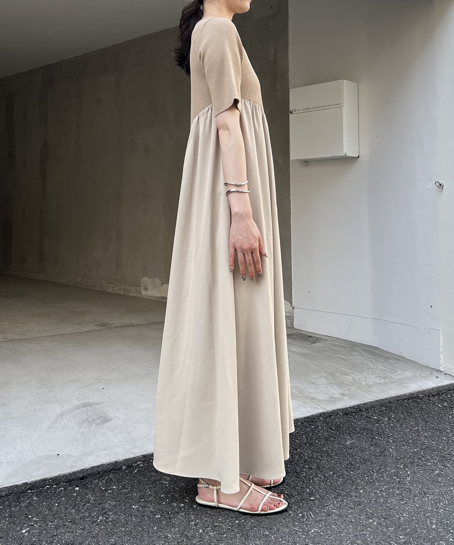 ・トップスはリブのニット、スカートはとろみのある布帛素材