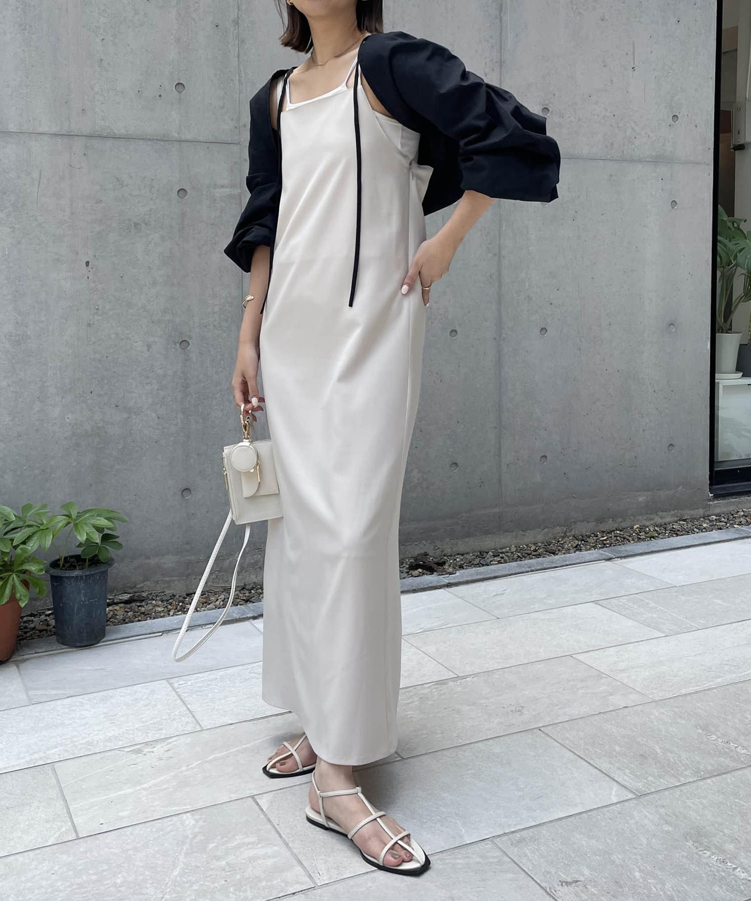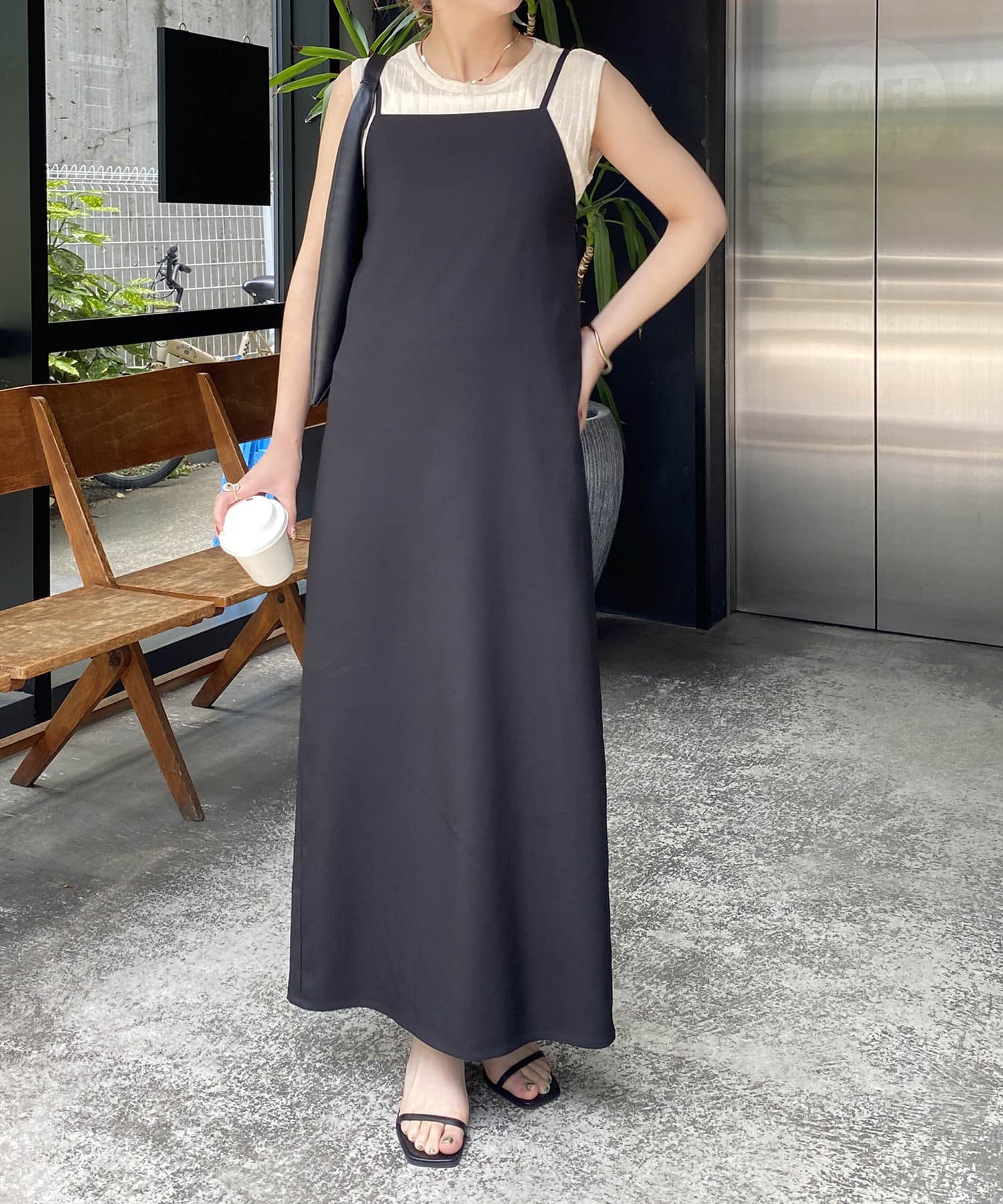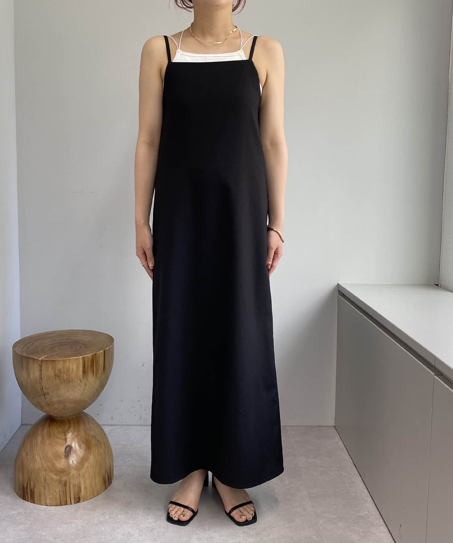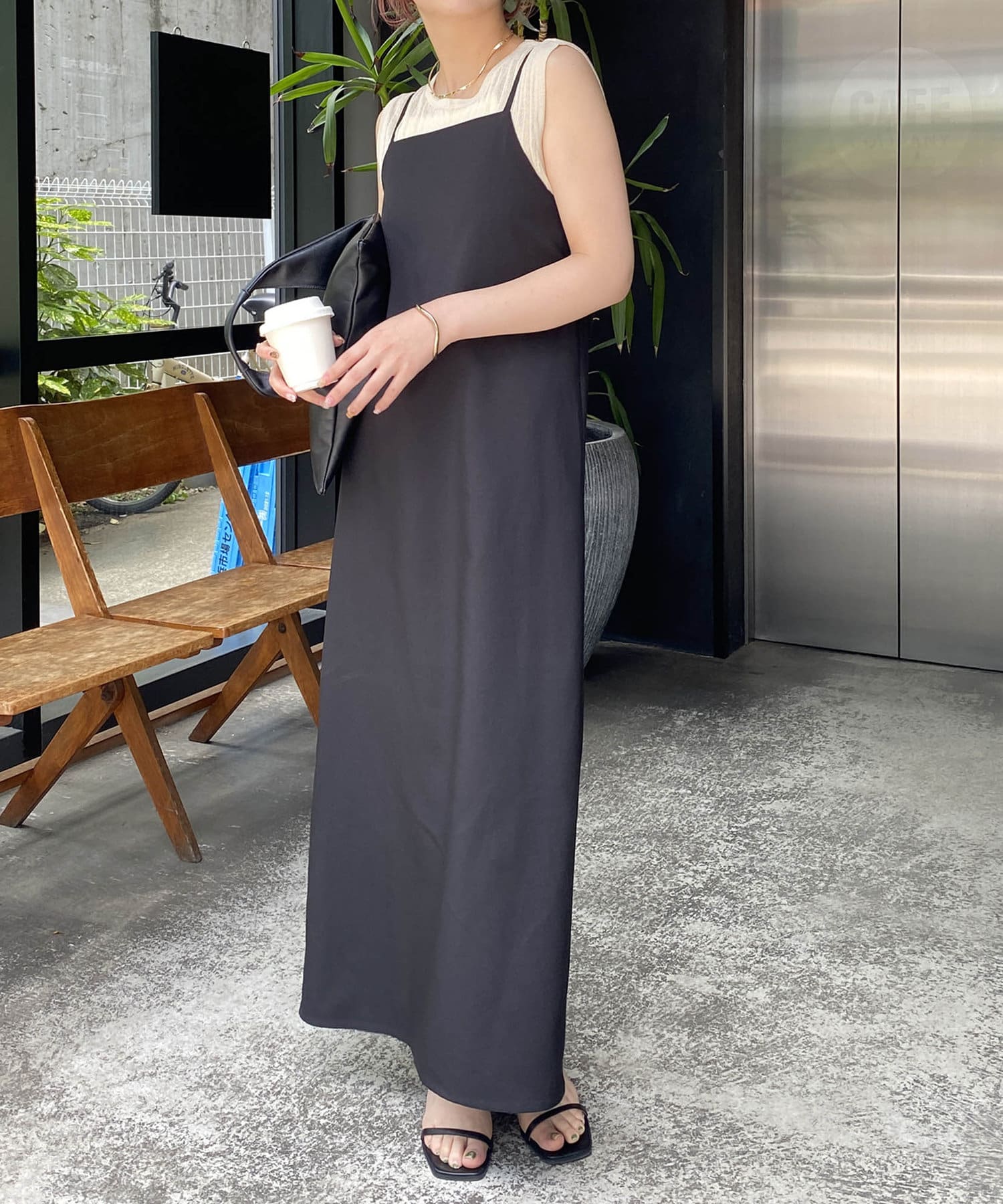 無駄のないシンプルなシルエットがポイントのキャミワンピース