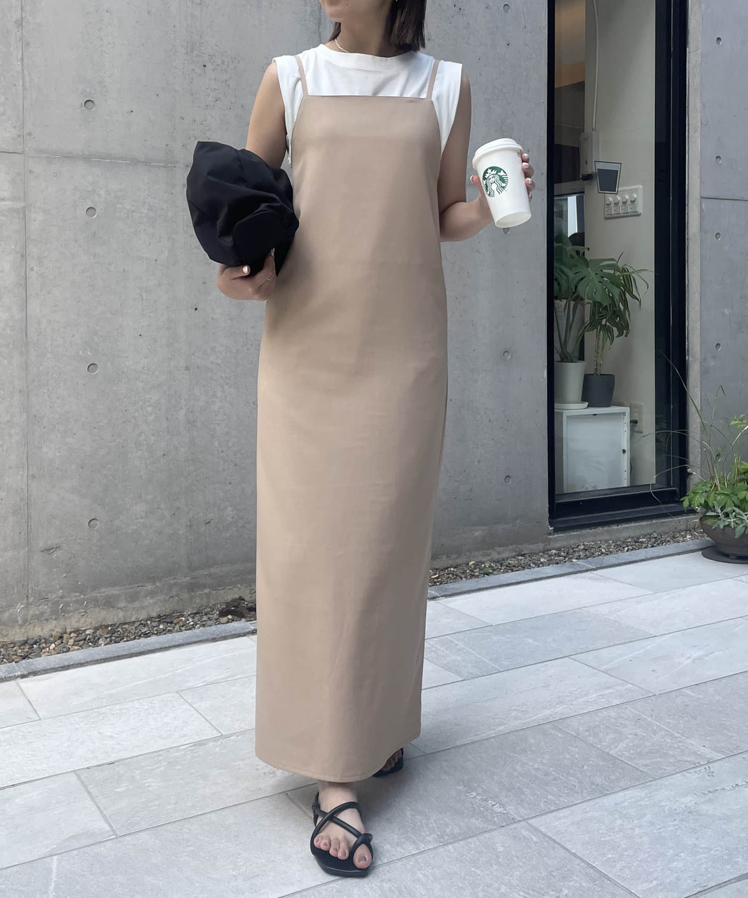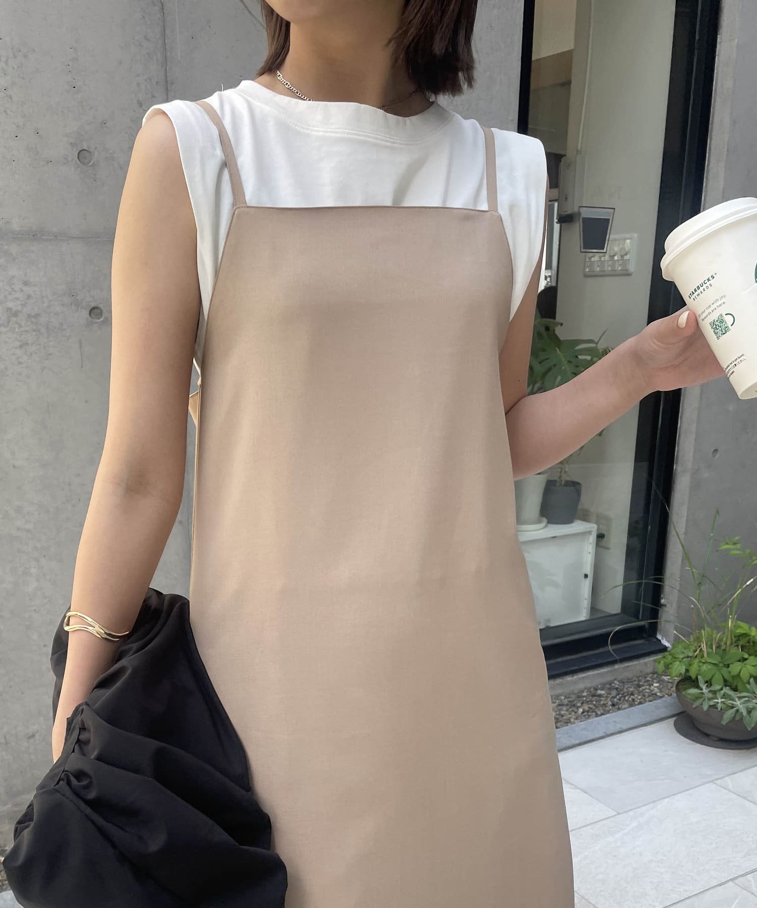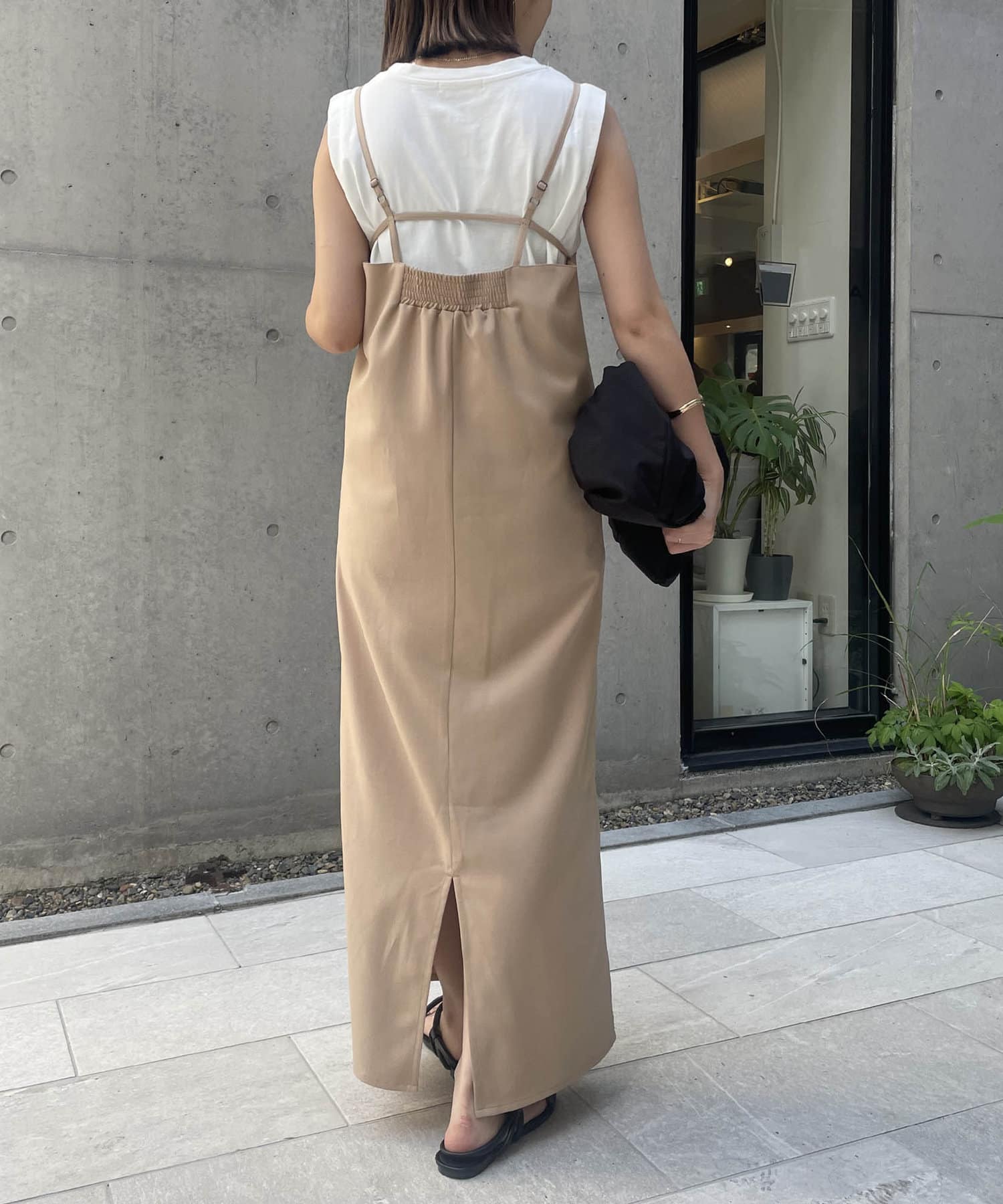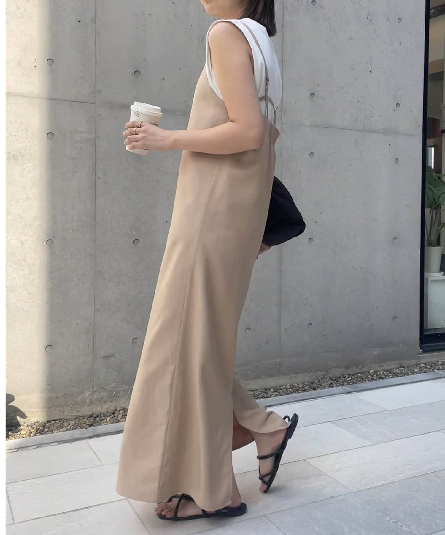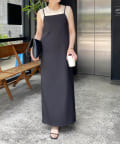 無駄のないシンプルなシルエットがポイントのキャミワンピース
