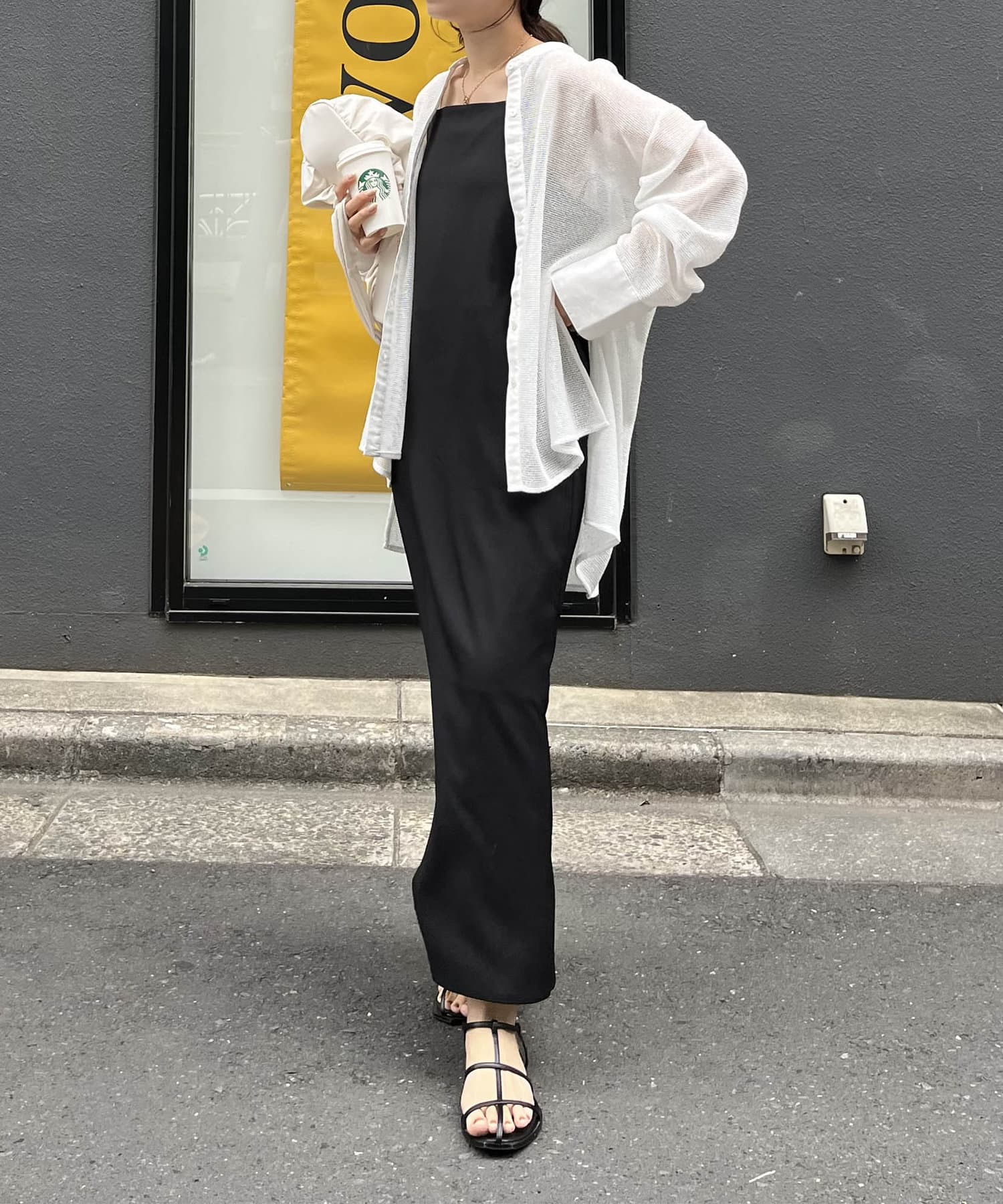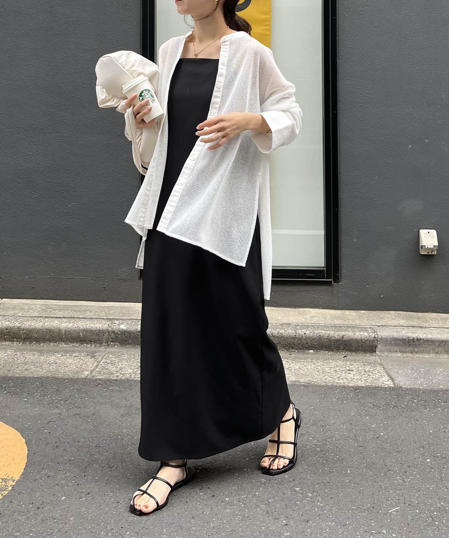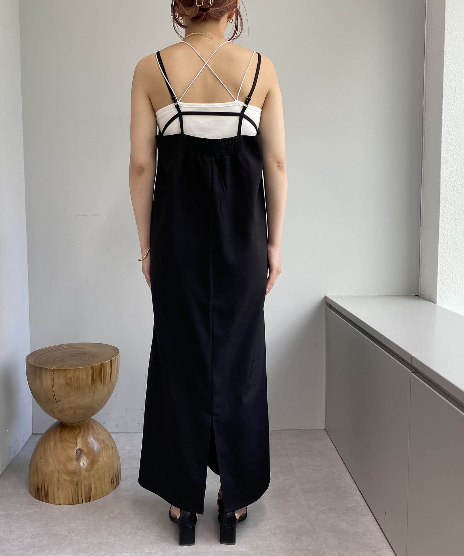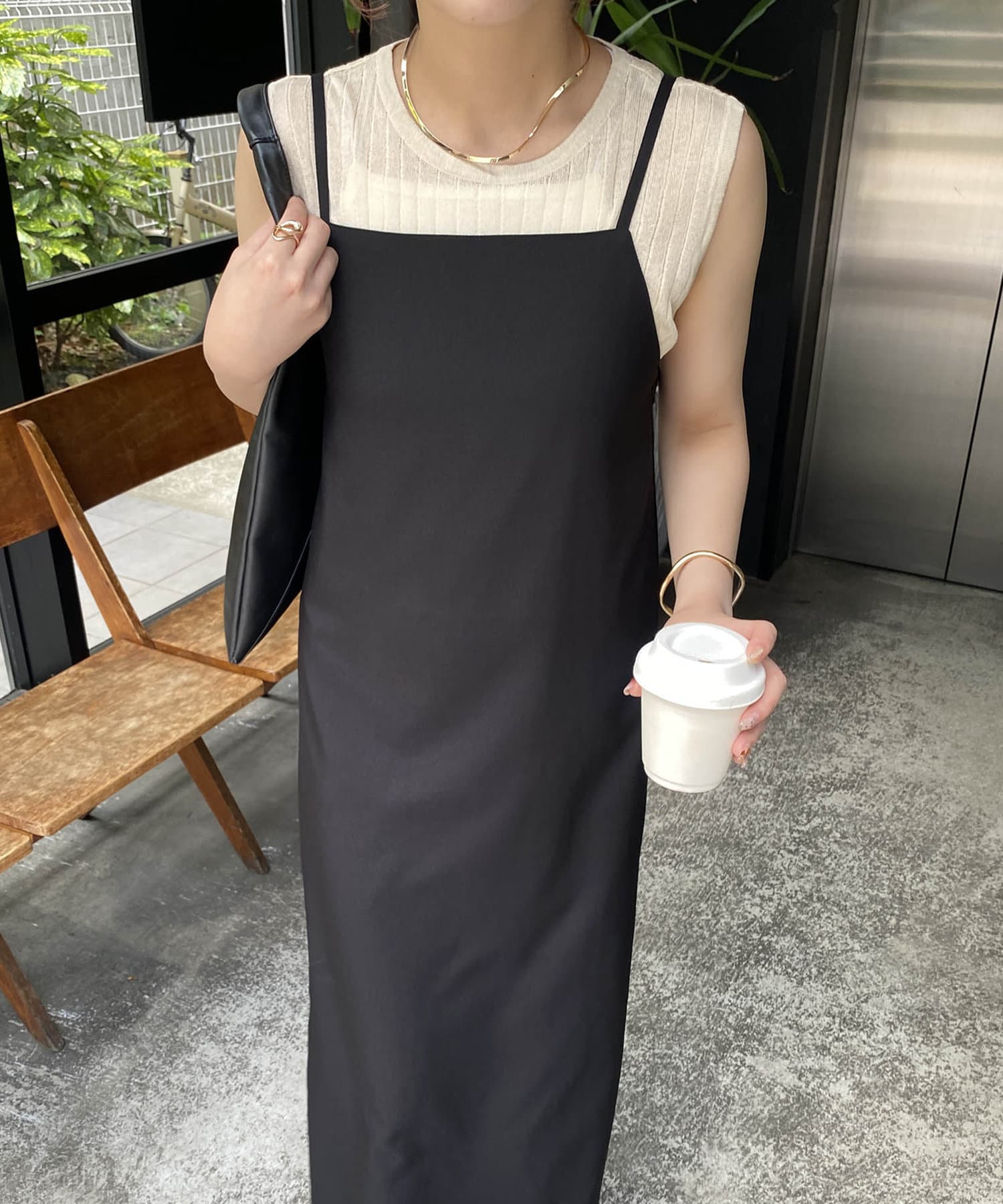 無駄のないシンプルなシルエットがポイントのキャミワンピース