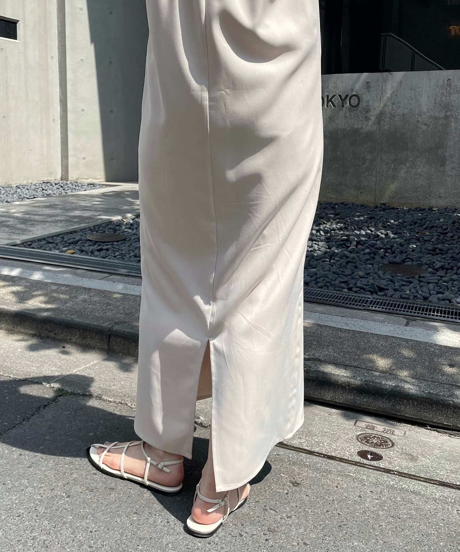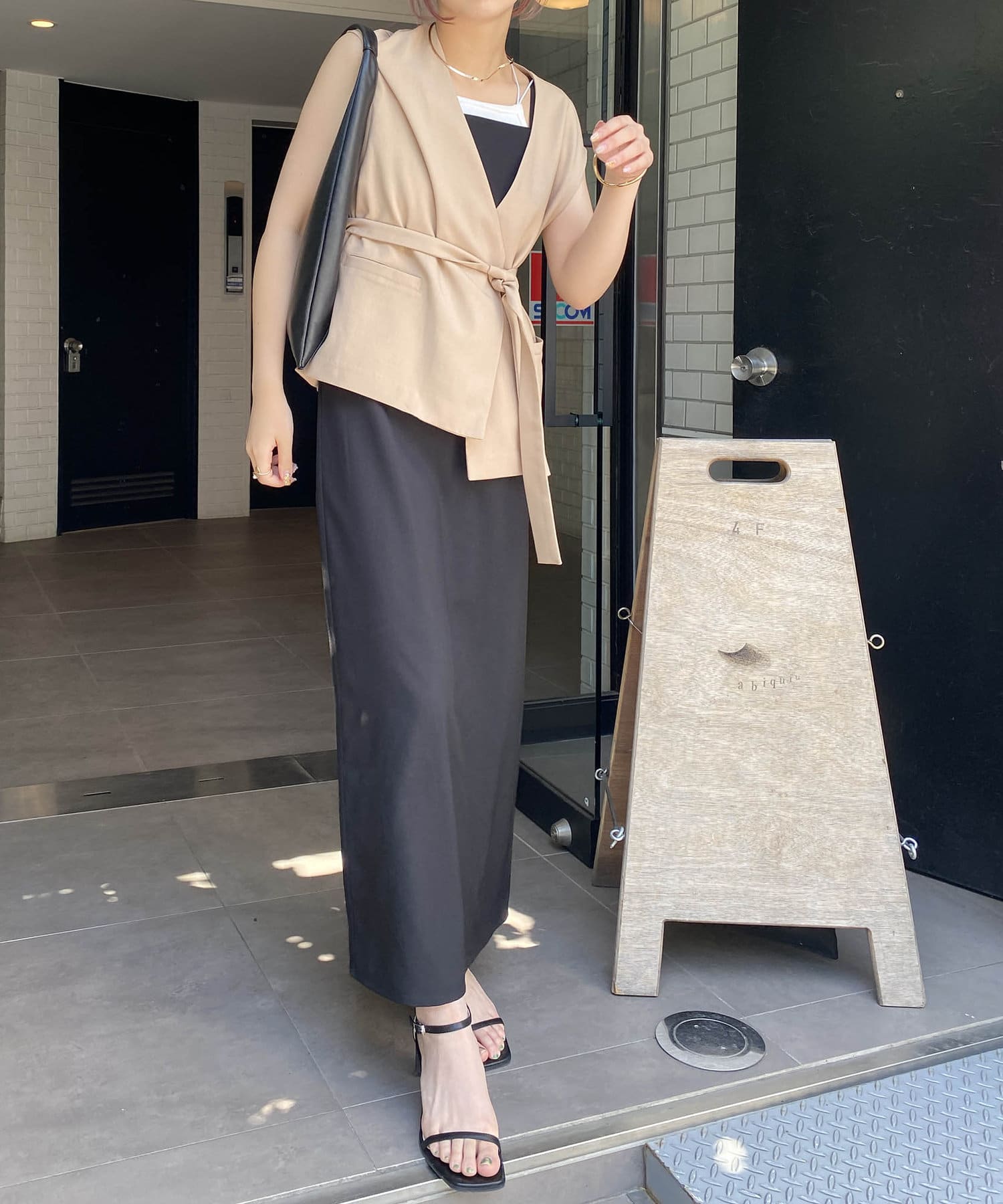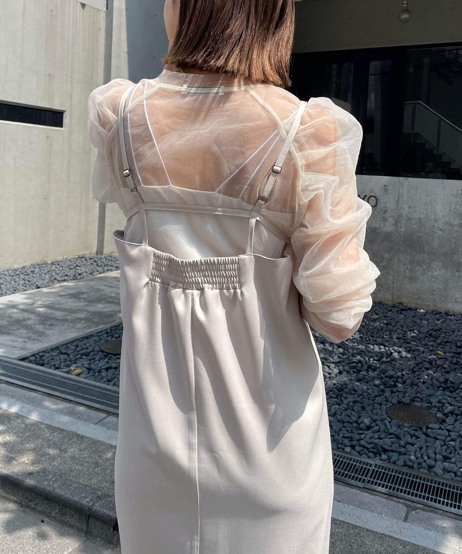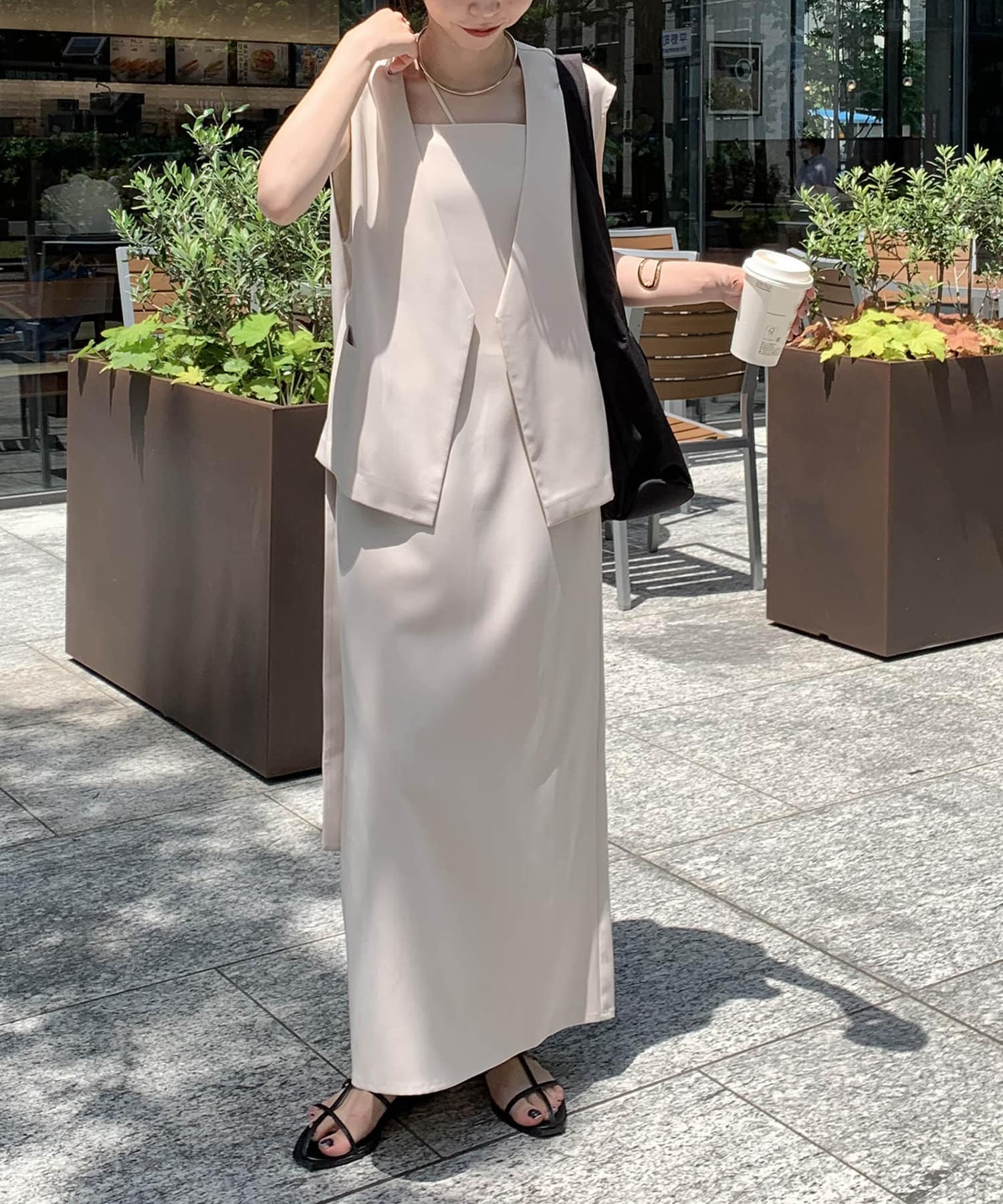 無駄のないシンプルなシルエットがポイントのキャミワンピース