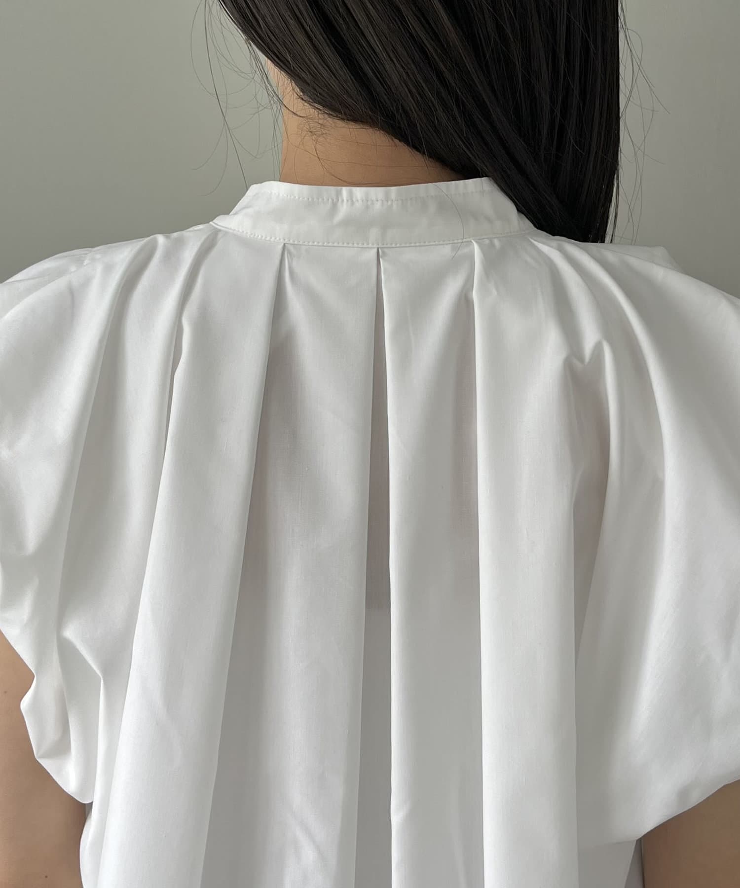 ・二の腕に少しかかるくらいのバルーン袖が特徴のシャツ