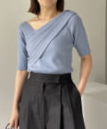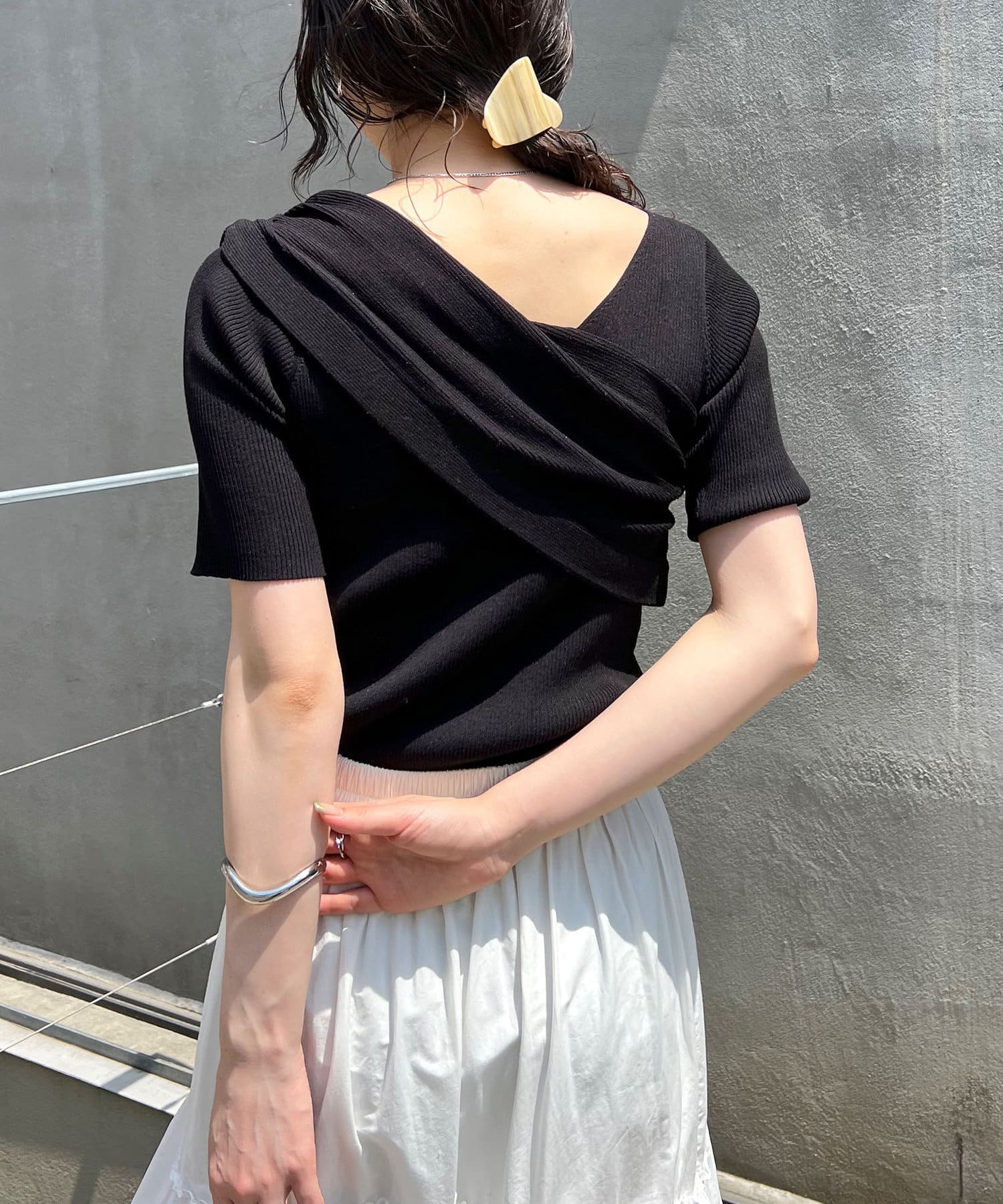・肩からバストにかけてドレープ状のレイヤード風デザインがポイント