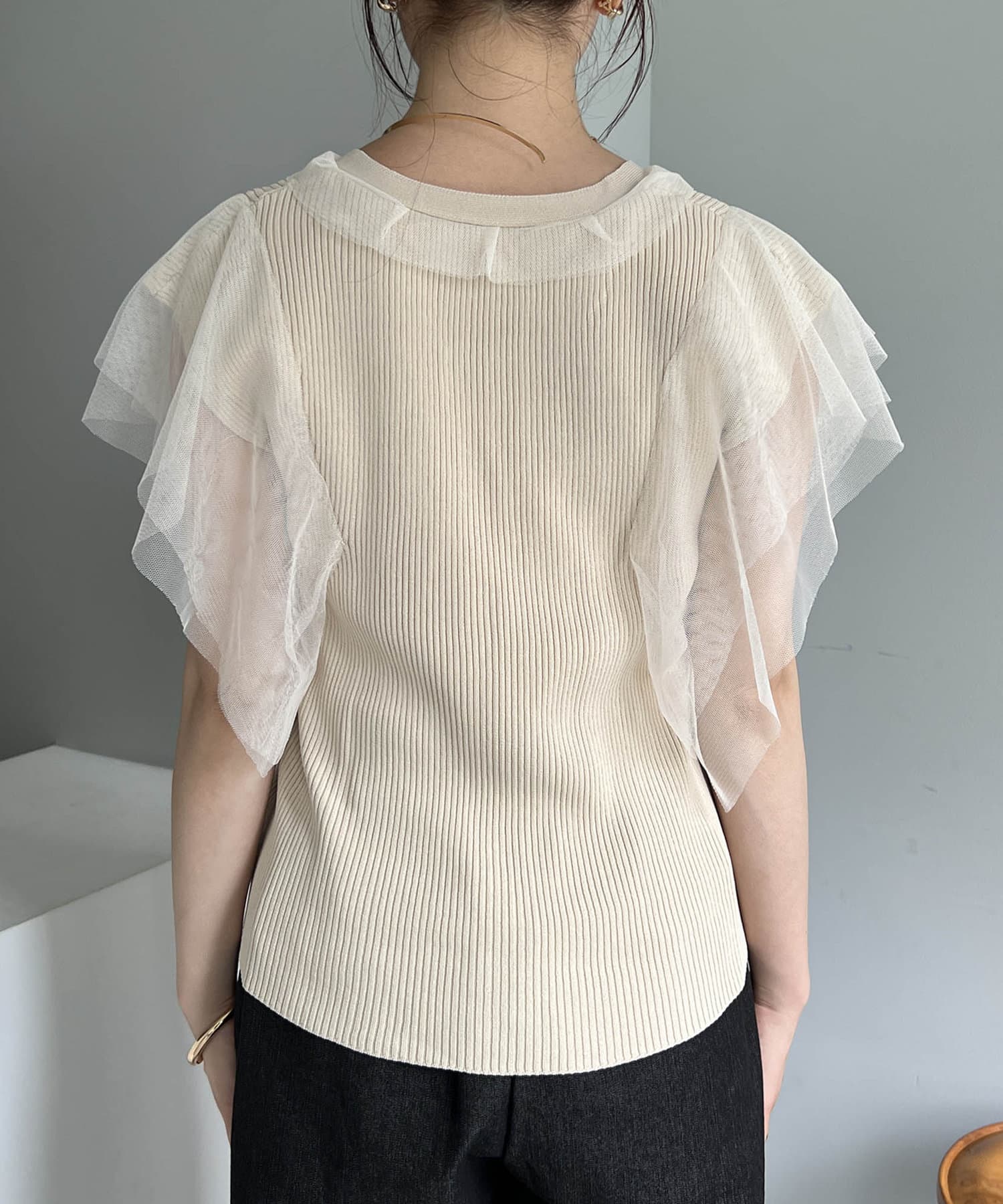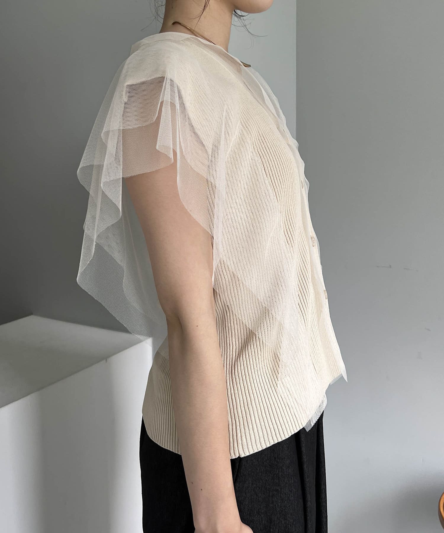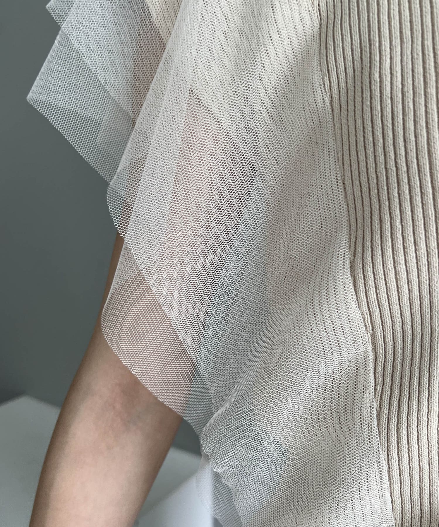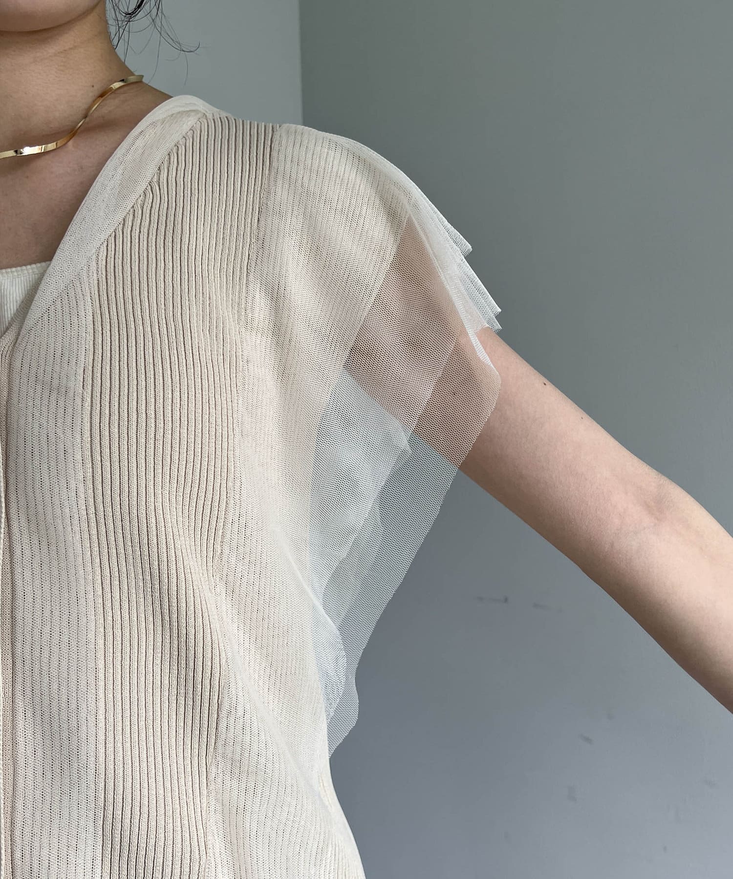 ・ボディの透け感はなく、1枚でレイヤード風のスタイリングに