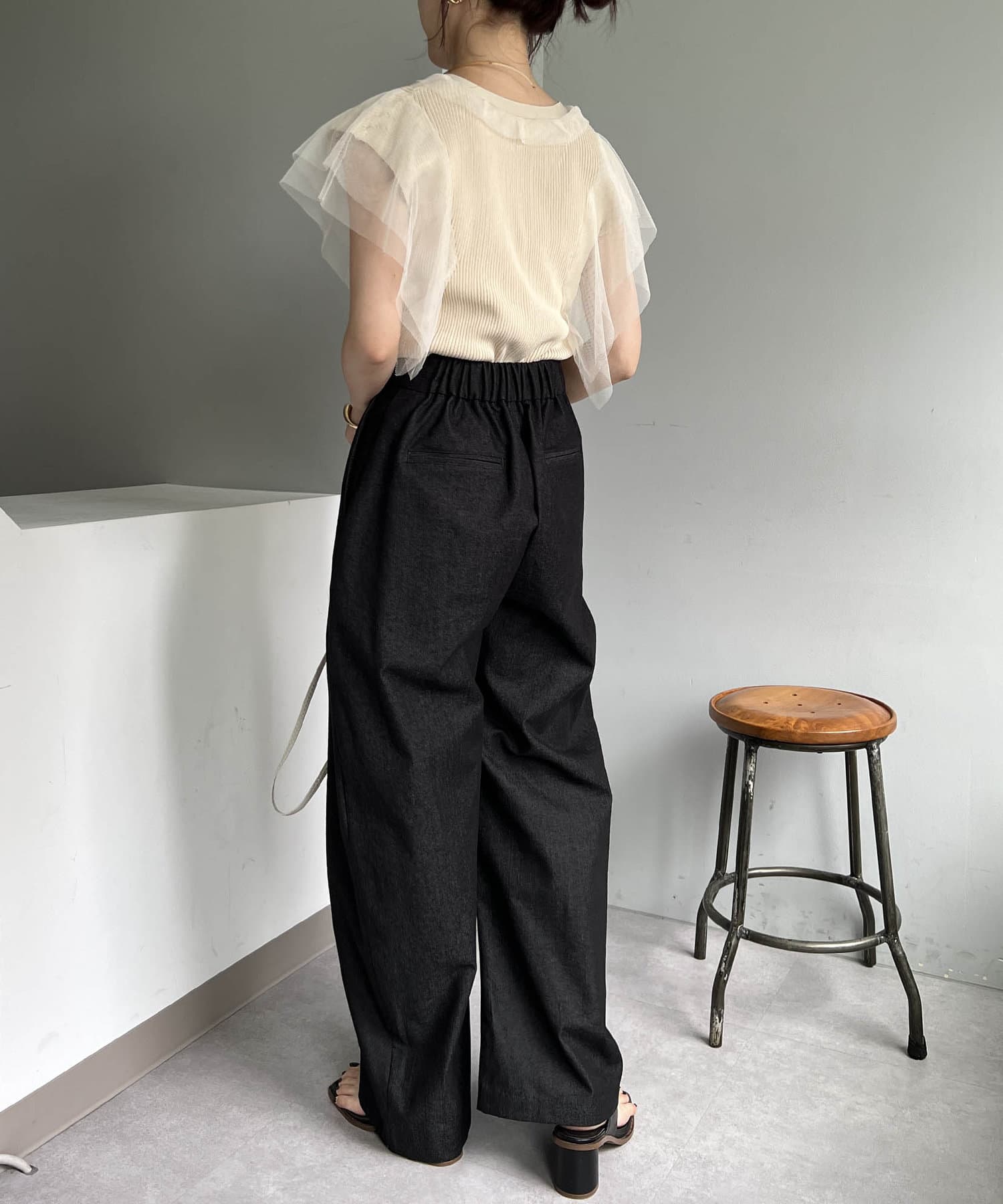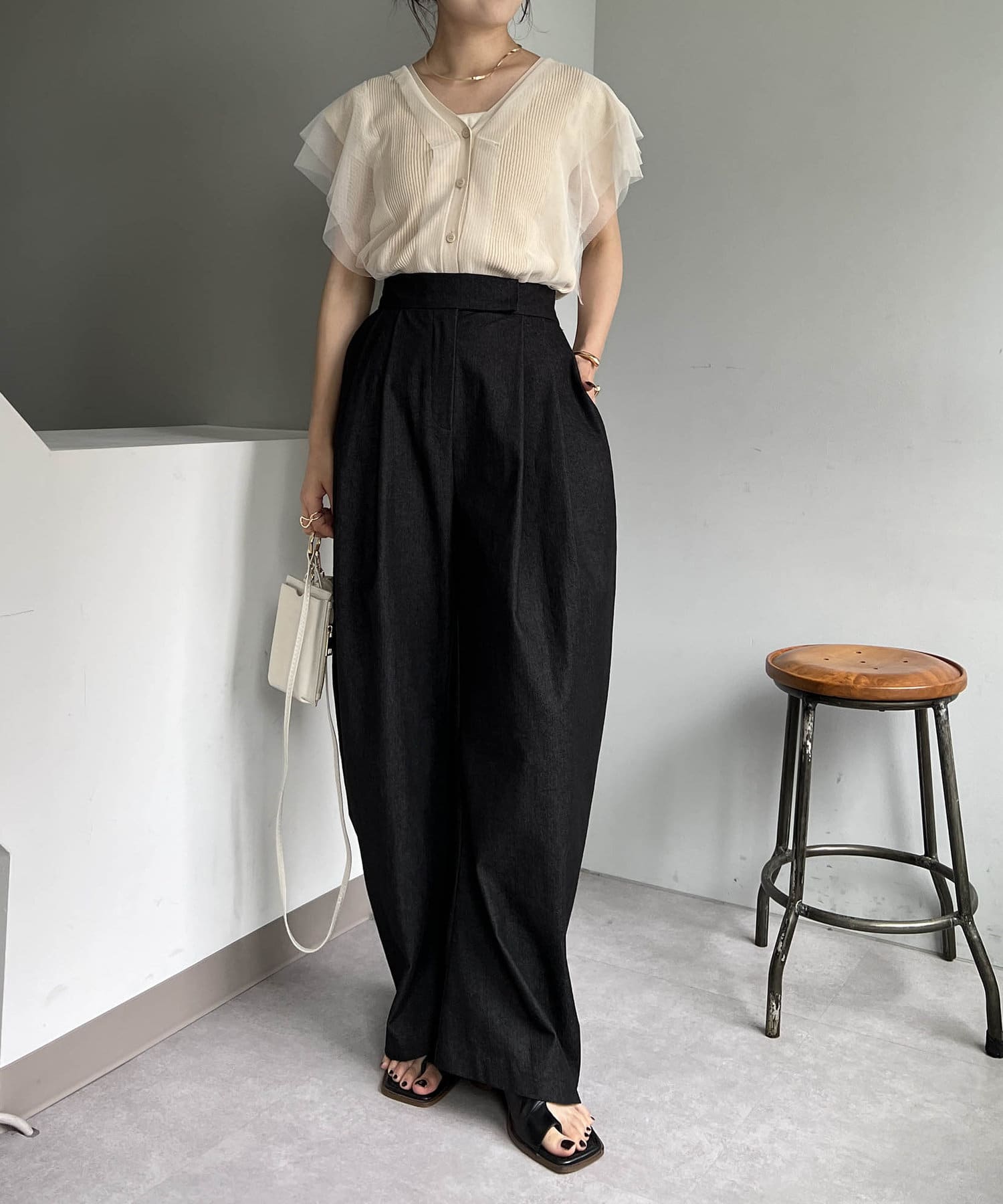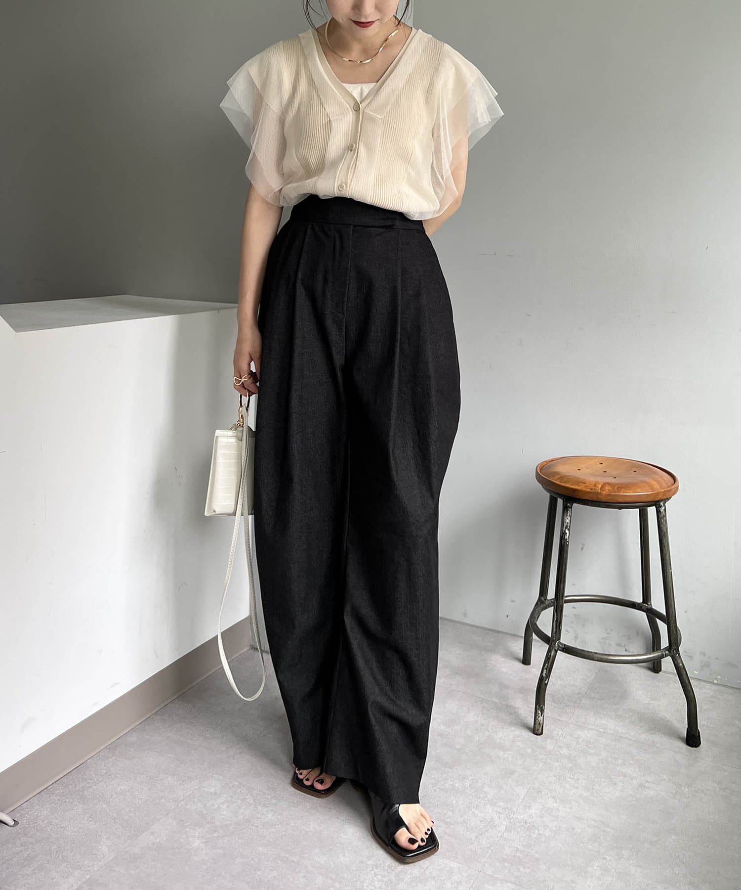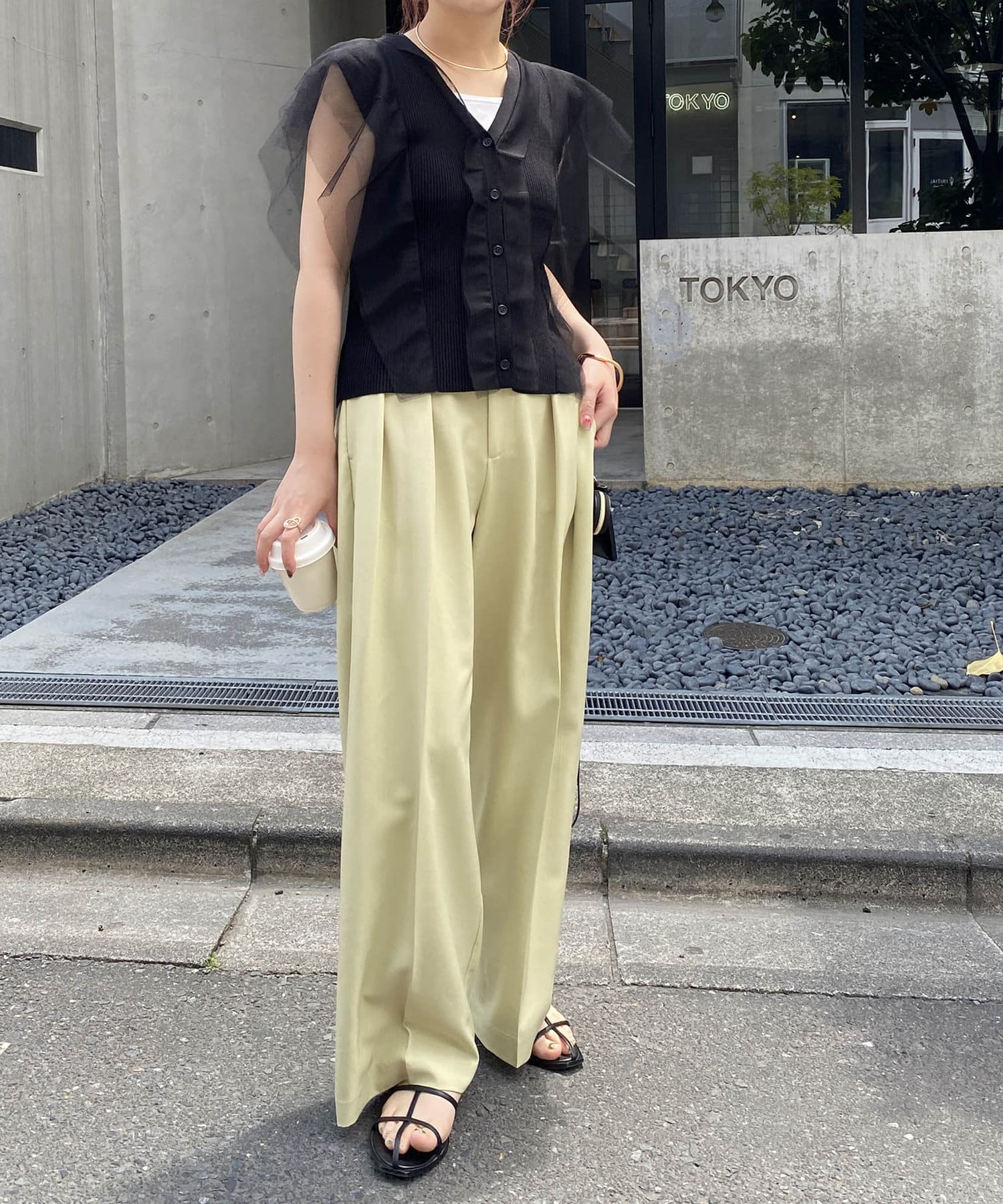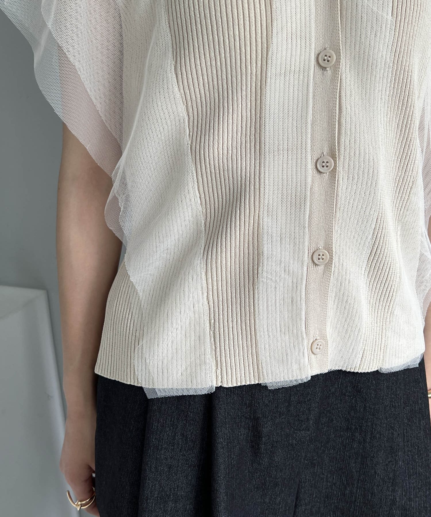 ・ボディの透け感はなく、1枚でレイヤード風のスタイリングに