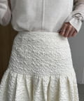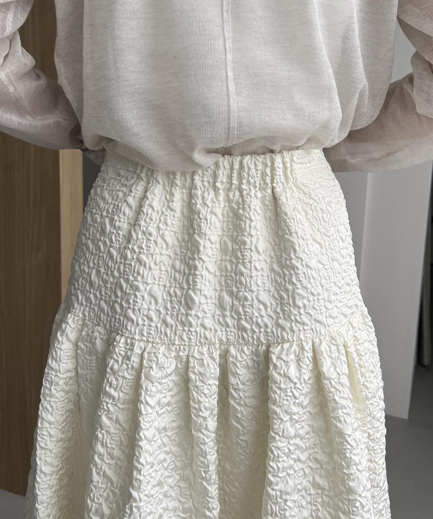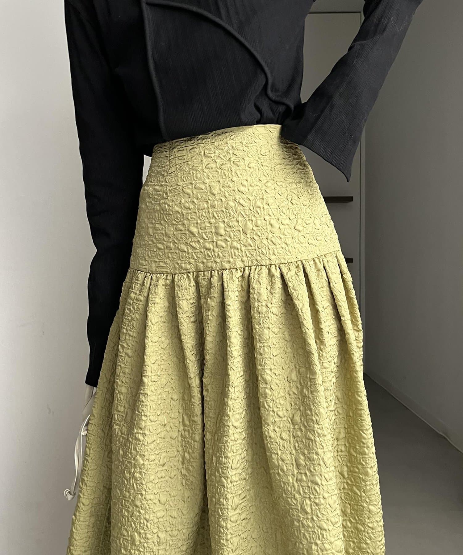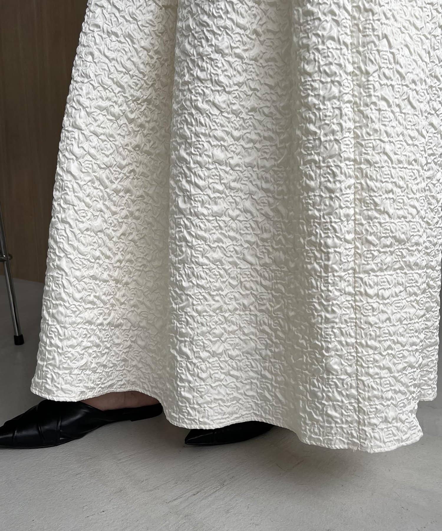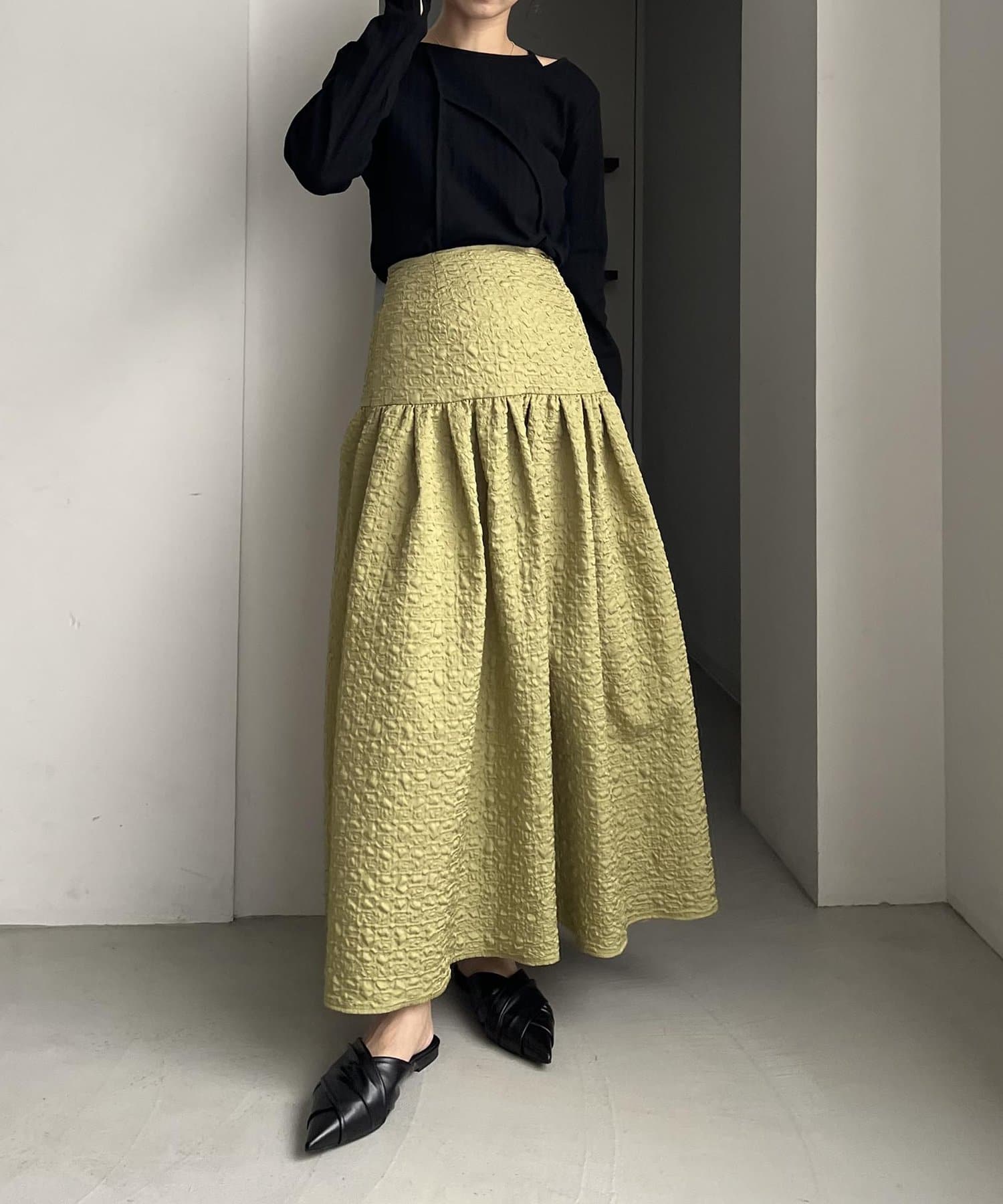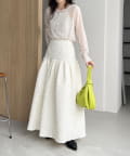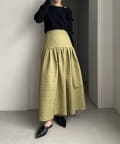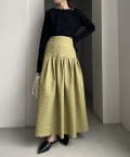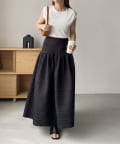 ・ヒップから裾にかけてギャザーでフレアに広がり、メリハリのあるシルエットに