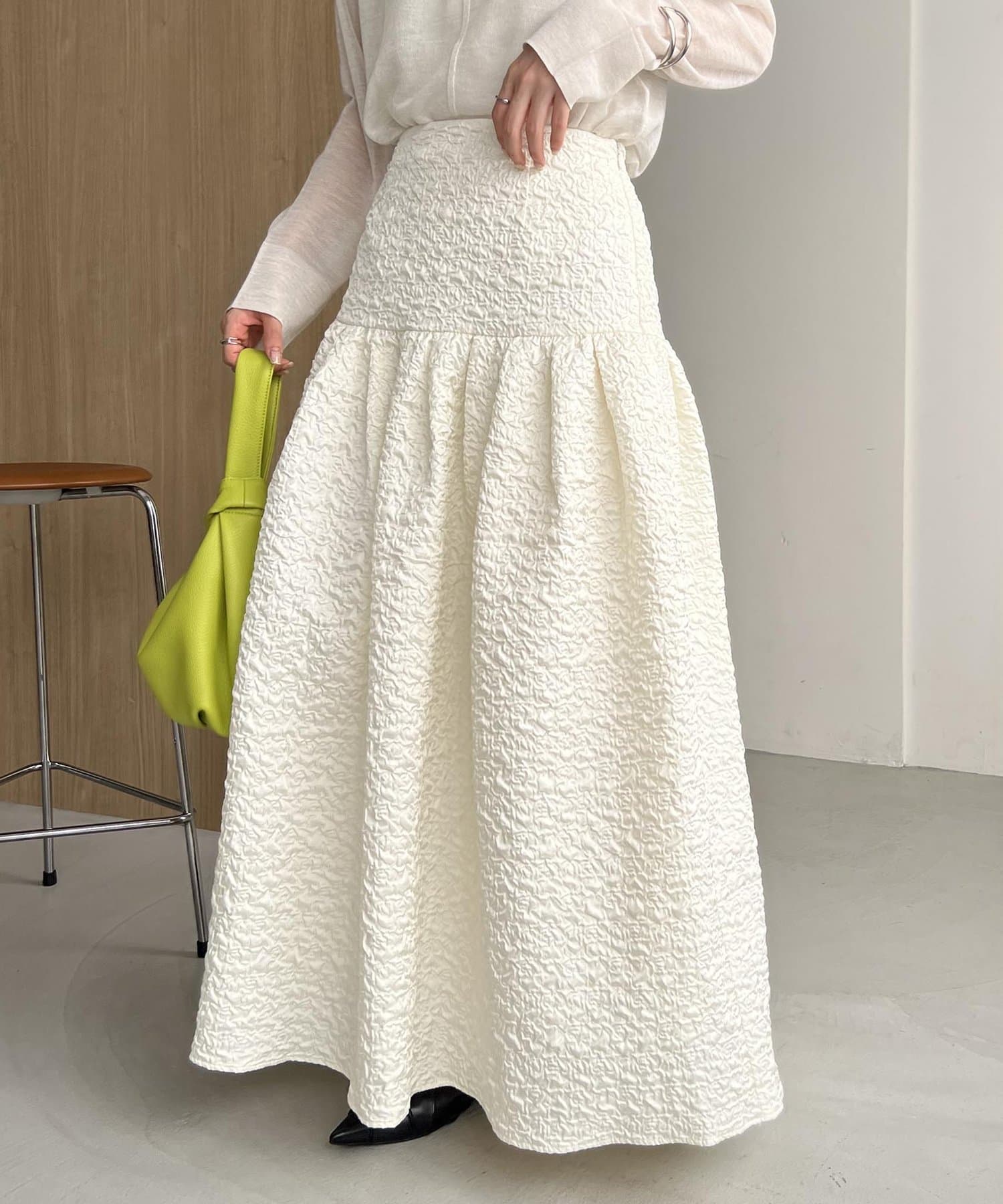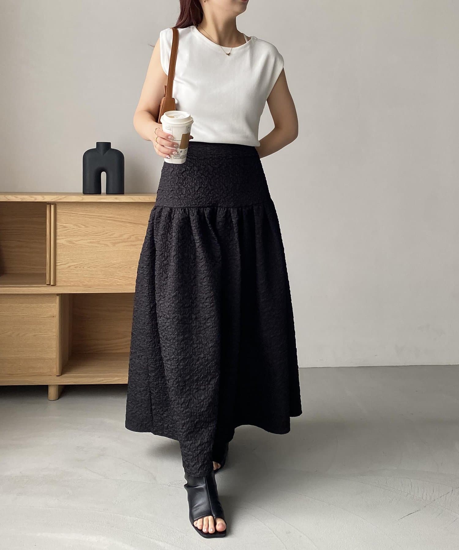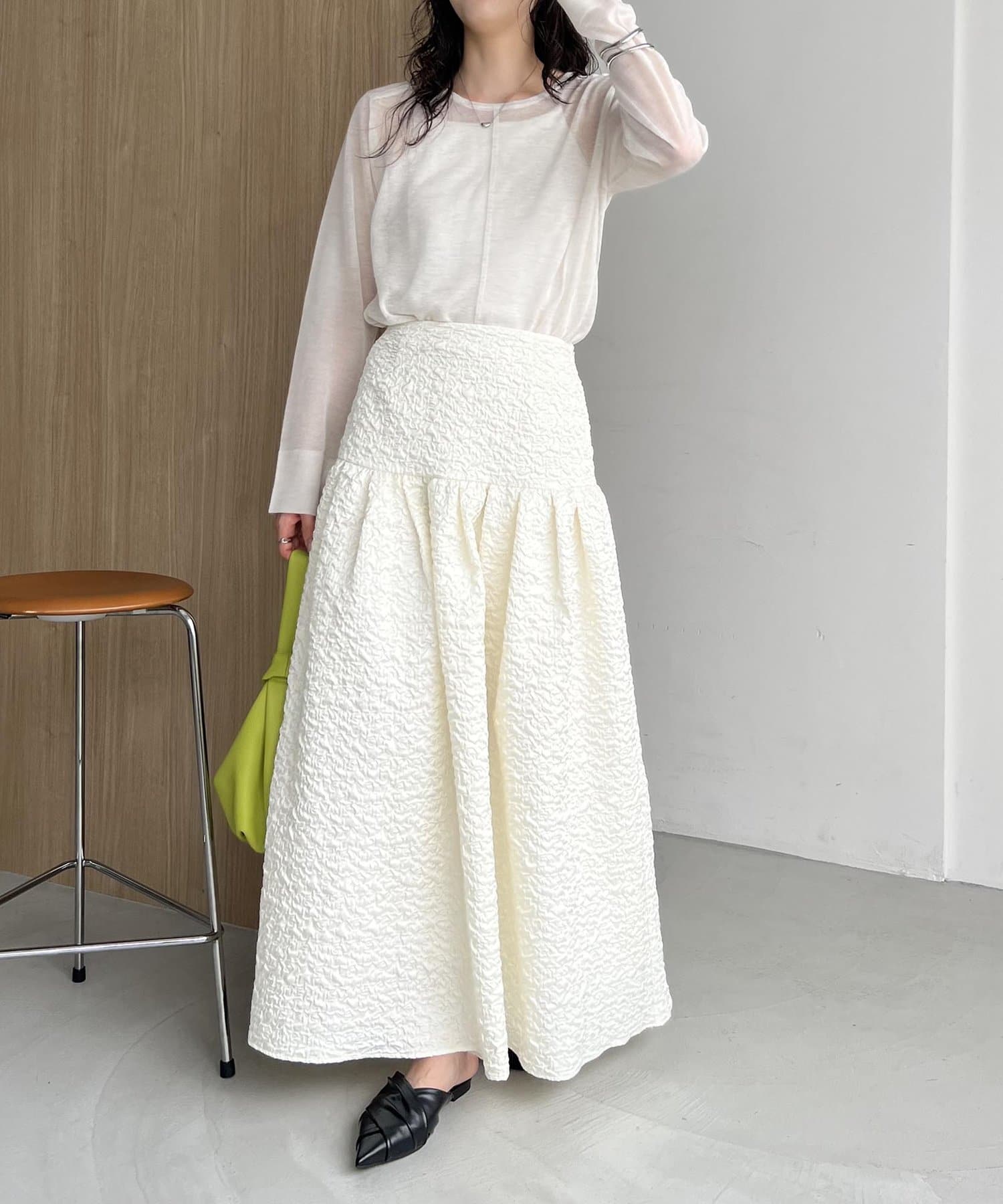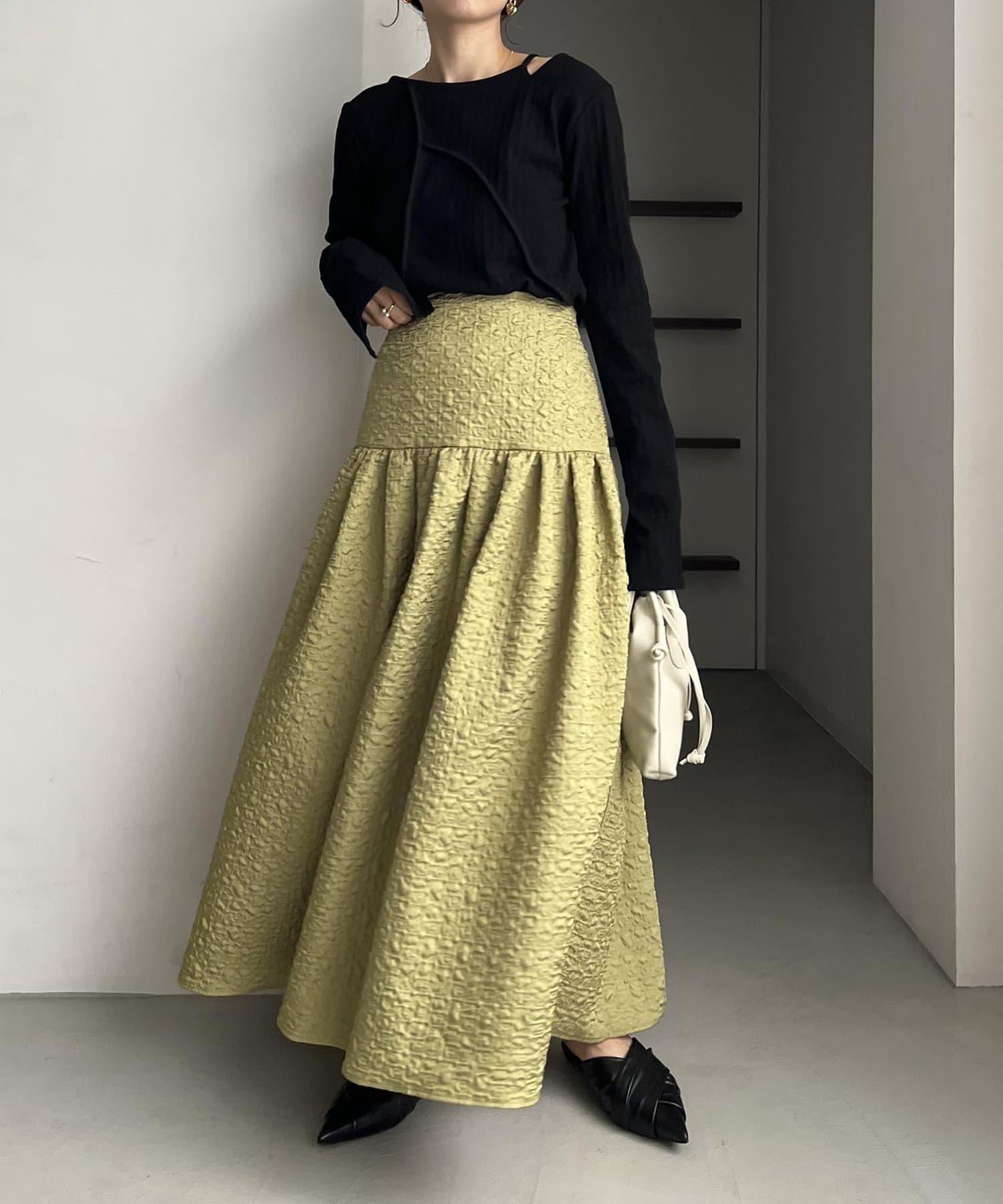・シンプルなトップスを合わせて、スカートを主役にするスタイリングがおすすめ