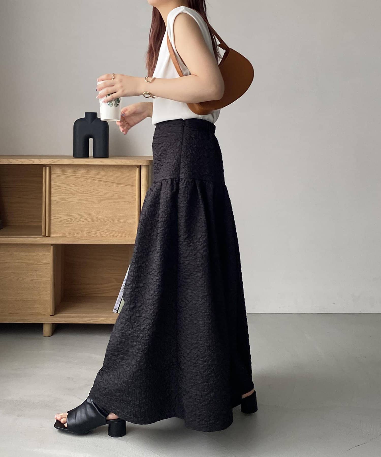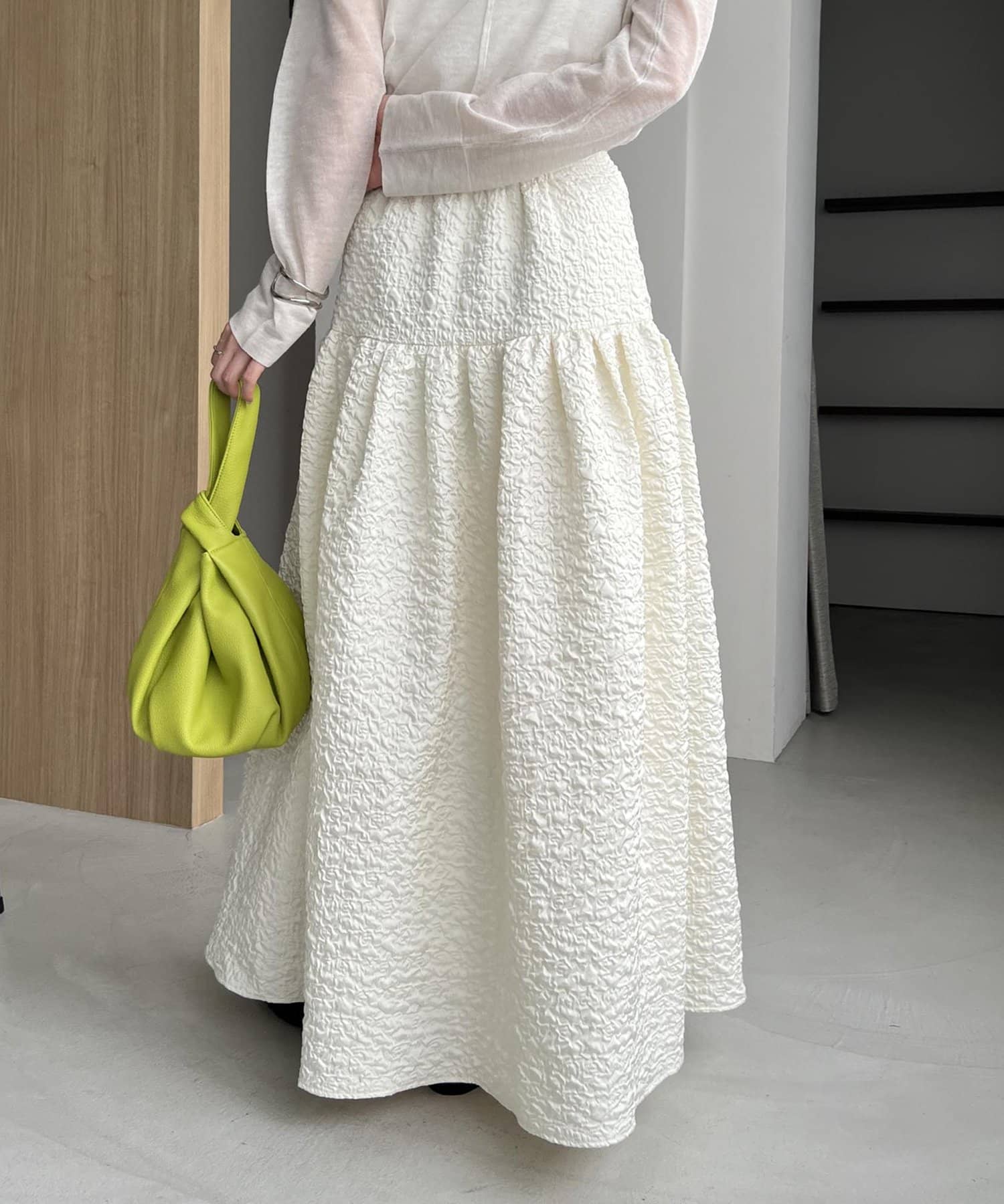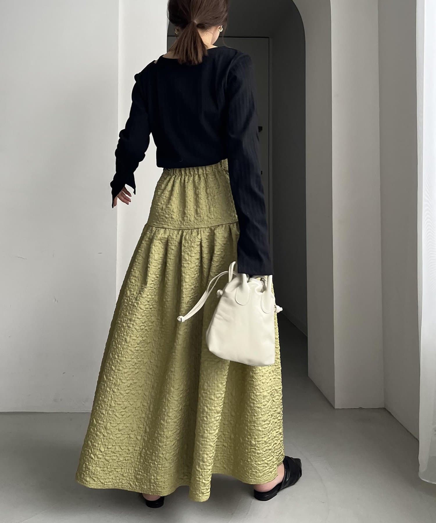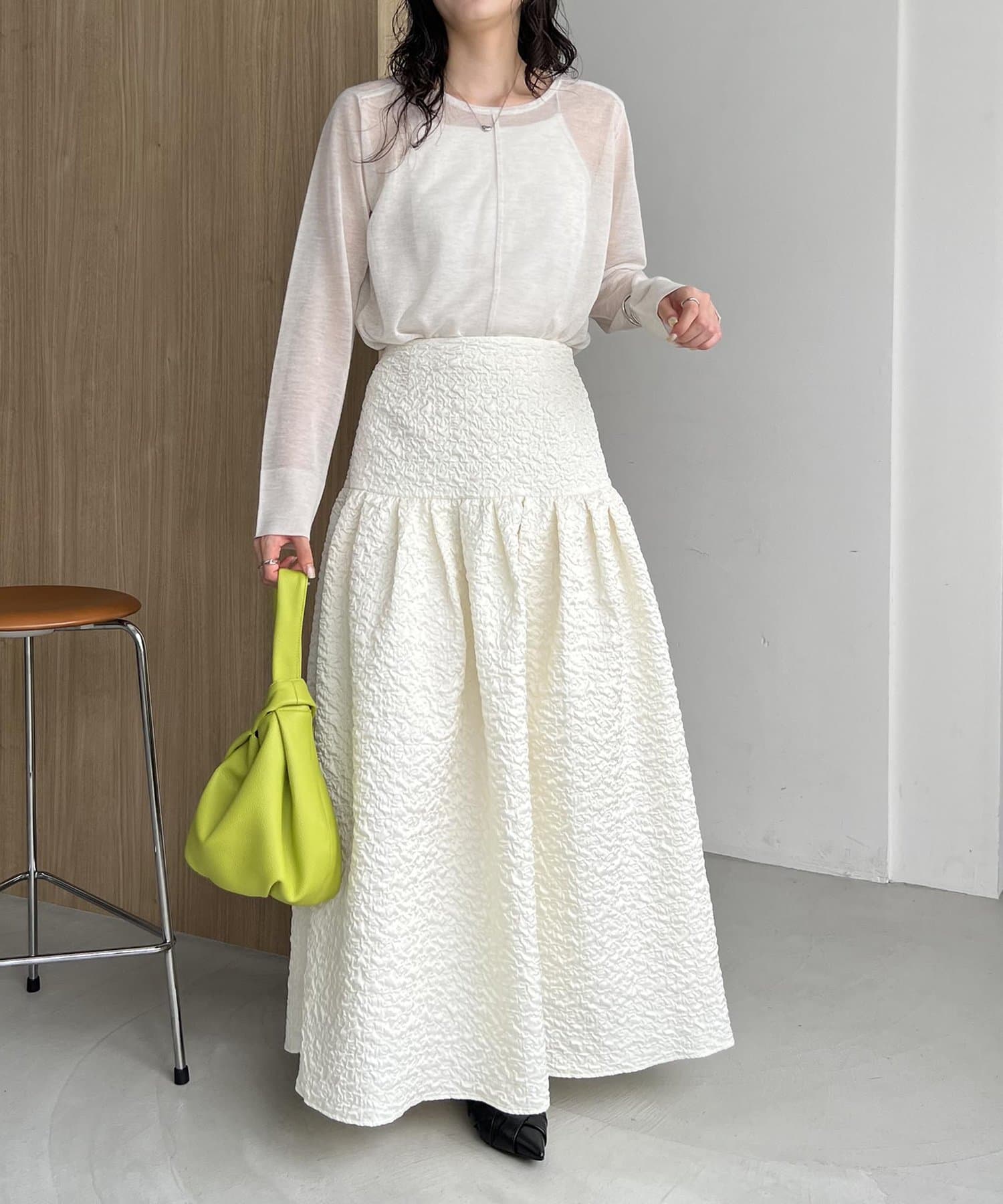 ・シンプルなトップスを合わせて、スカートを主役にするスタイリングがおすすめ